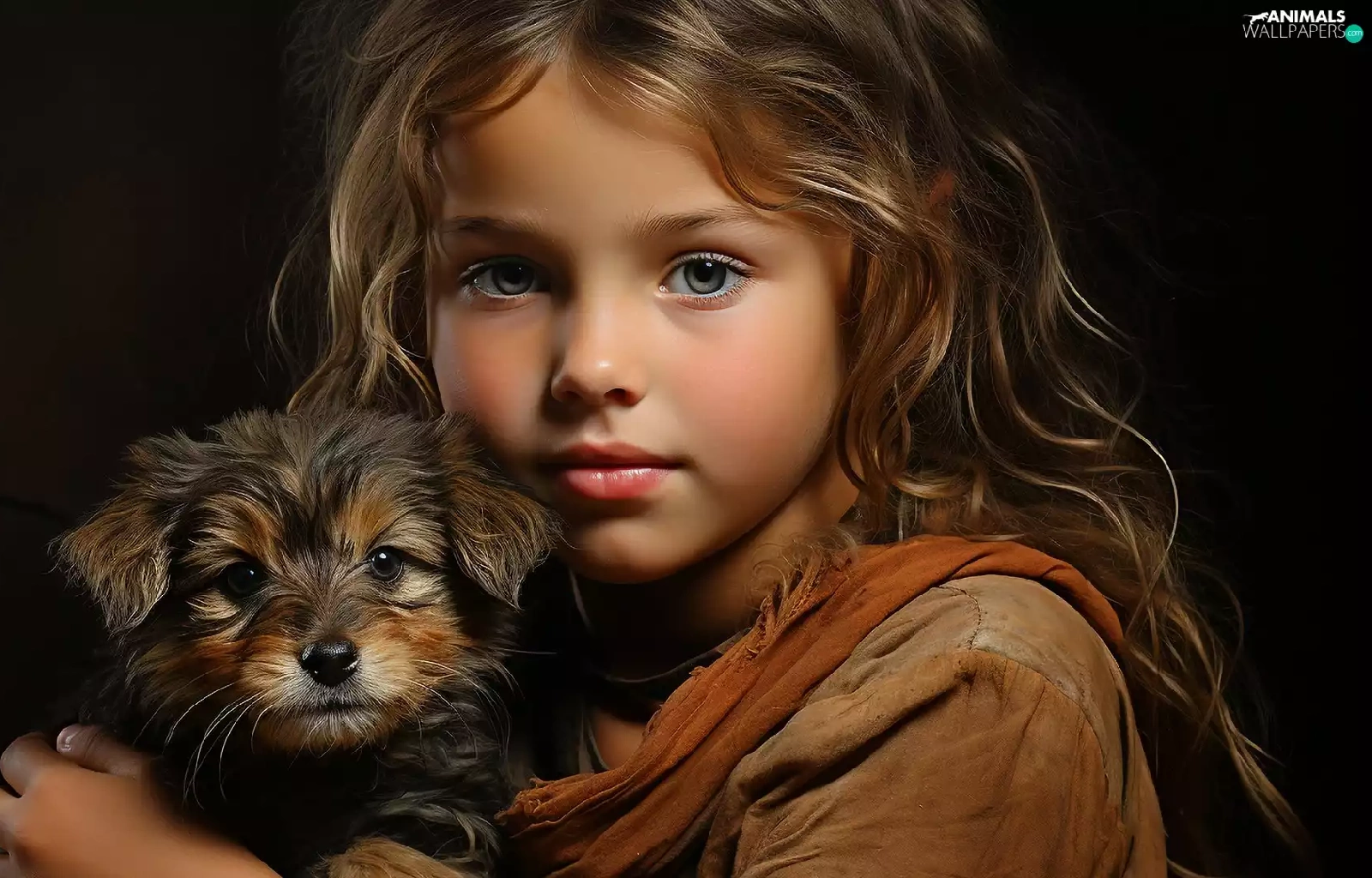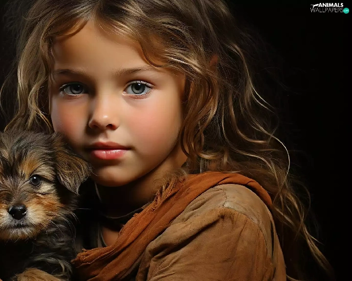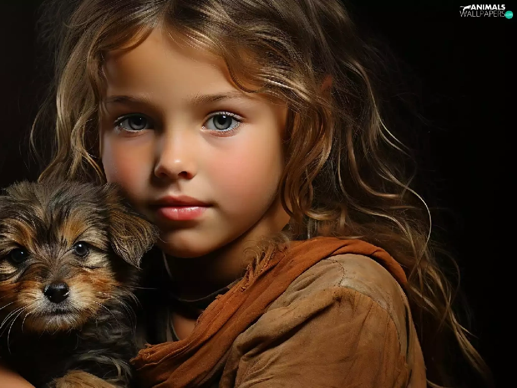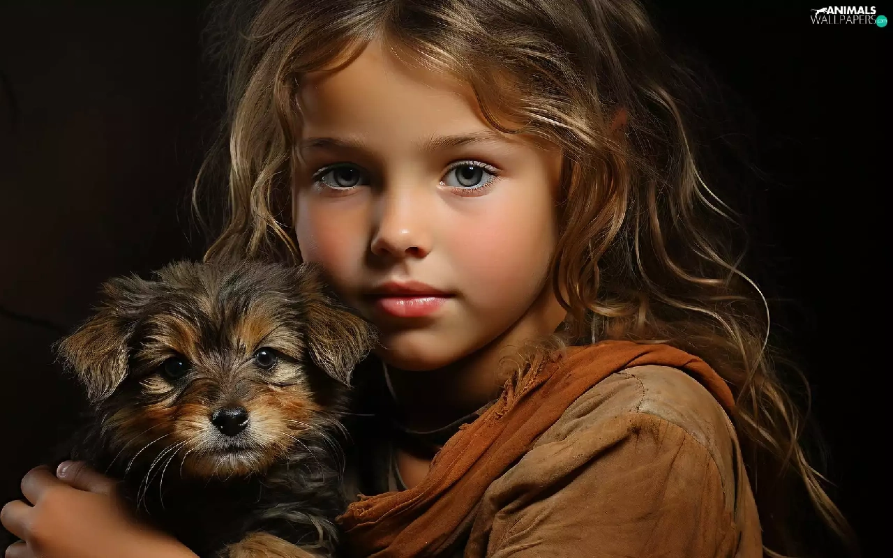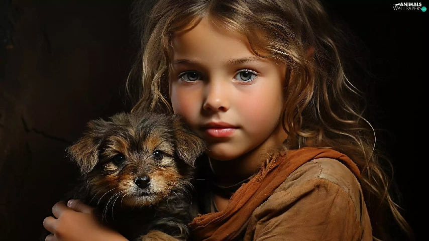 dog, Puppy, longhaired, girl, Kid