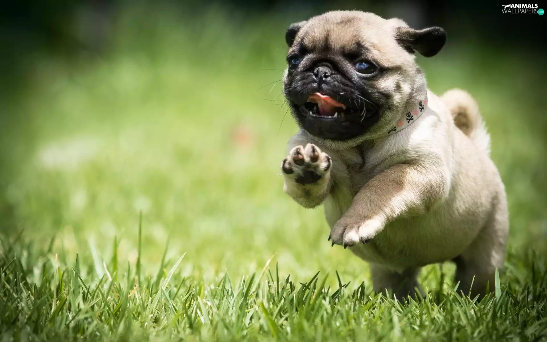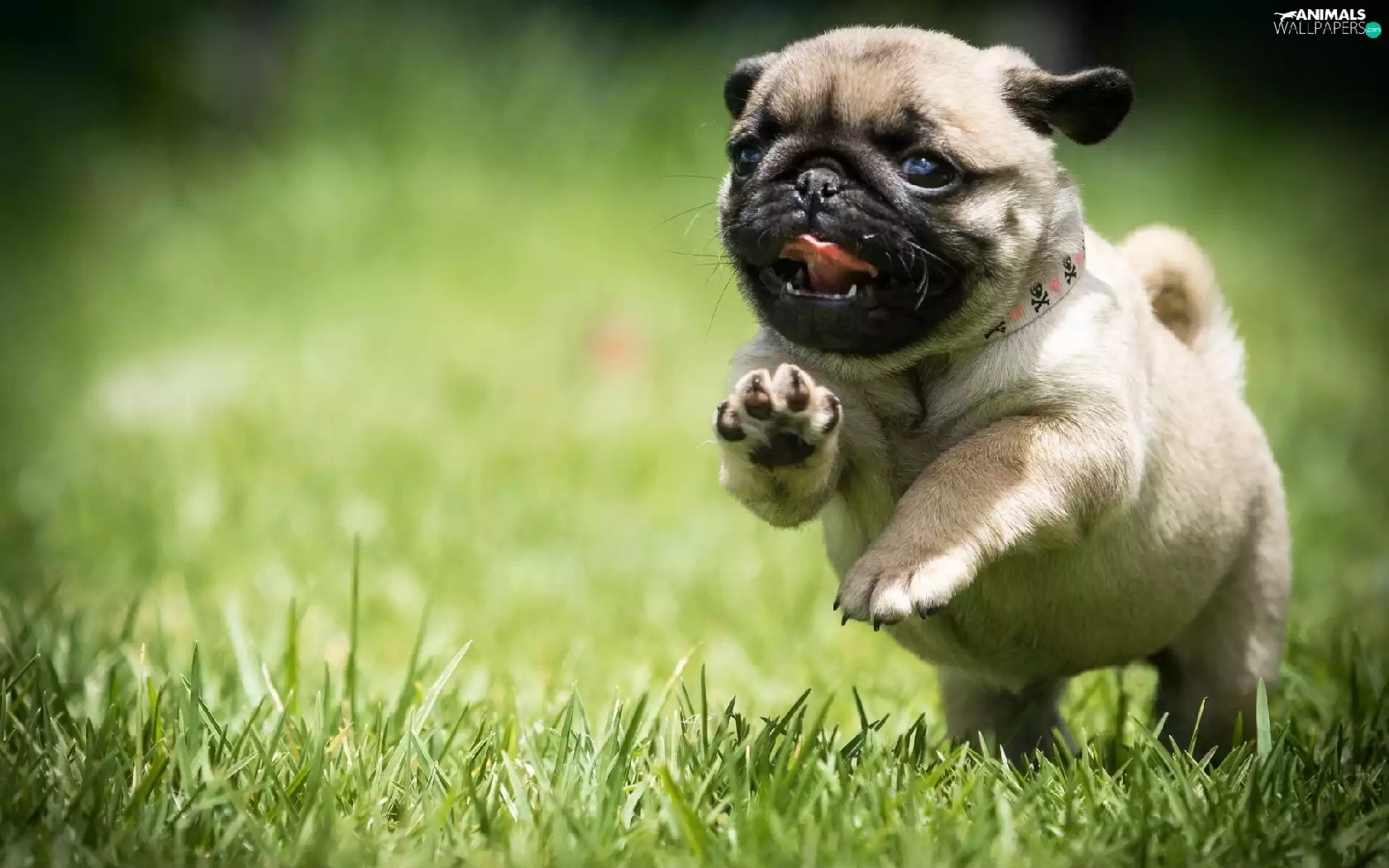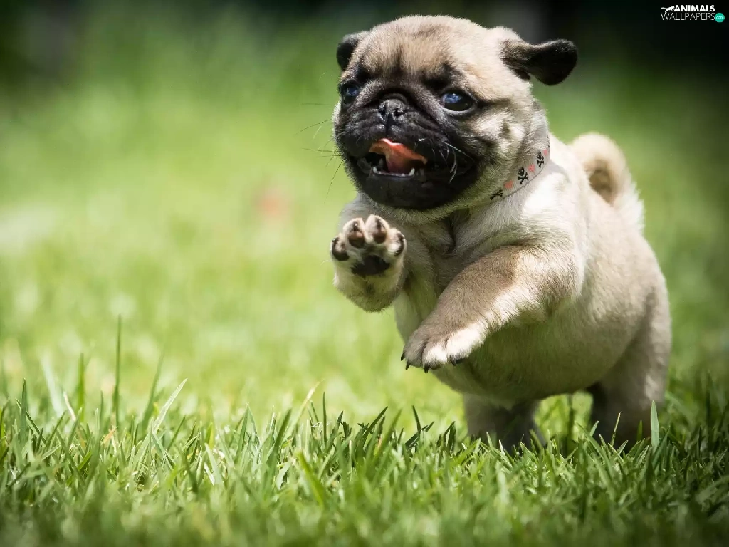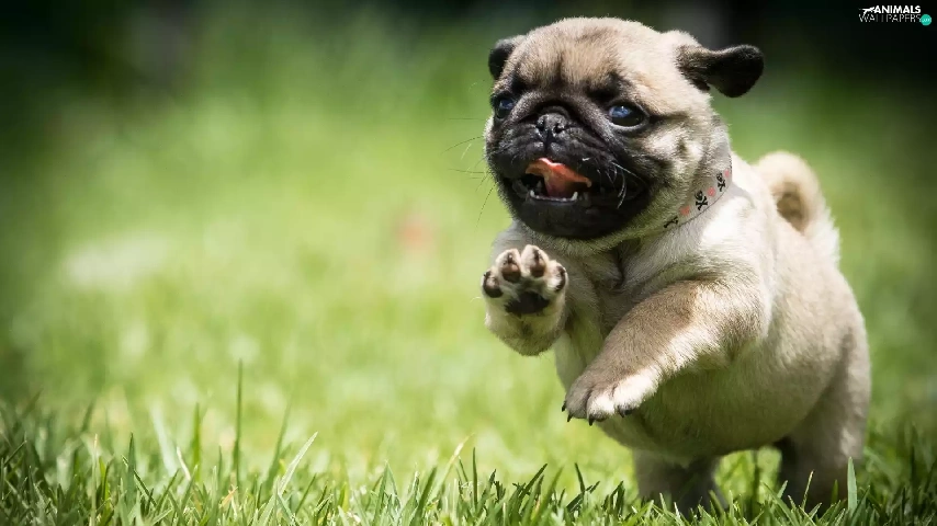 Puppy, grass, pug