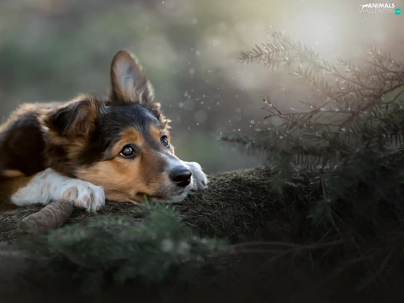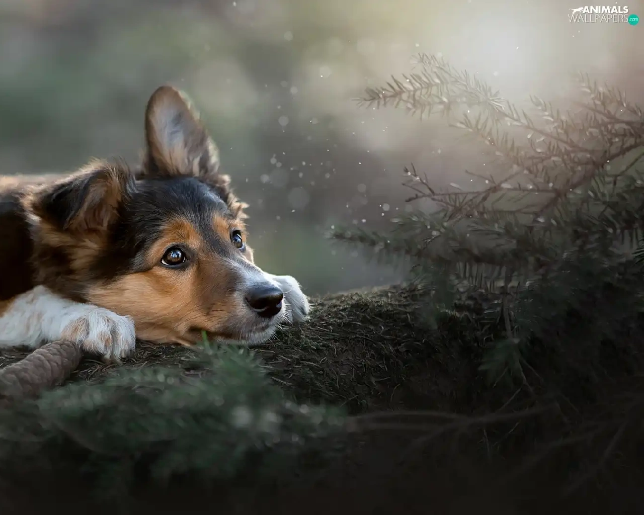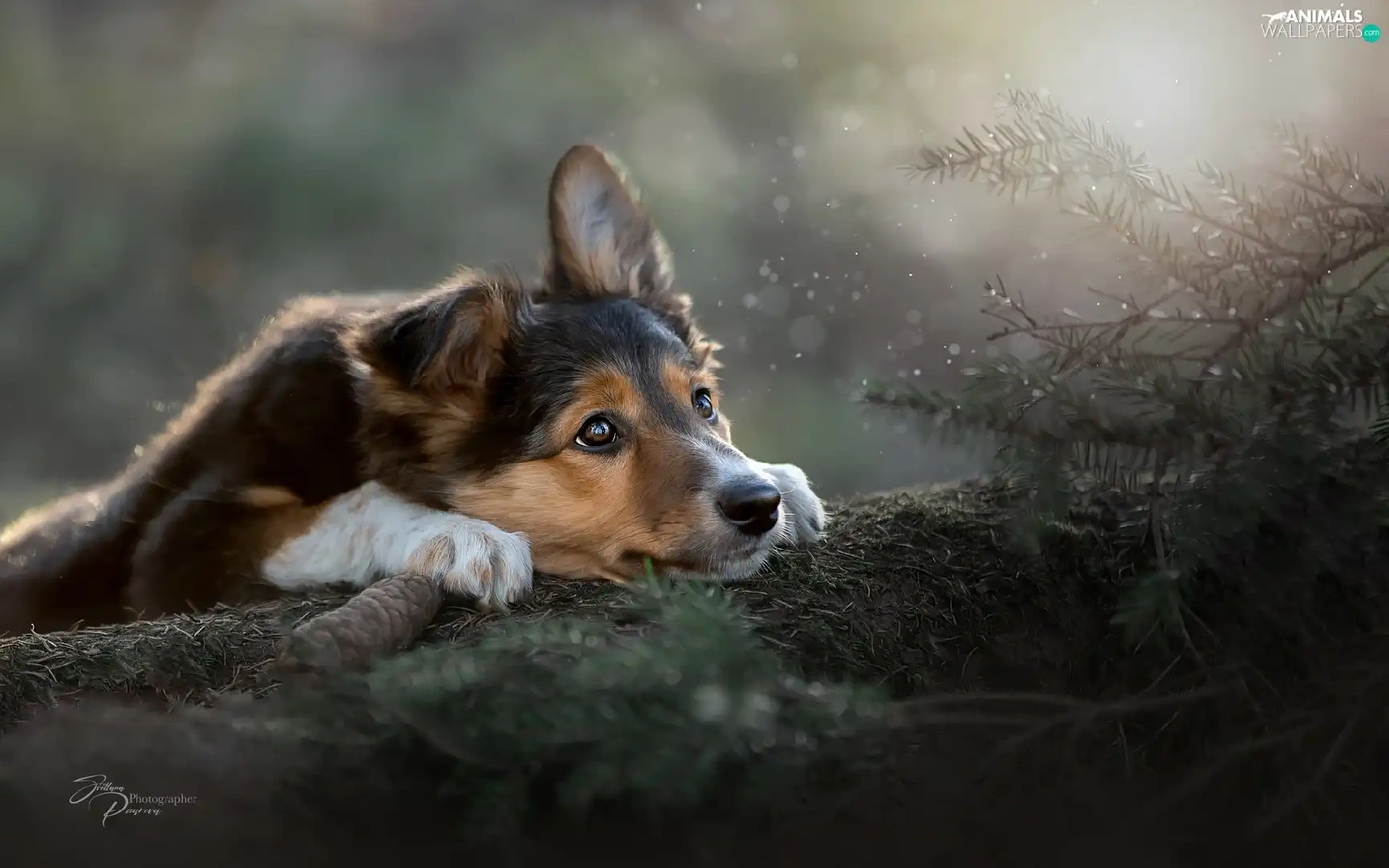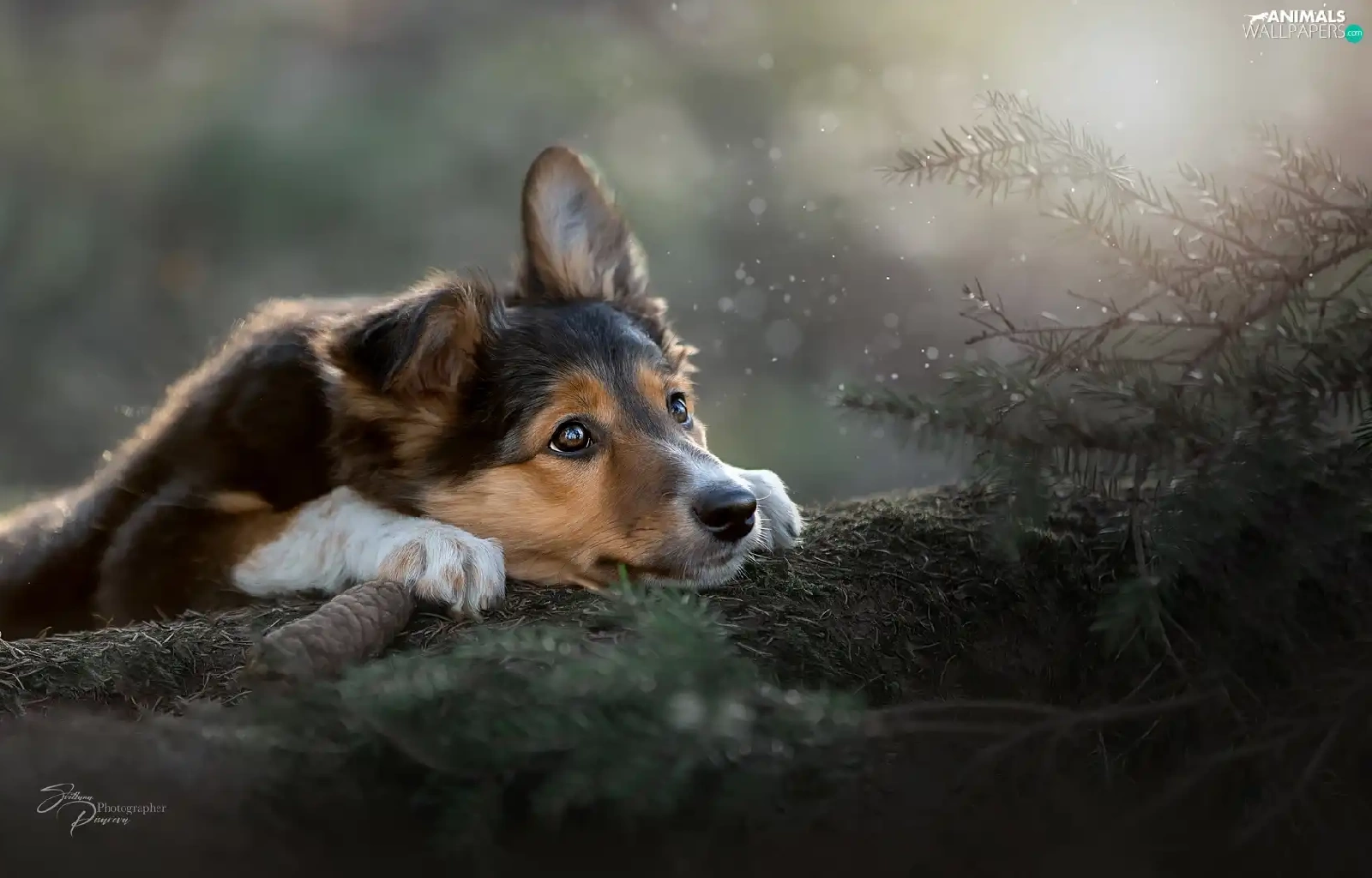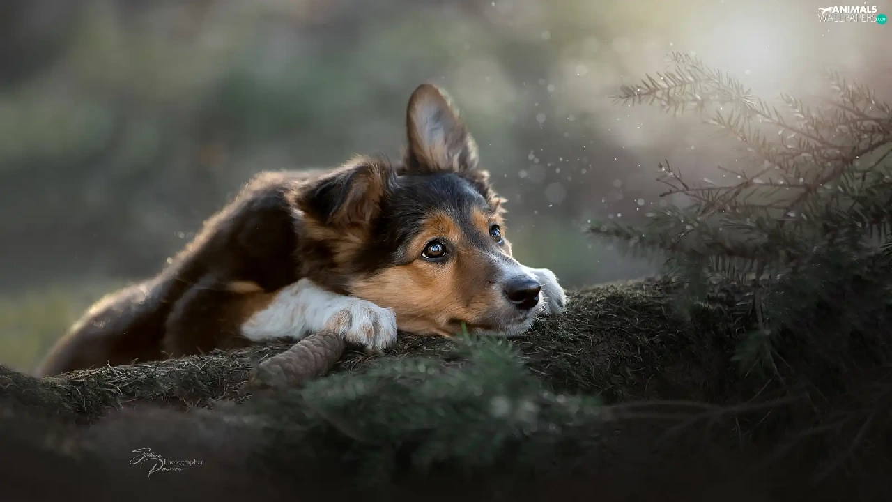 log, dog, Softwood, Puppy, lying, cone, Twigs