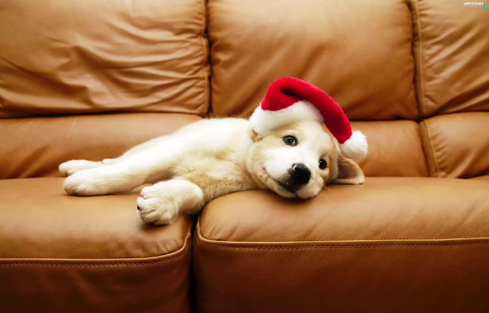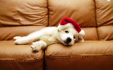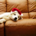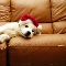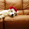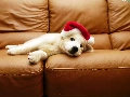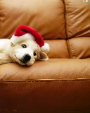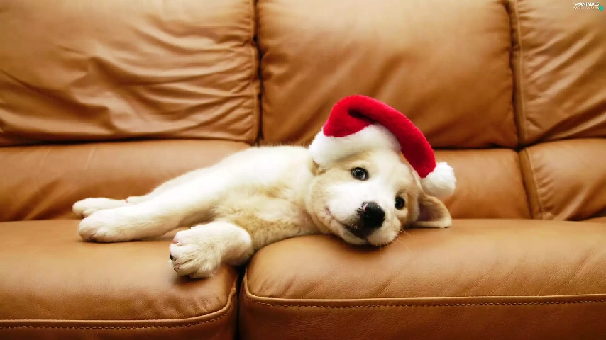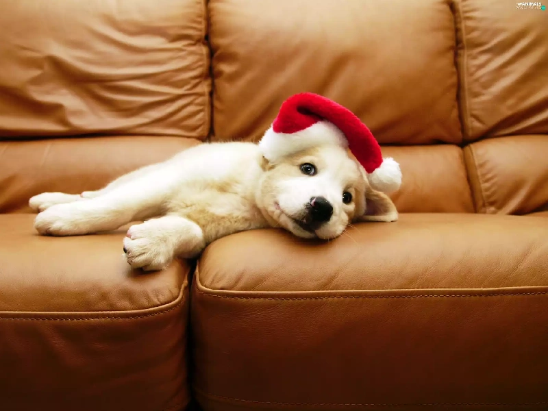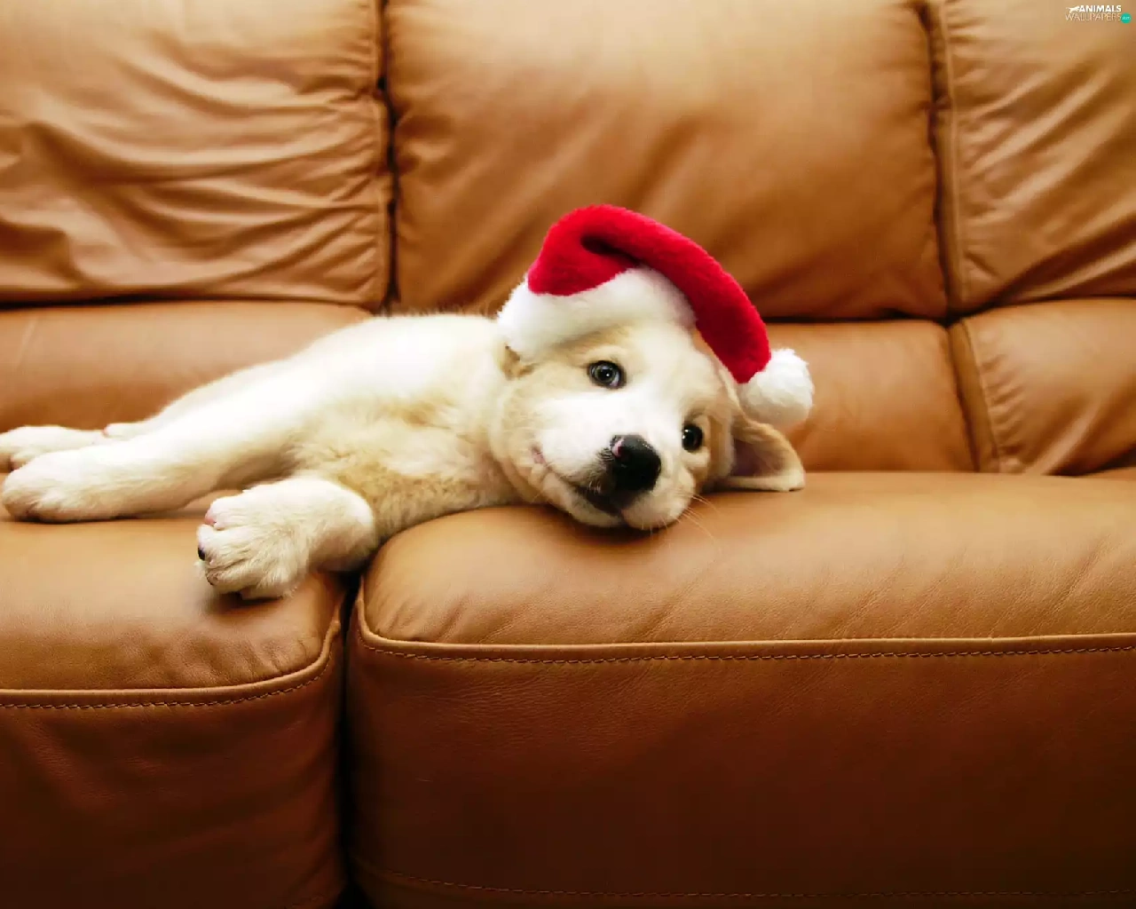 White, Hat, Sofa, Puppy