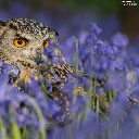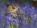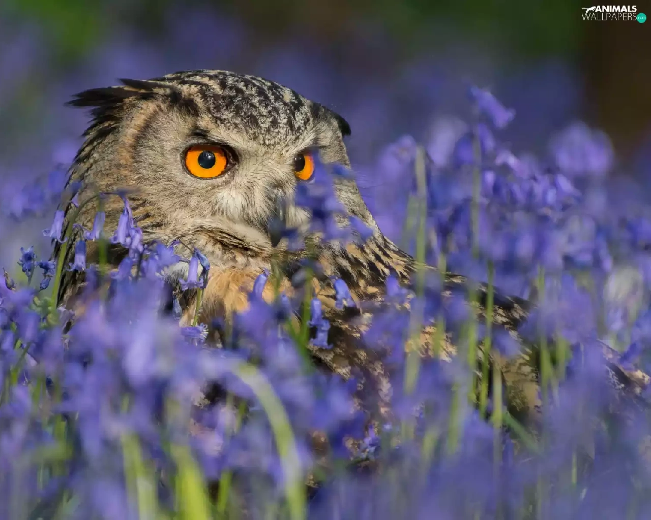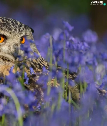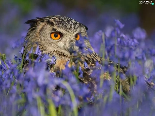 owl, purple, Flowers, eagle-owl