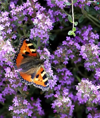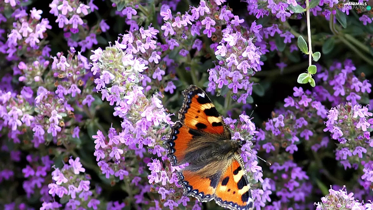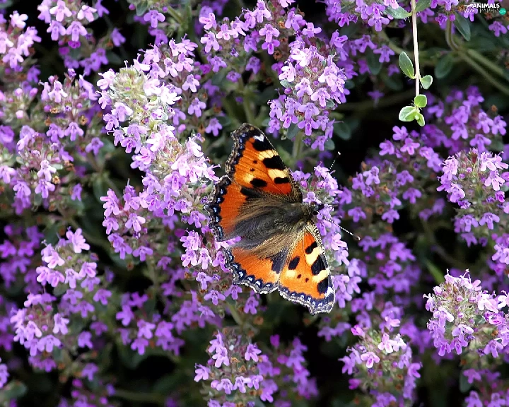 butterfly, purple, flowers, Small Tortoiseshell