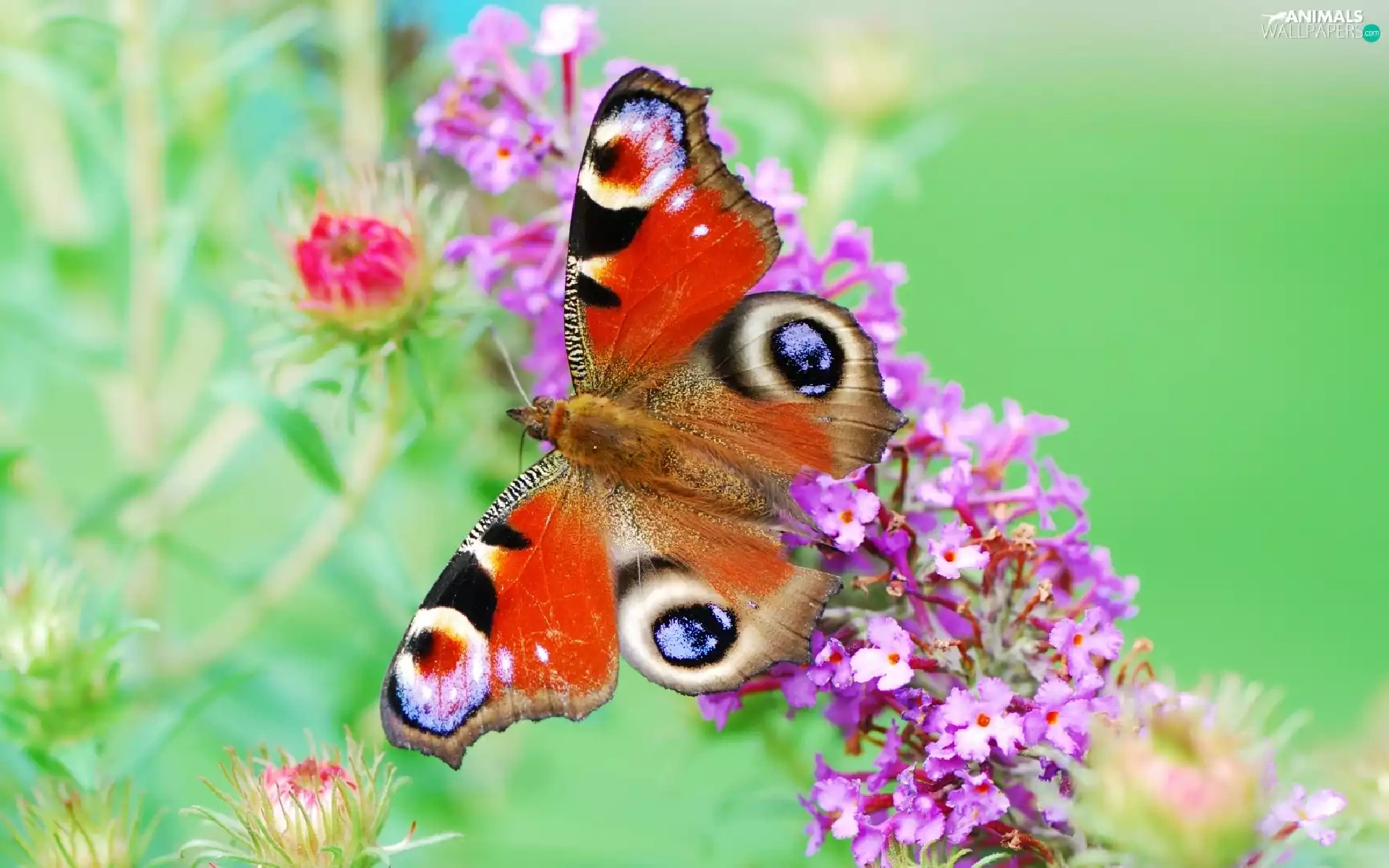 butterfly, purple, Flowers, peacock Wink
