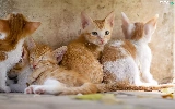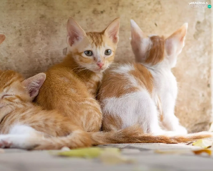 four, red-white, puss, little doggies