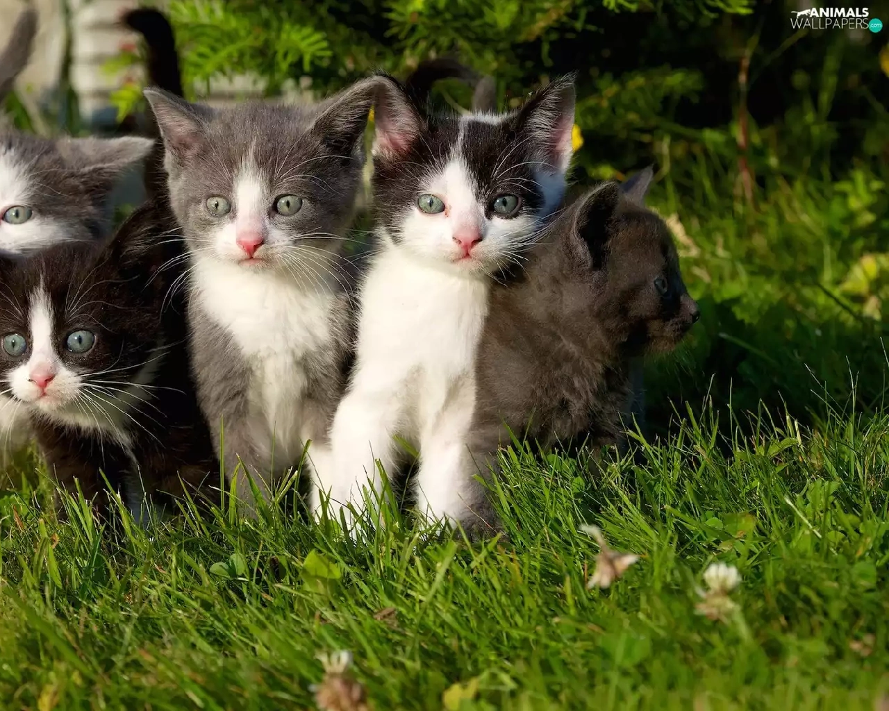 grass, little doggies, puss
