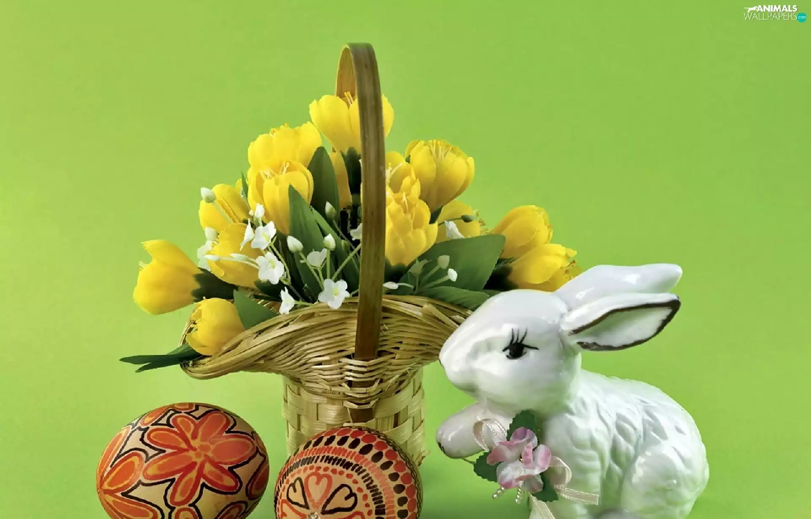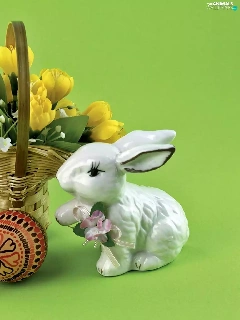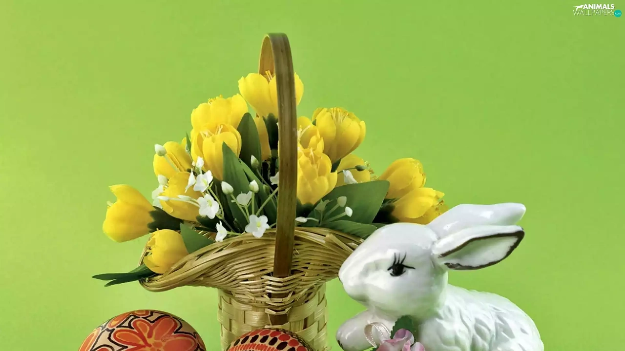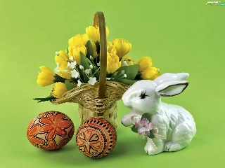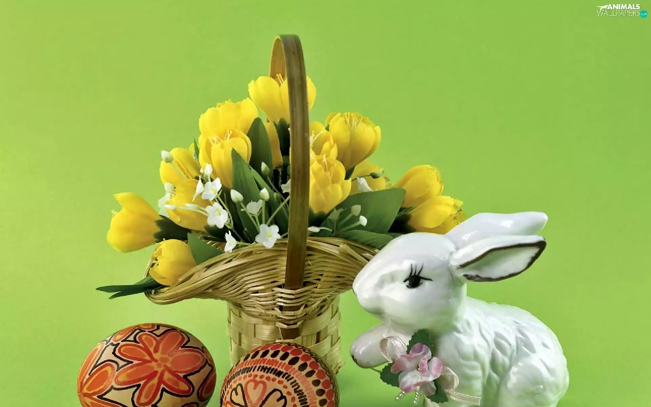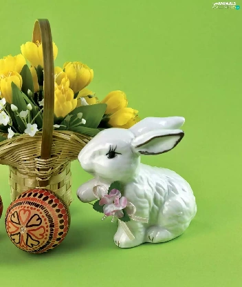 porcelain, Rabbit, crocus, eggs, bouquet