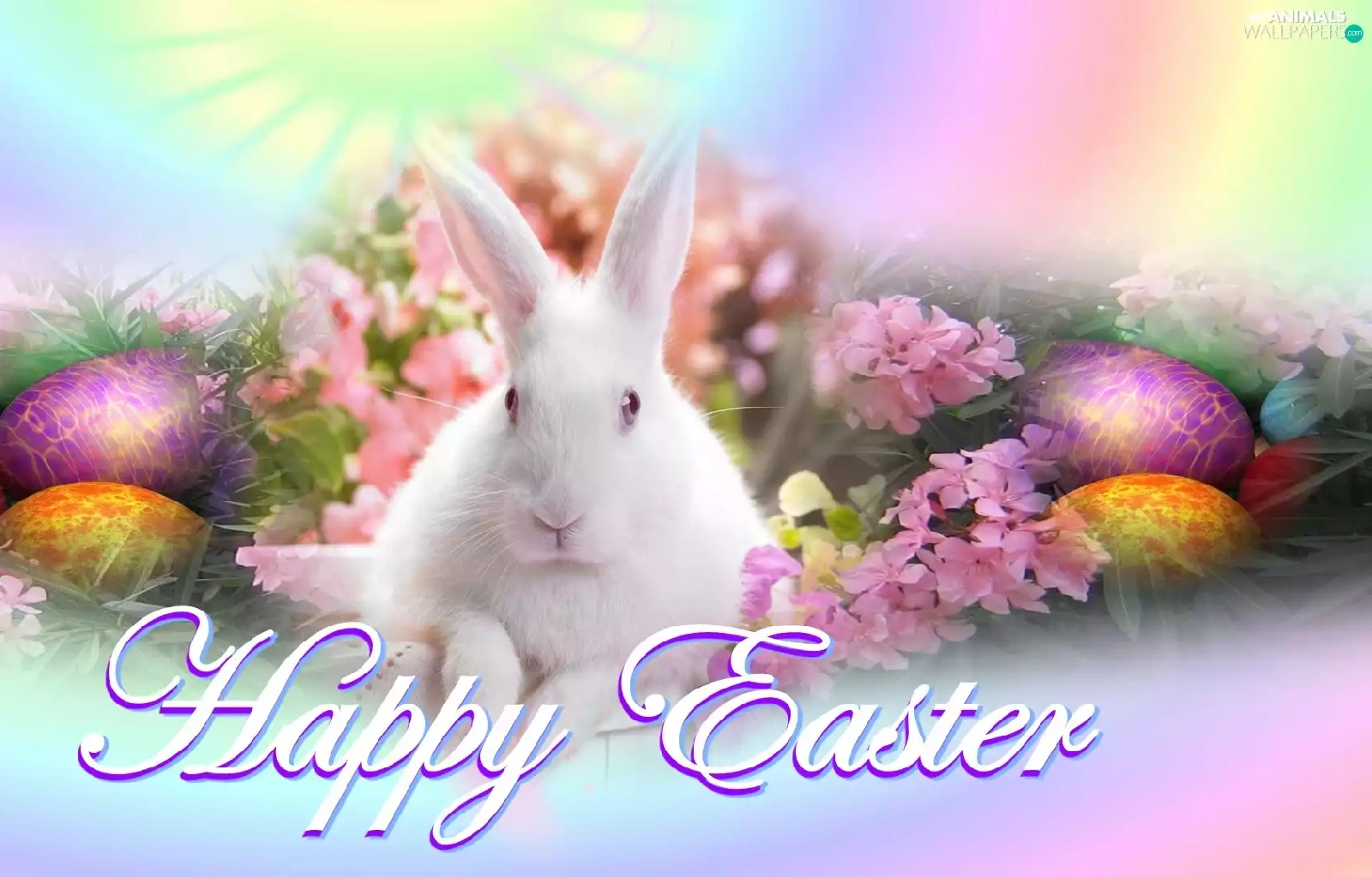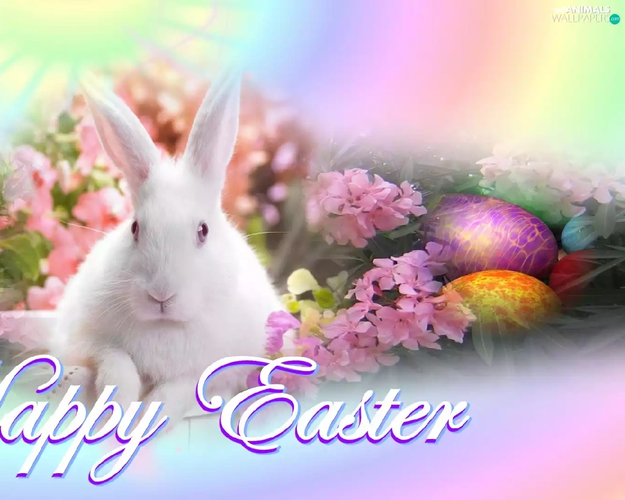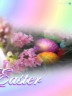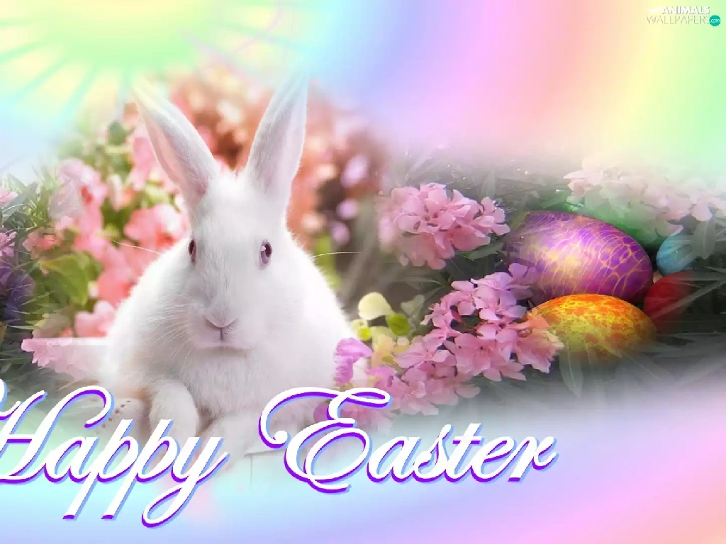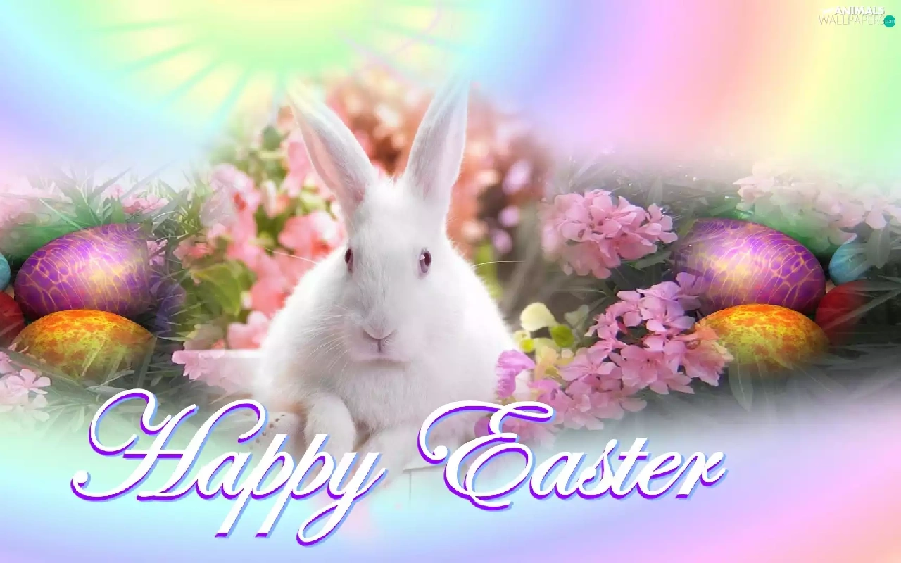 Easter, eggs, Flowers, rabbit