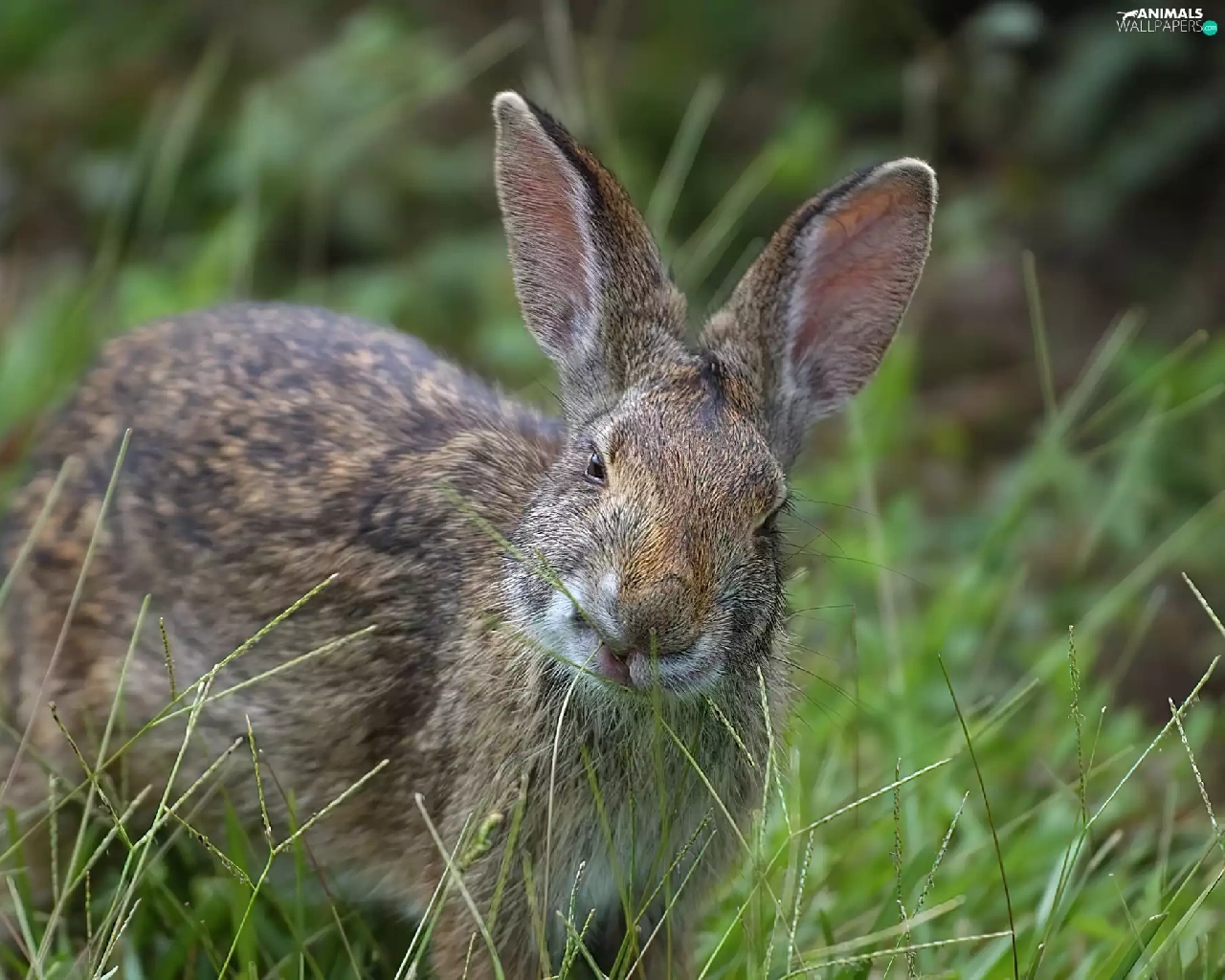 Wild Rabbit, grass, ears, Green