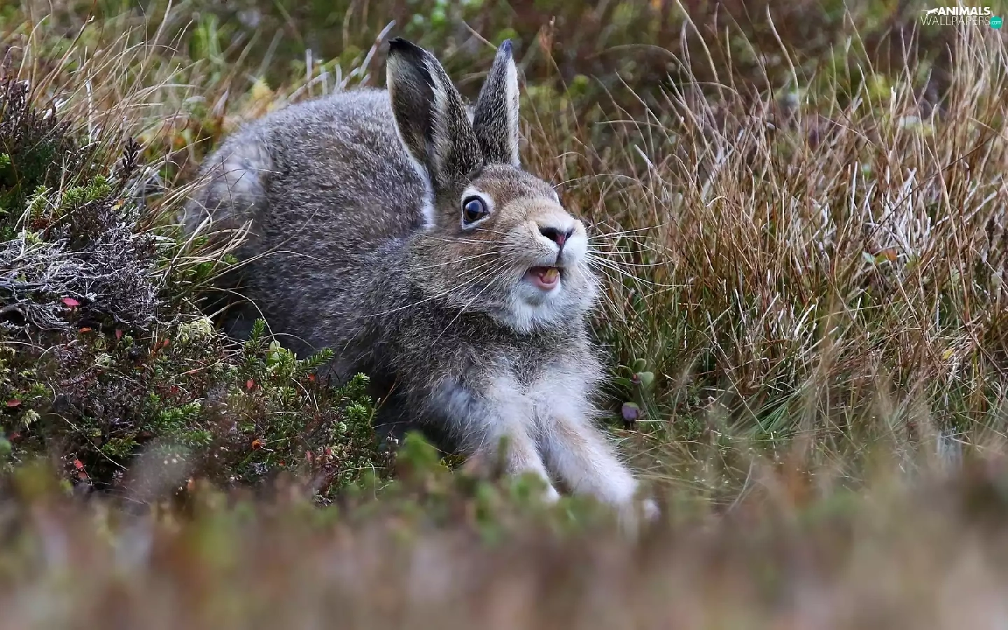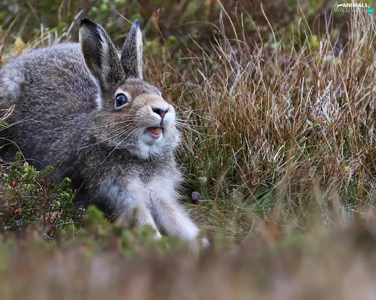 Wild Rabbit, grass, Plants, Meadow