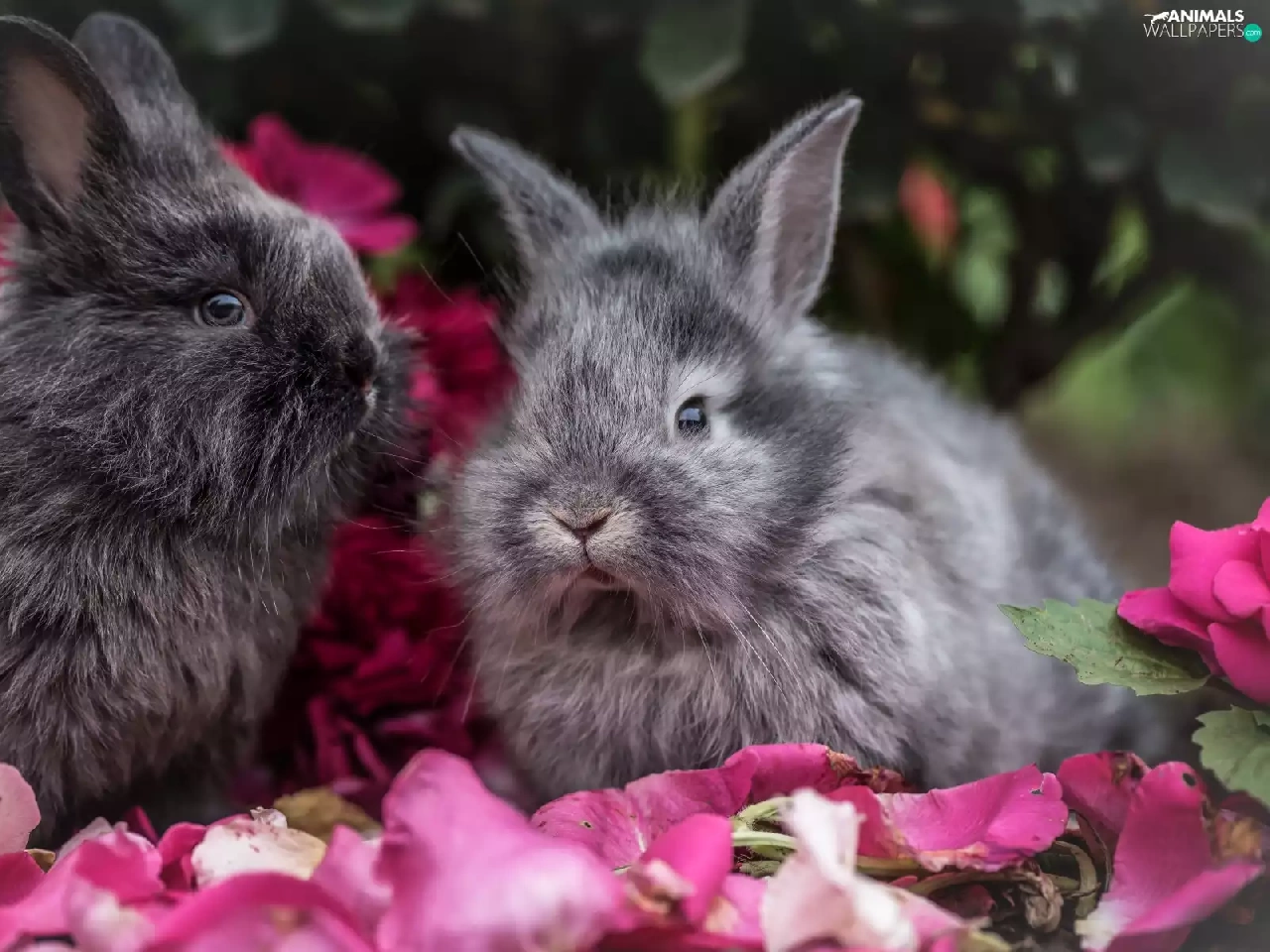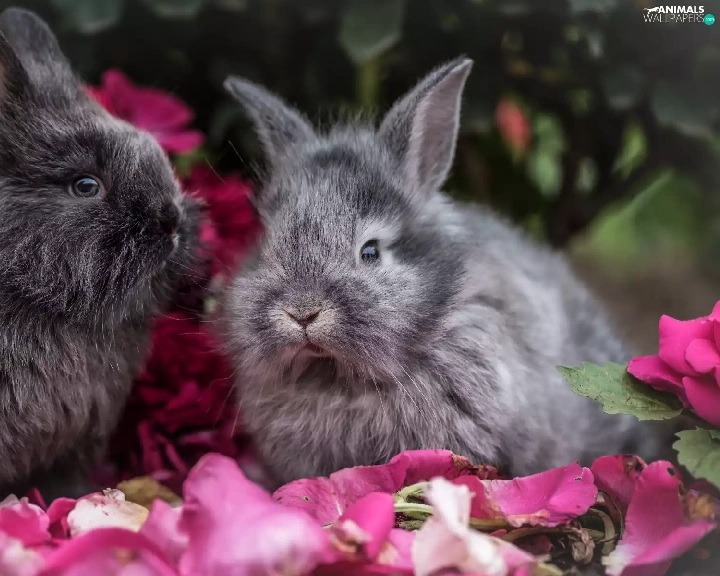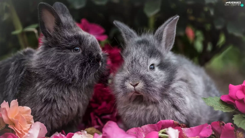 Flowers, Two cars, Rabbits