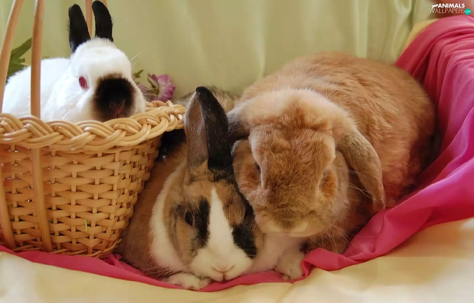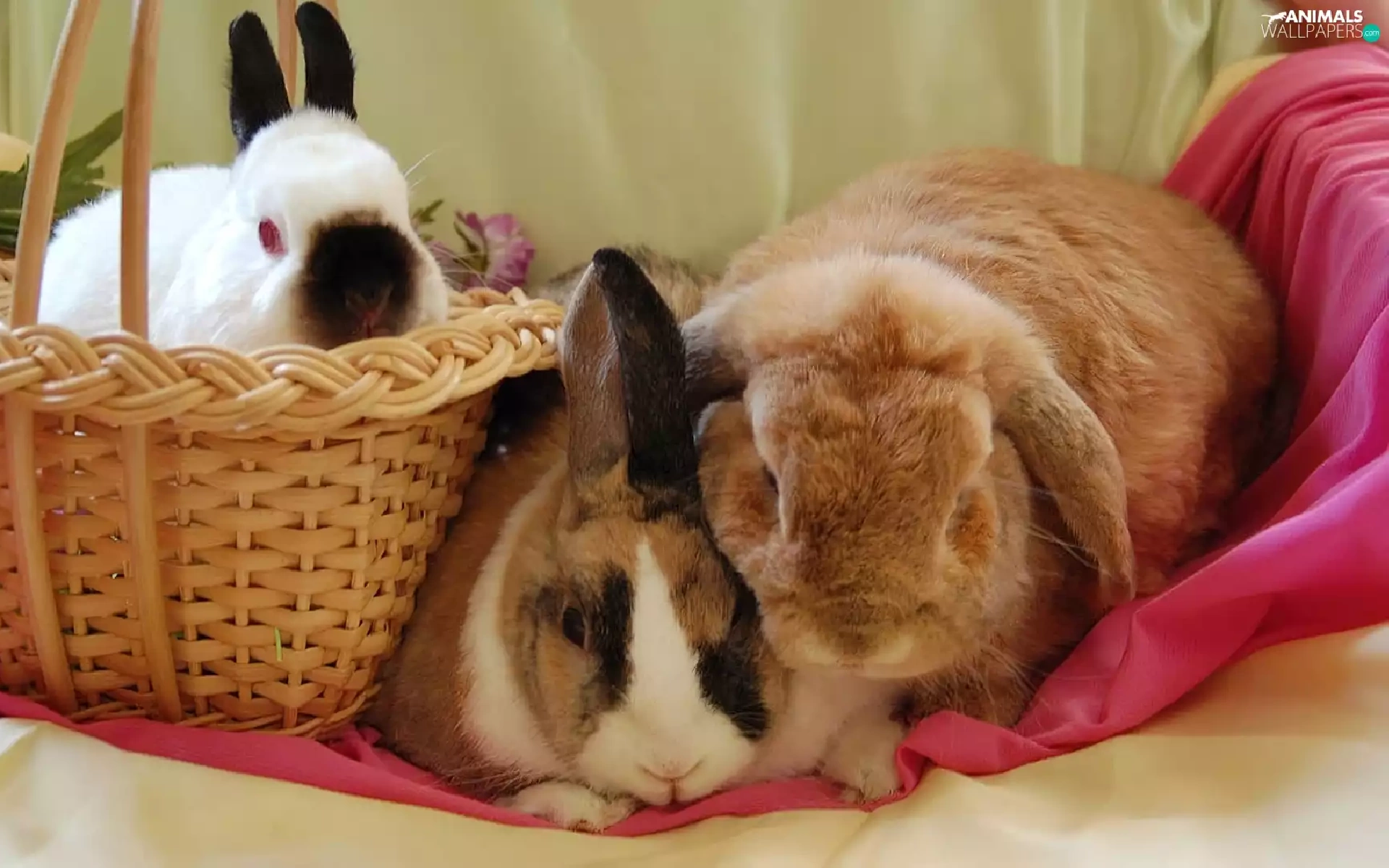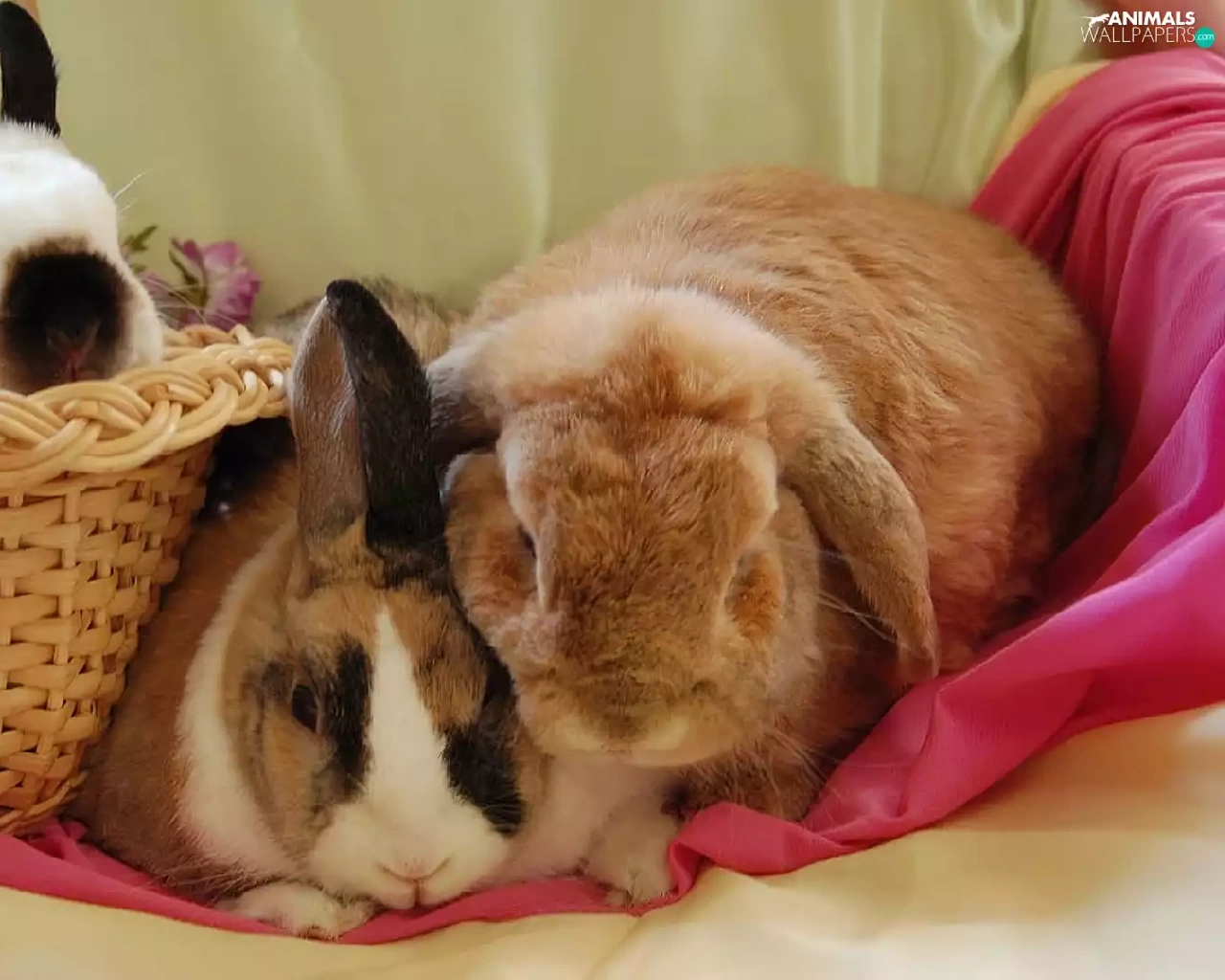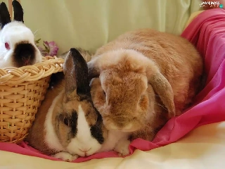 Three, basket, Blanket, Rabbits