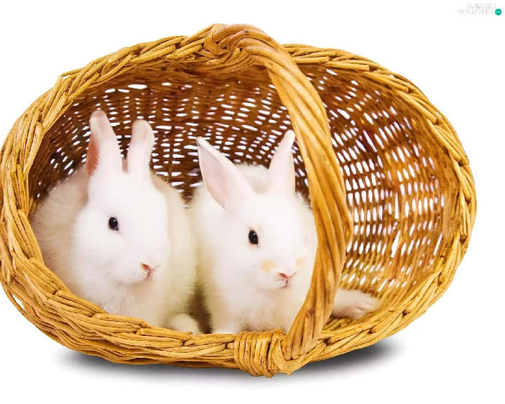 rabbits, basket, White