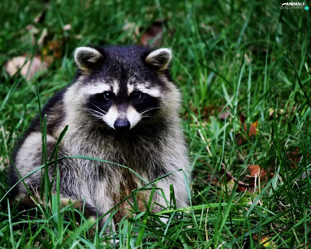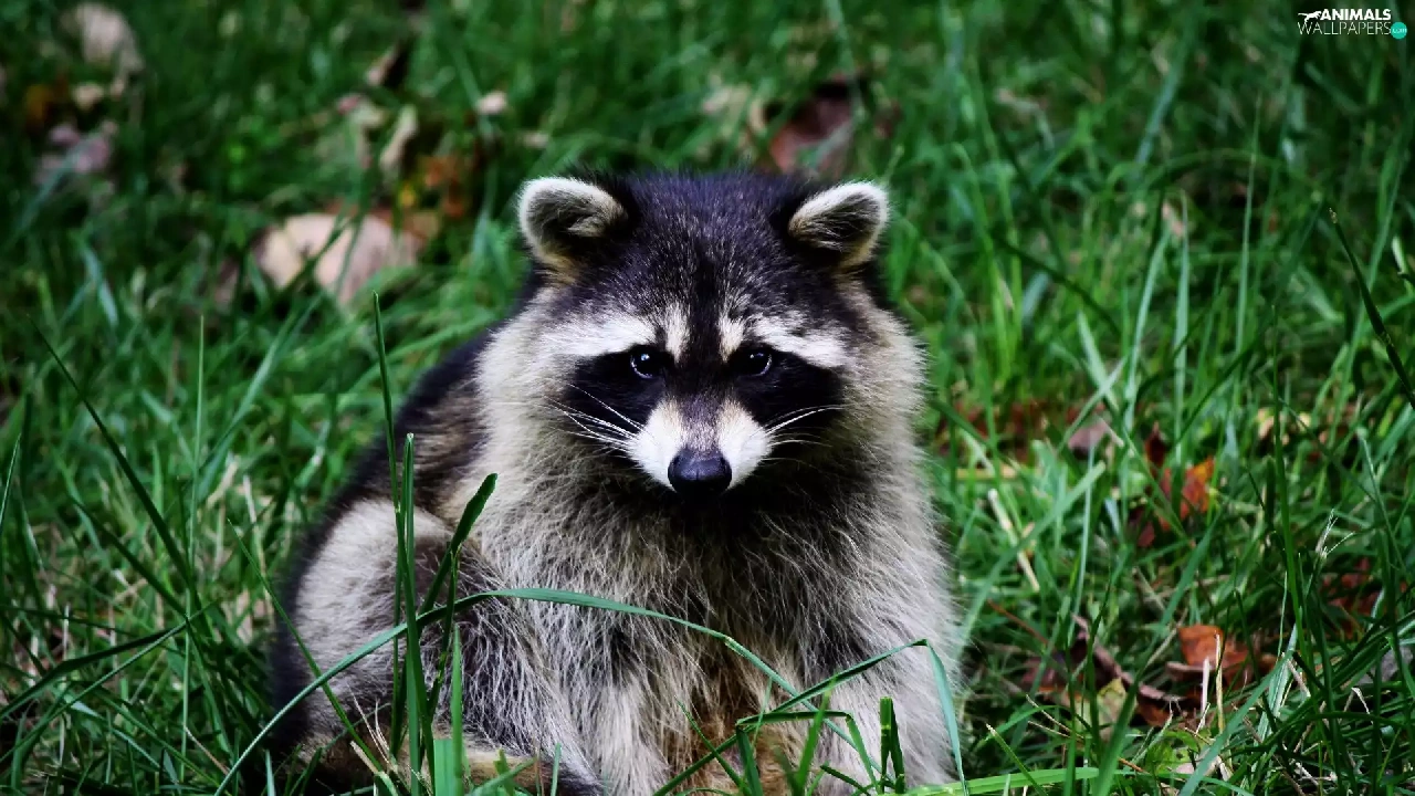 raccoon, grass