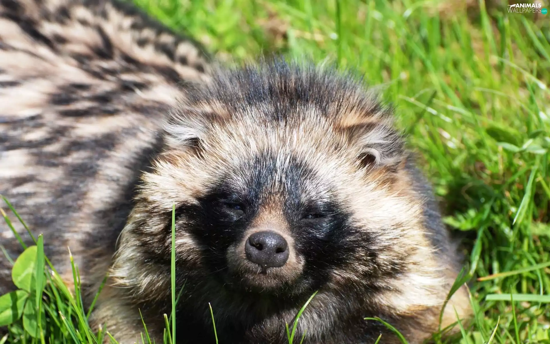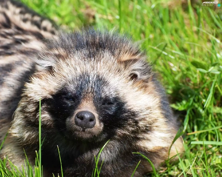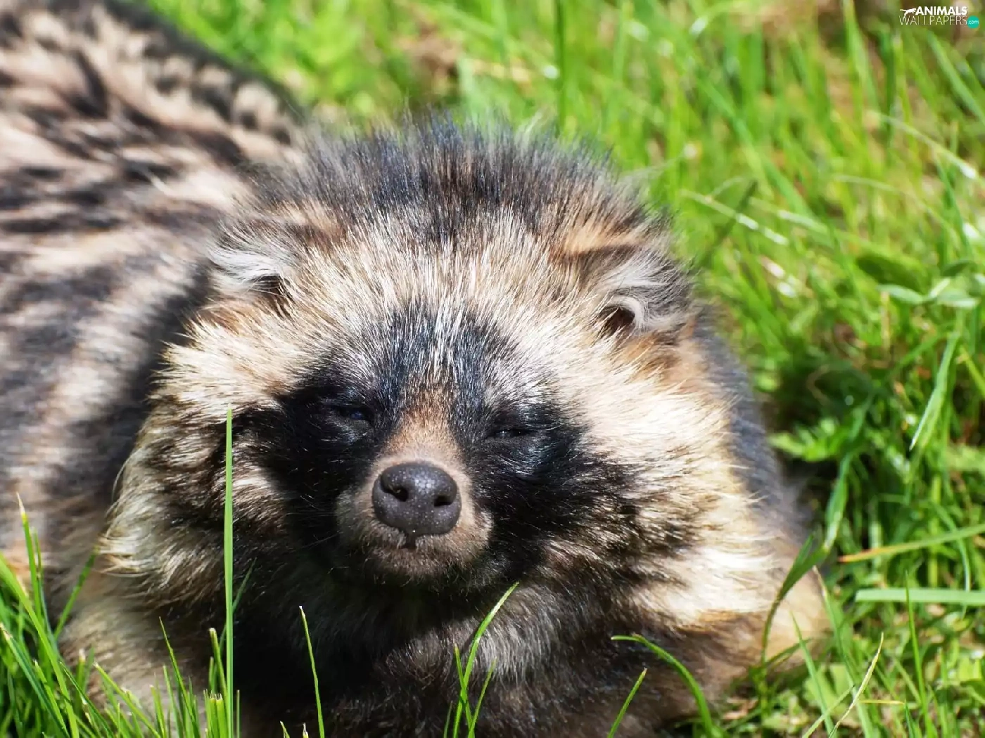 raccoon, grass