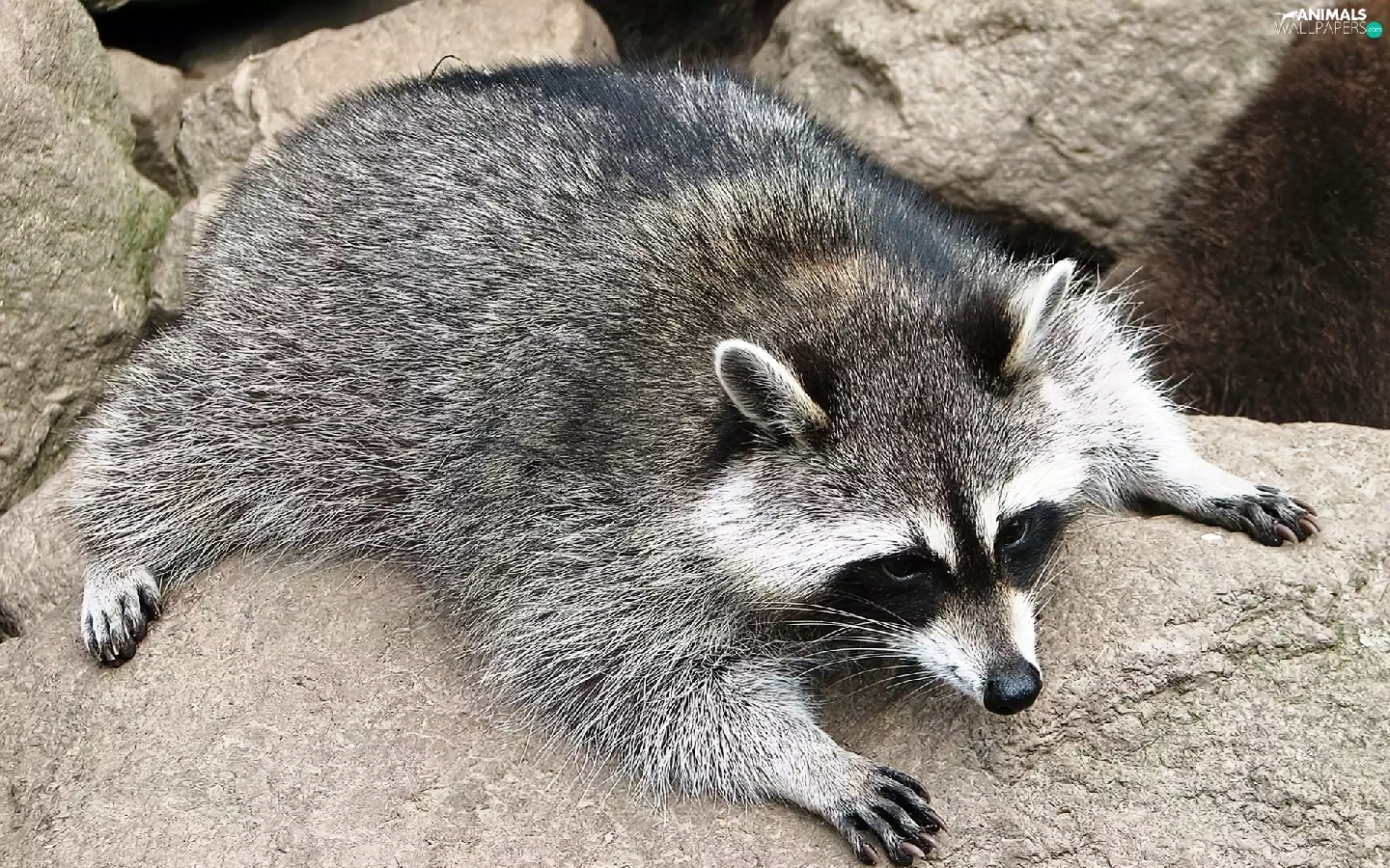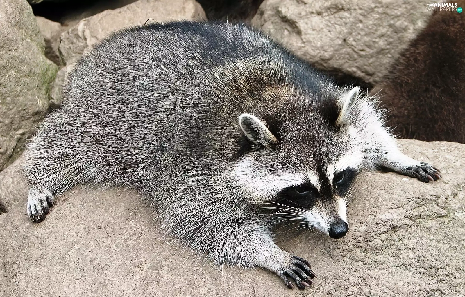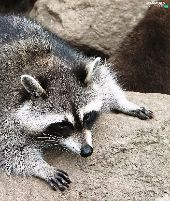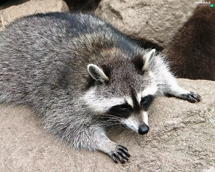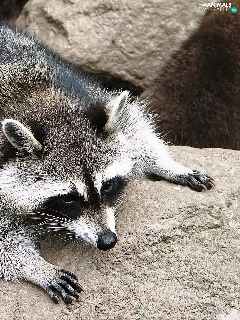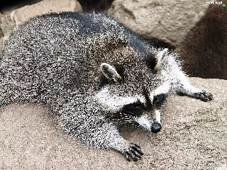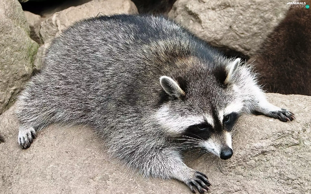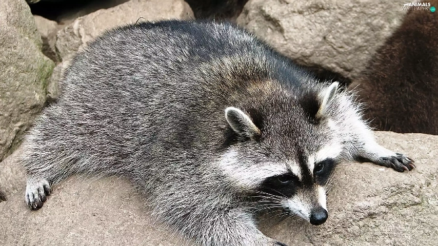 raccoon, rocks