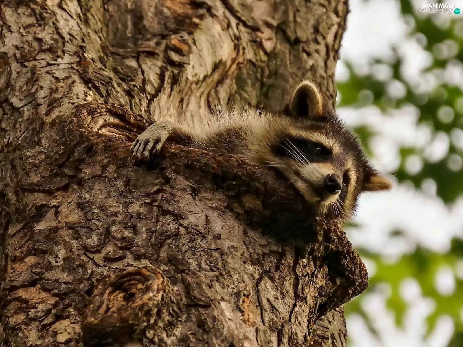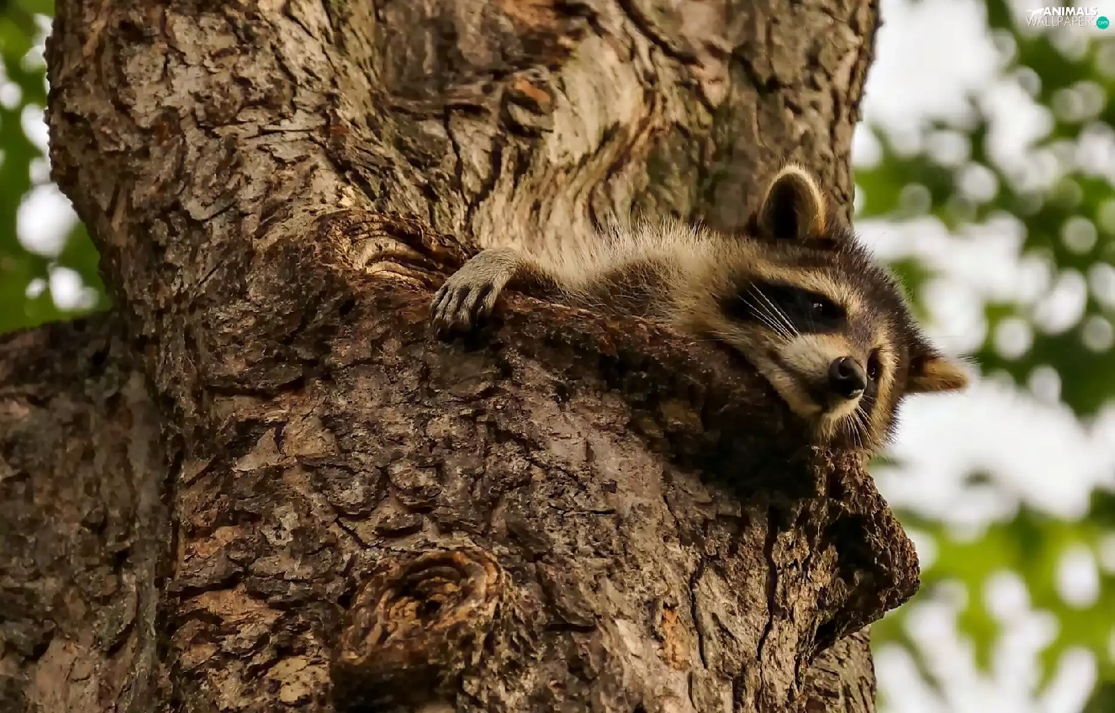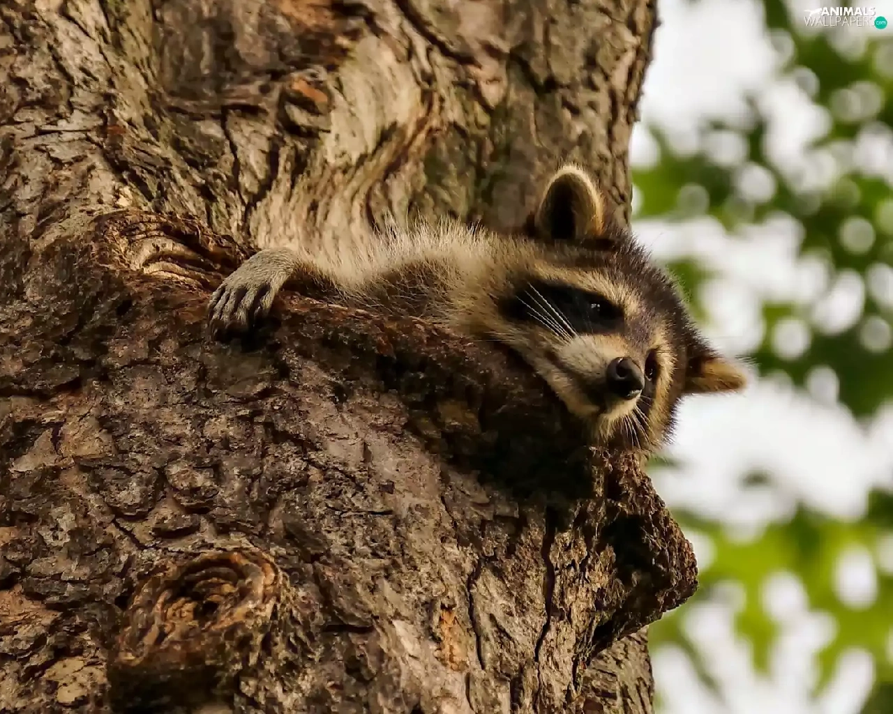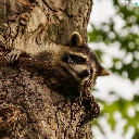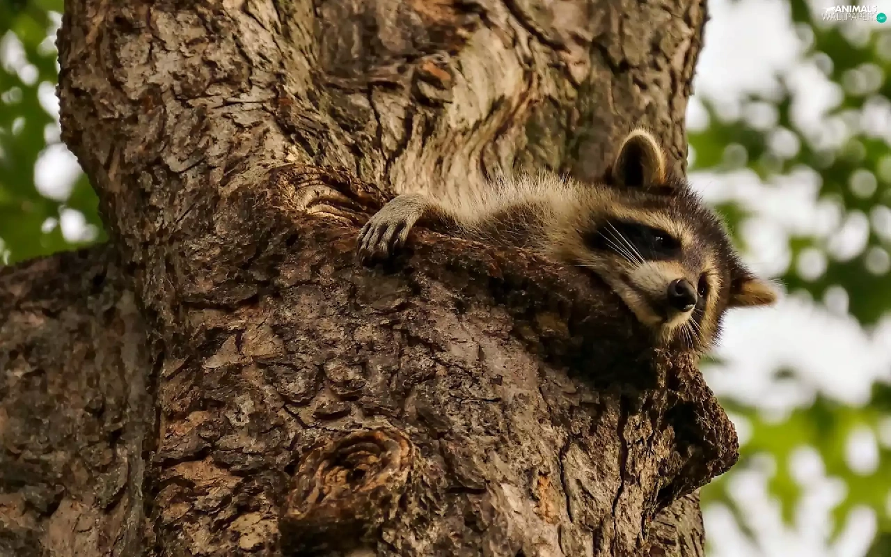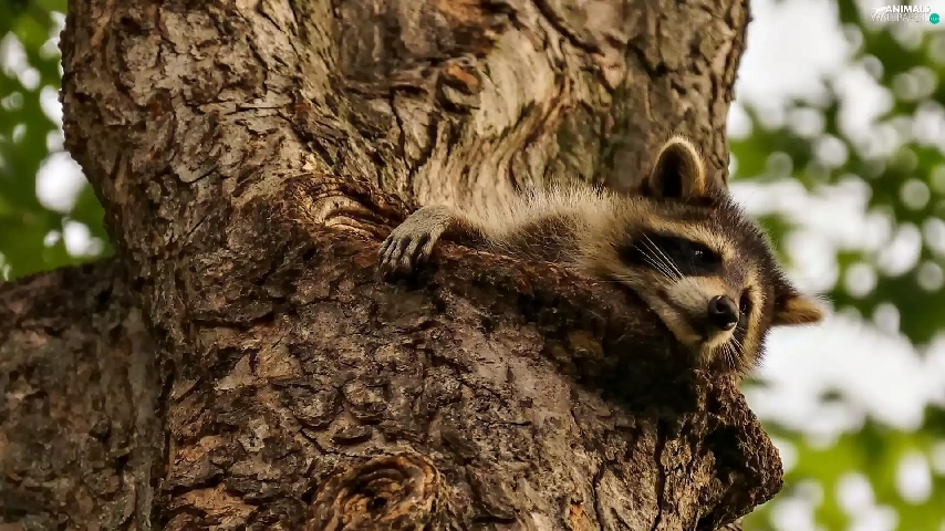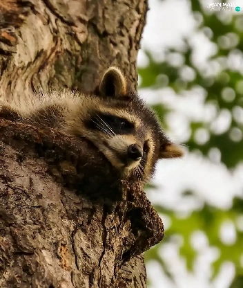 raccoon, trees
