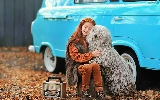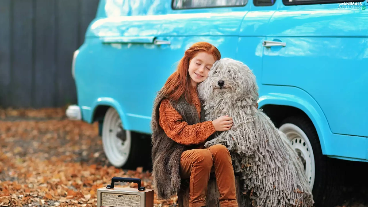 dog, redhead, hugging, radio, Puli, girl