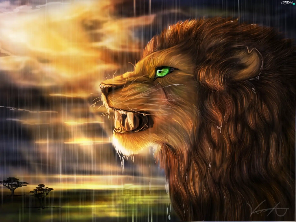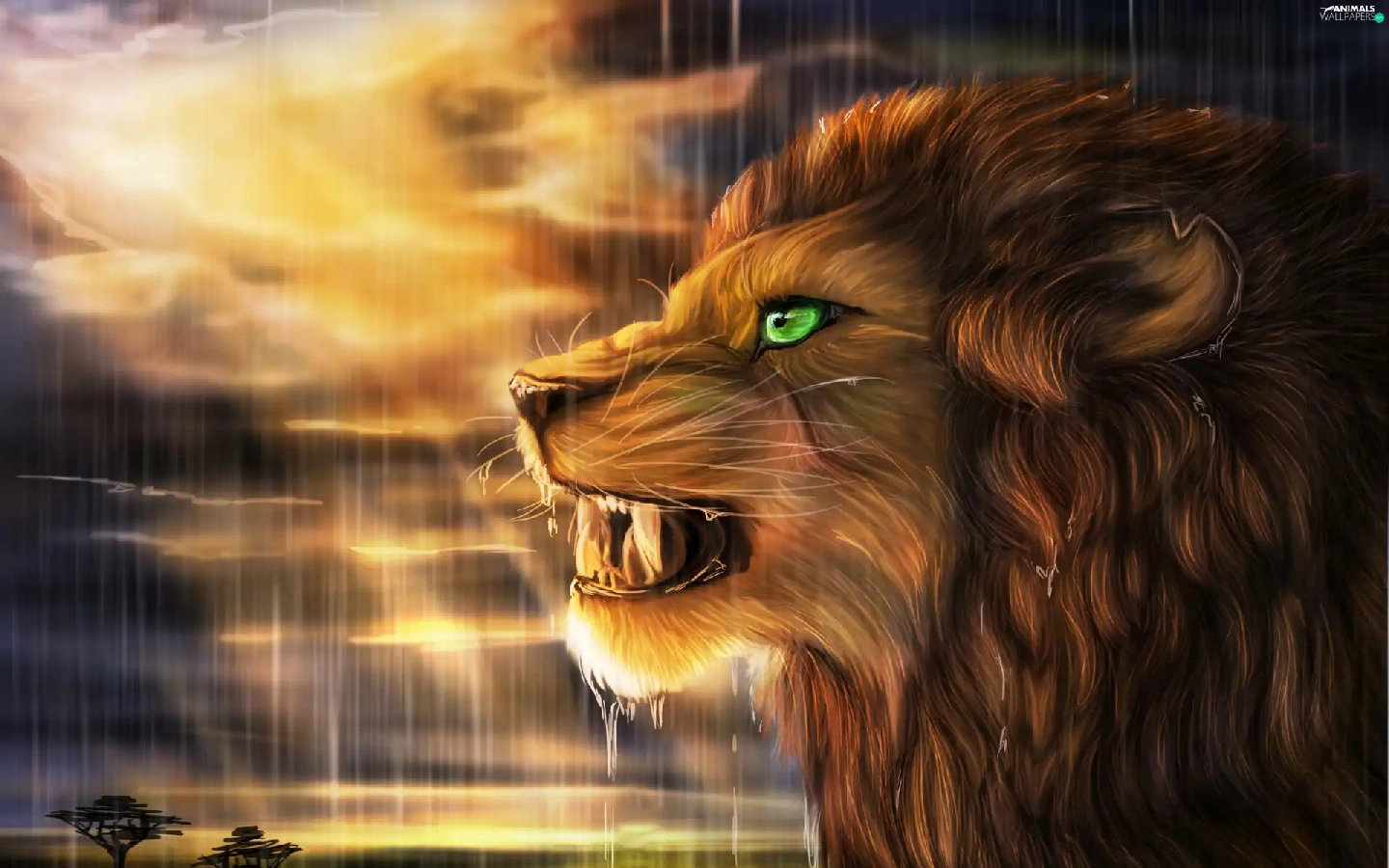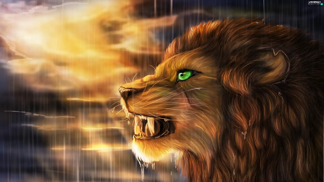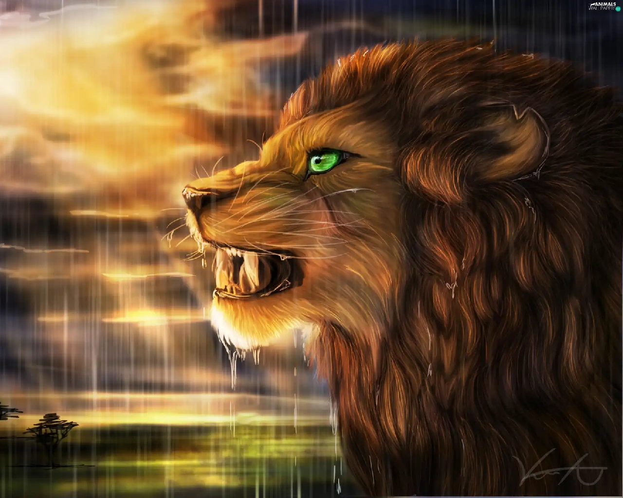 Rain, Art, west, sun, Lion