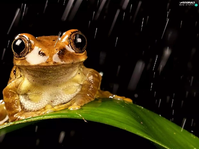 Rain, frog, leaf