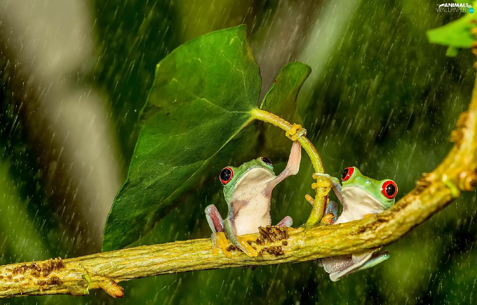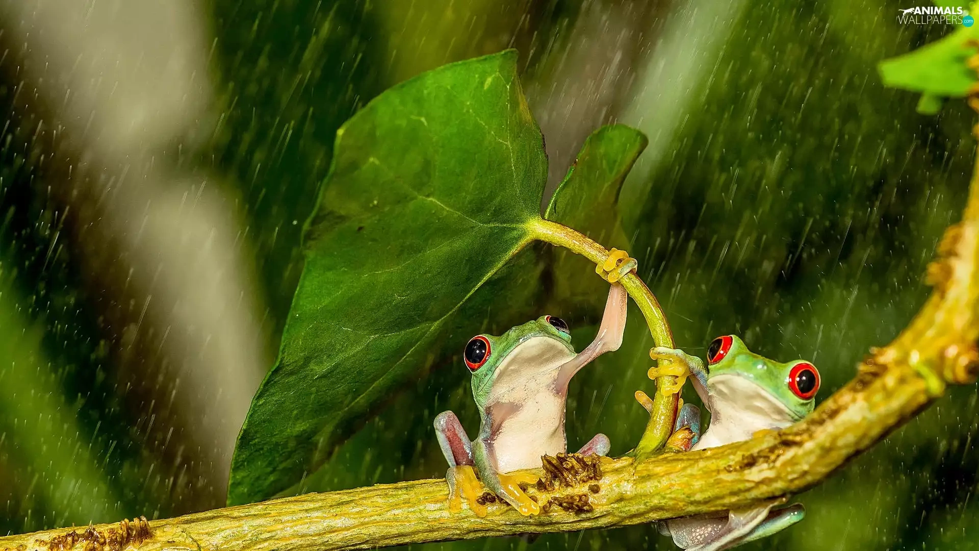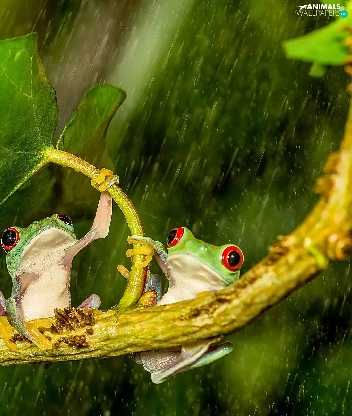 Rain, frogs, leaf