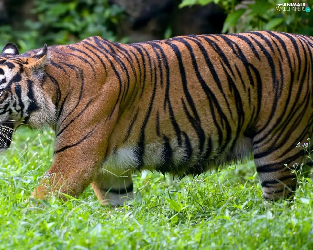 grass, Bengal Tiger, rapprochement