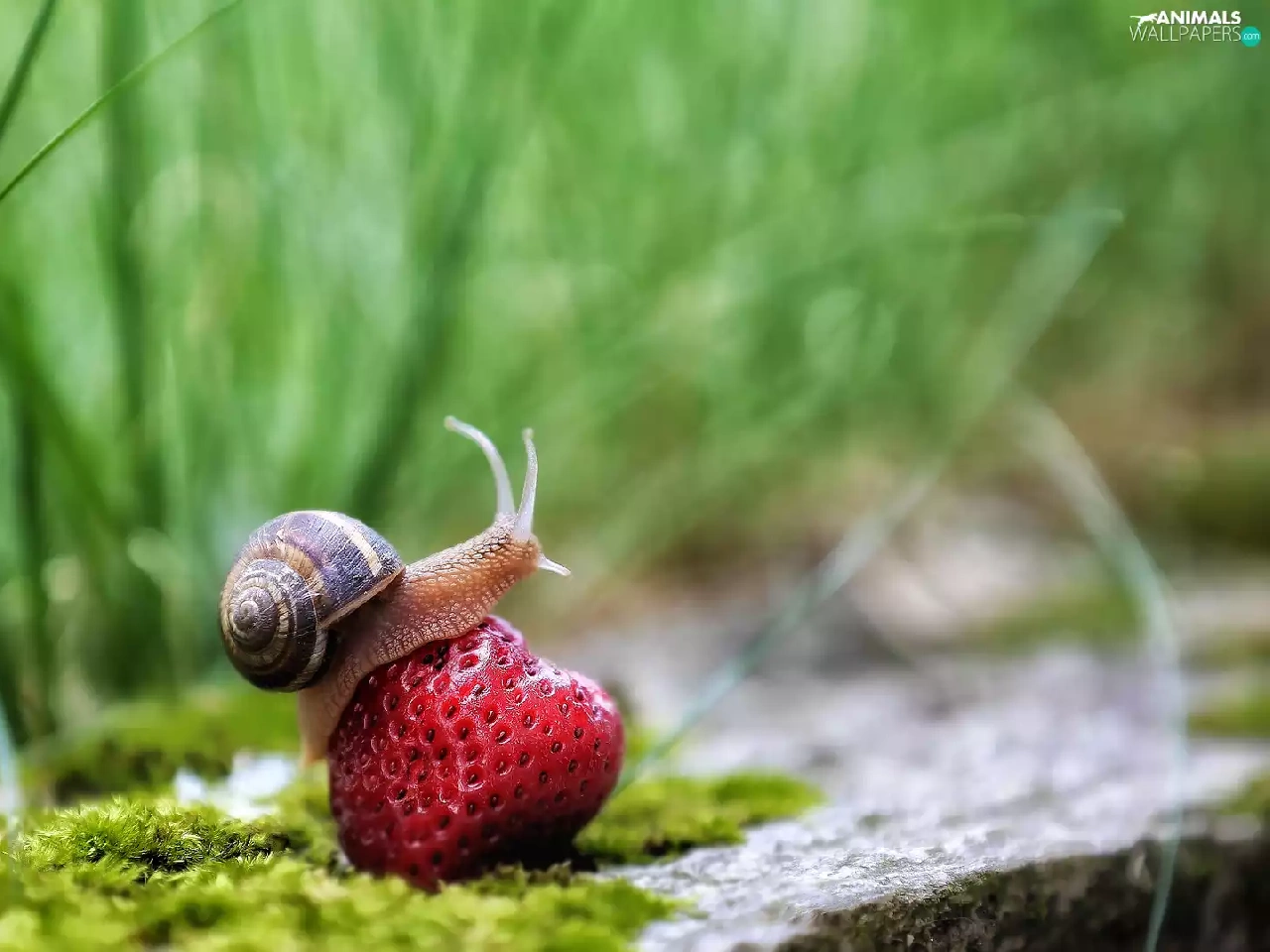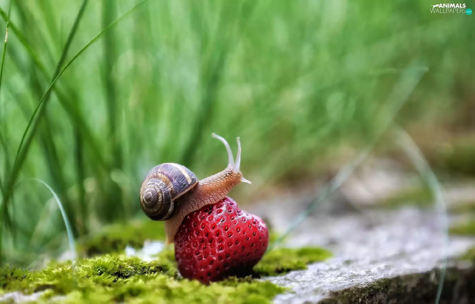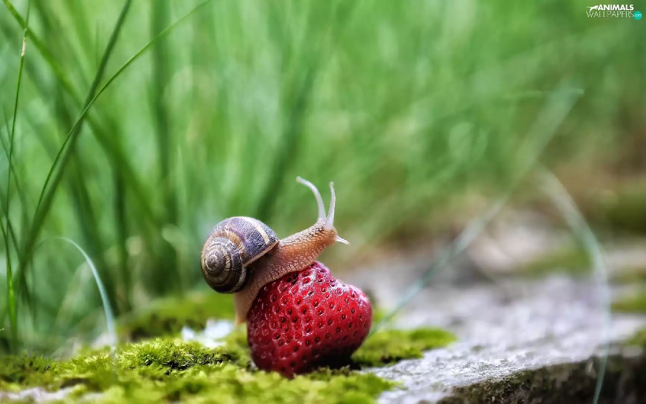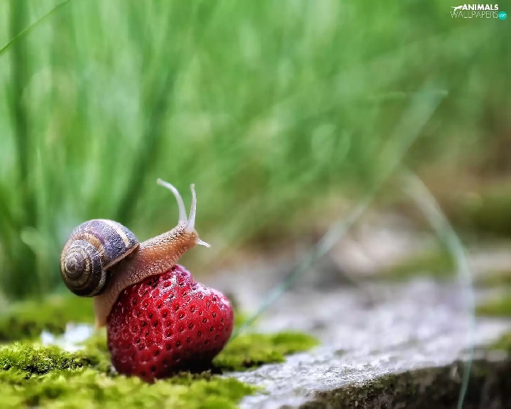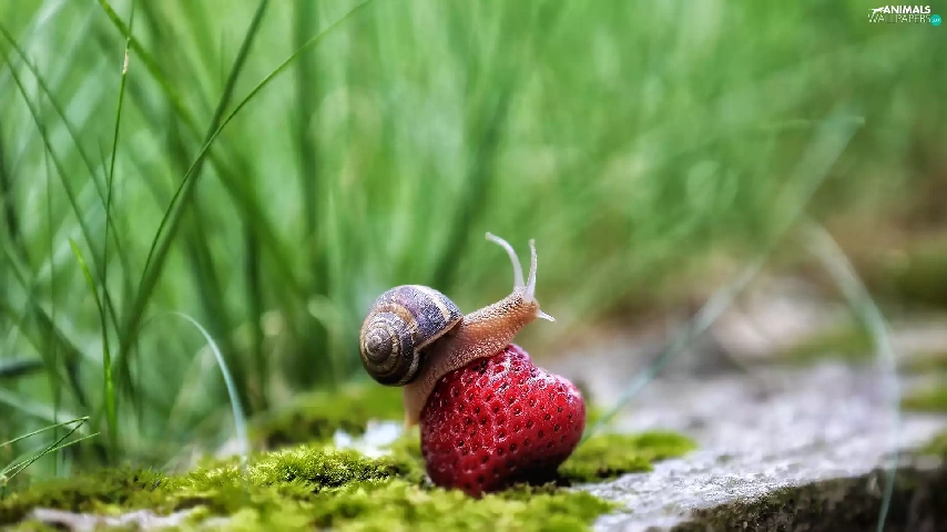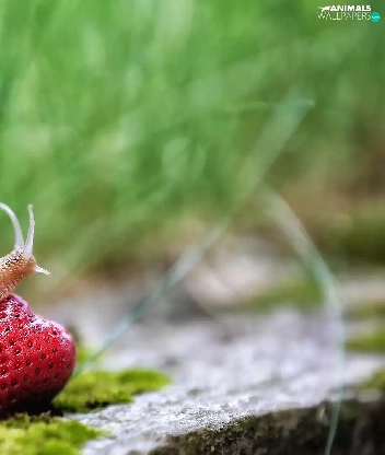 Moss, rapprochement, Strawberry, grass, snail