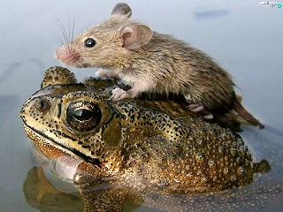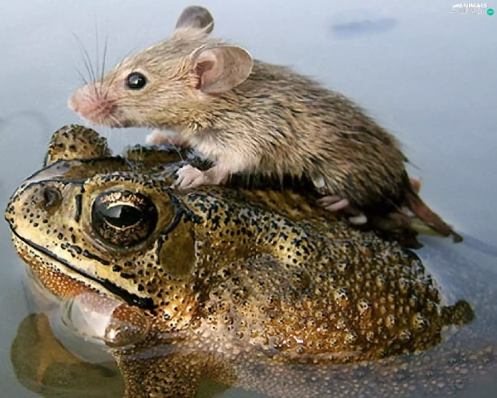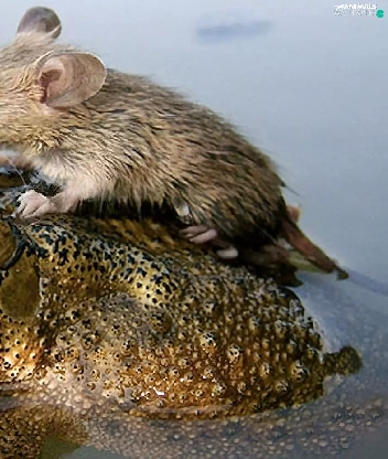 water, strange frog, rat