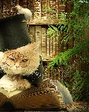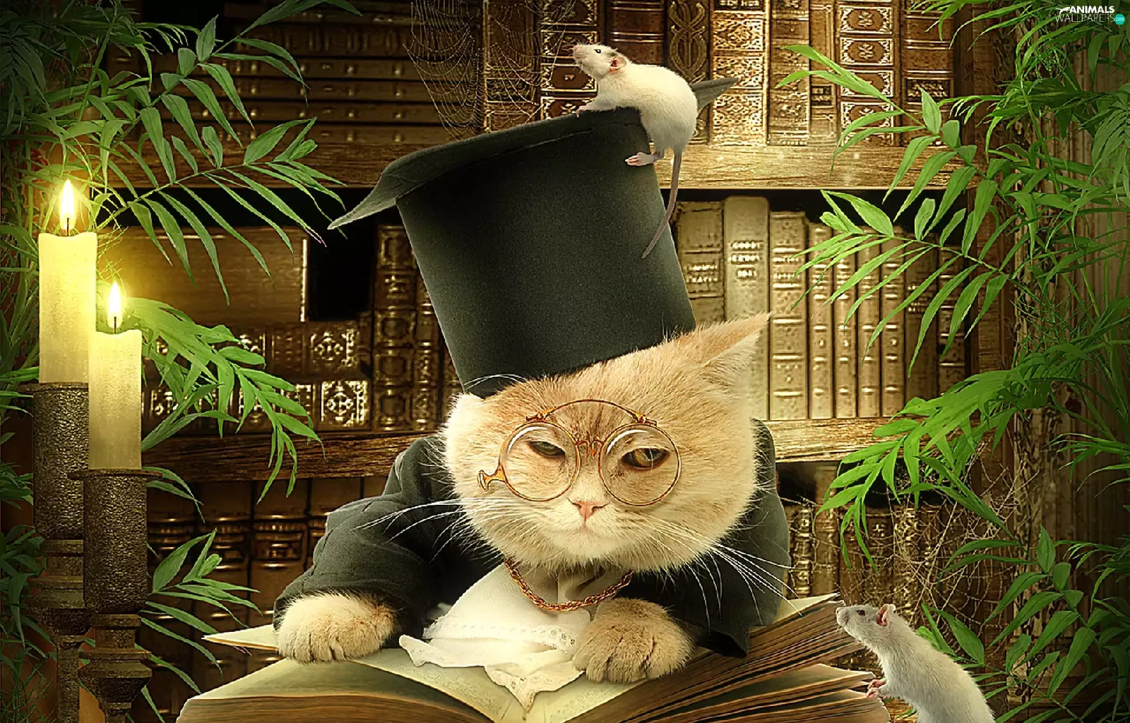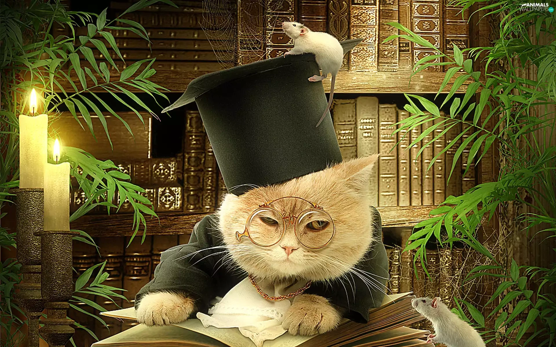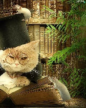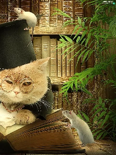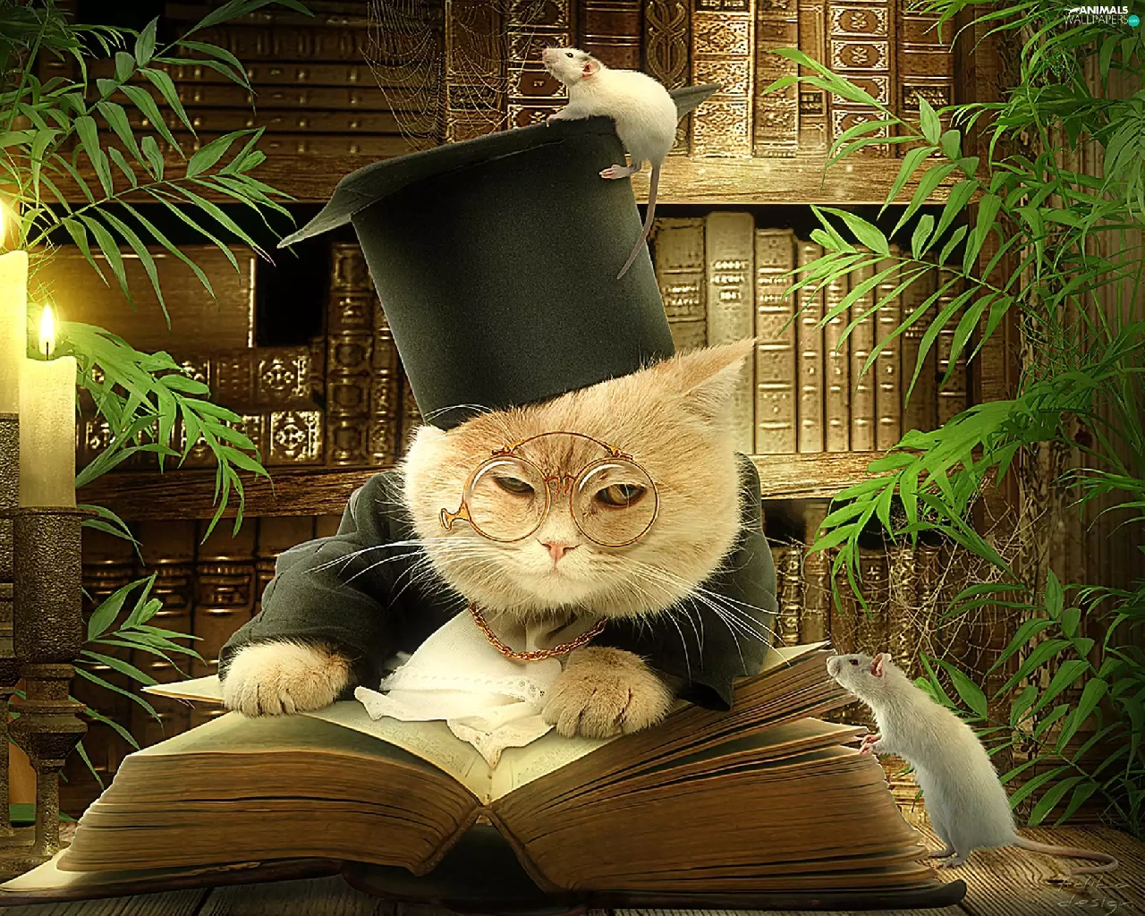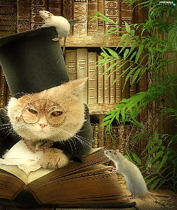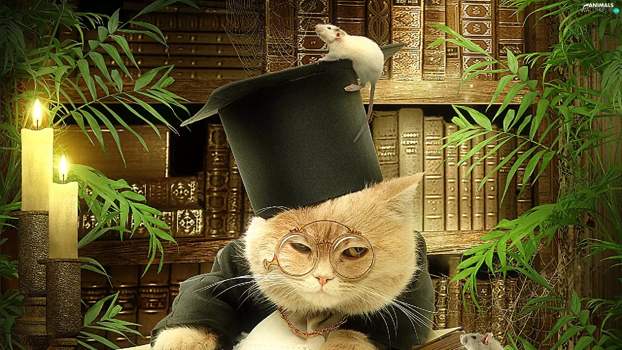 cat, rats, Books, Two cars