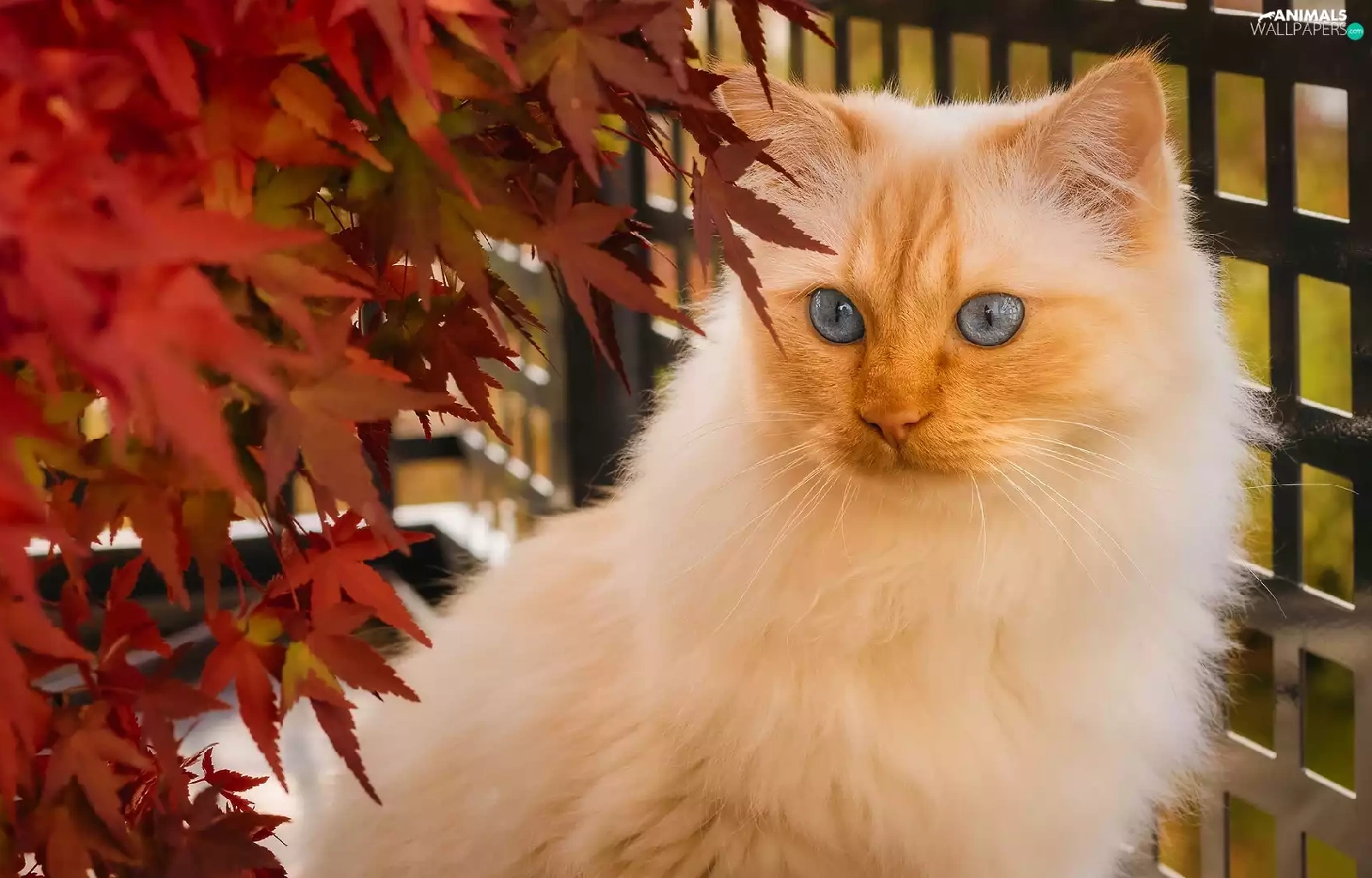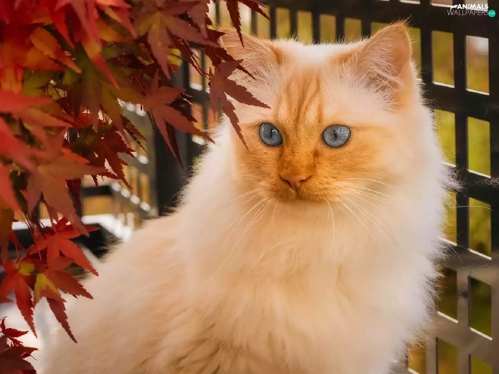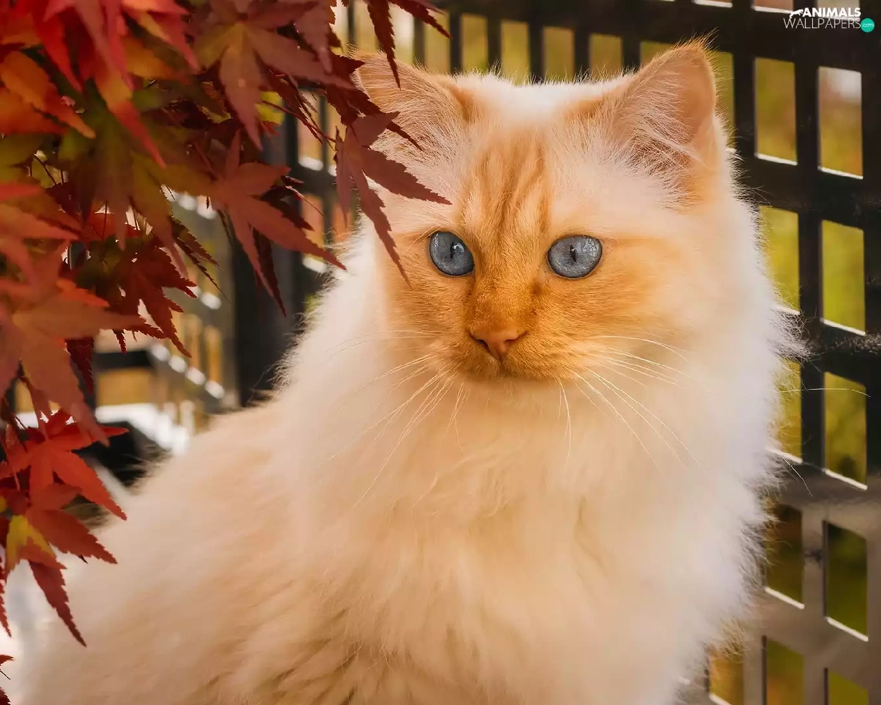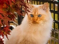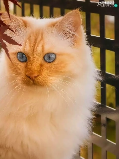 Leaf, Balcony, Blue Eyed, cat, white and red