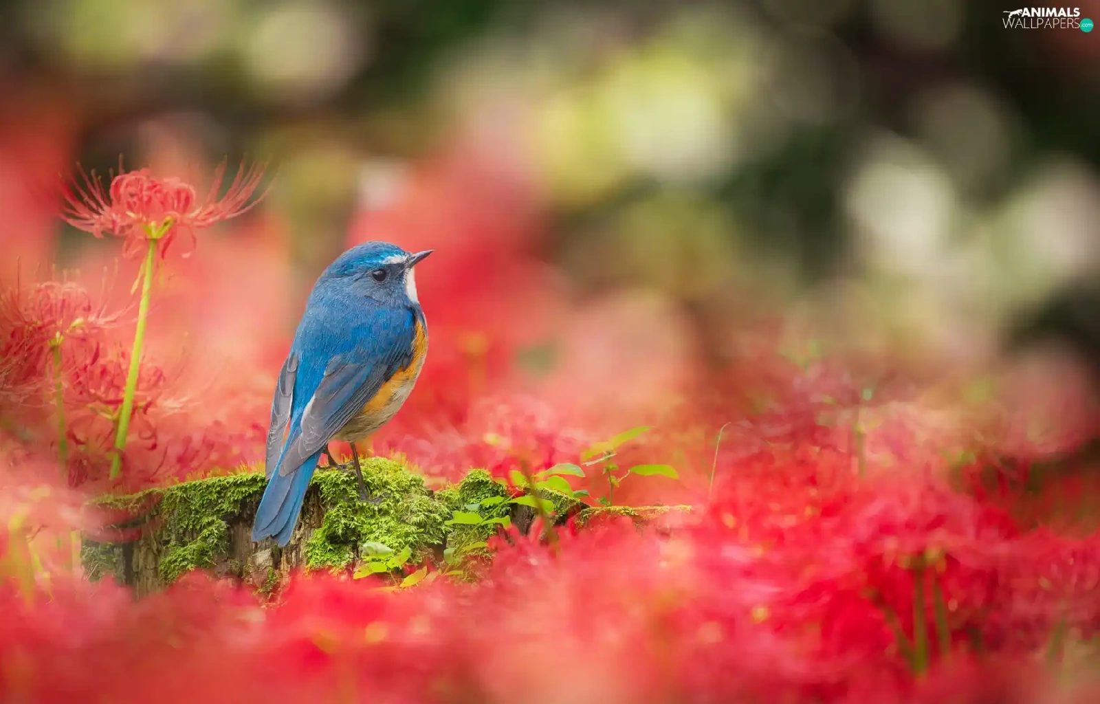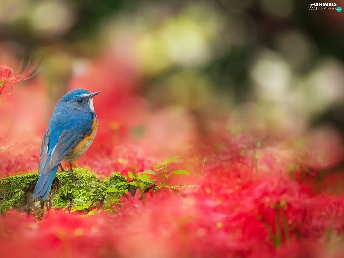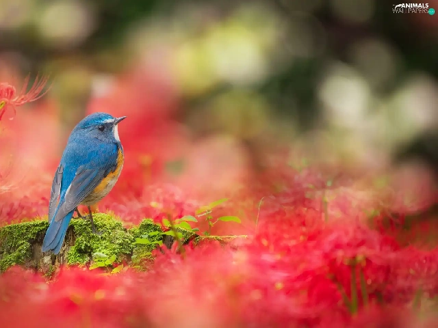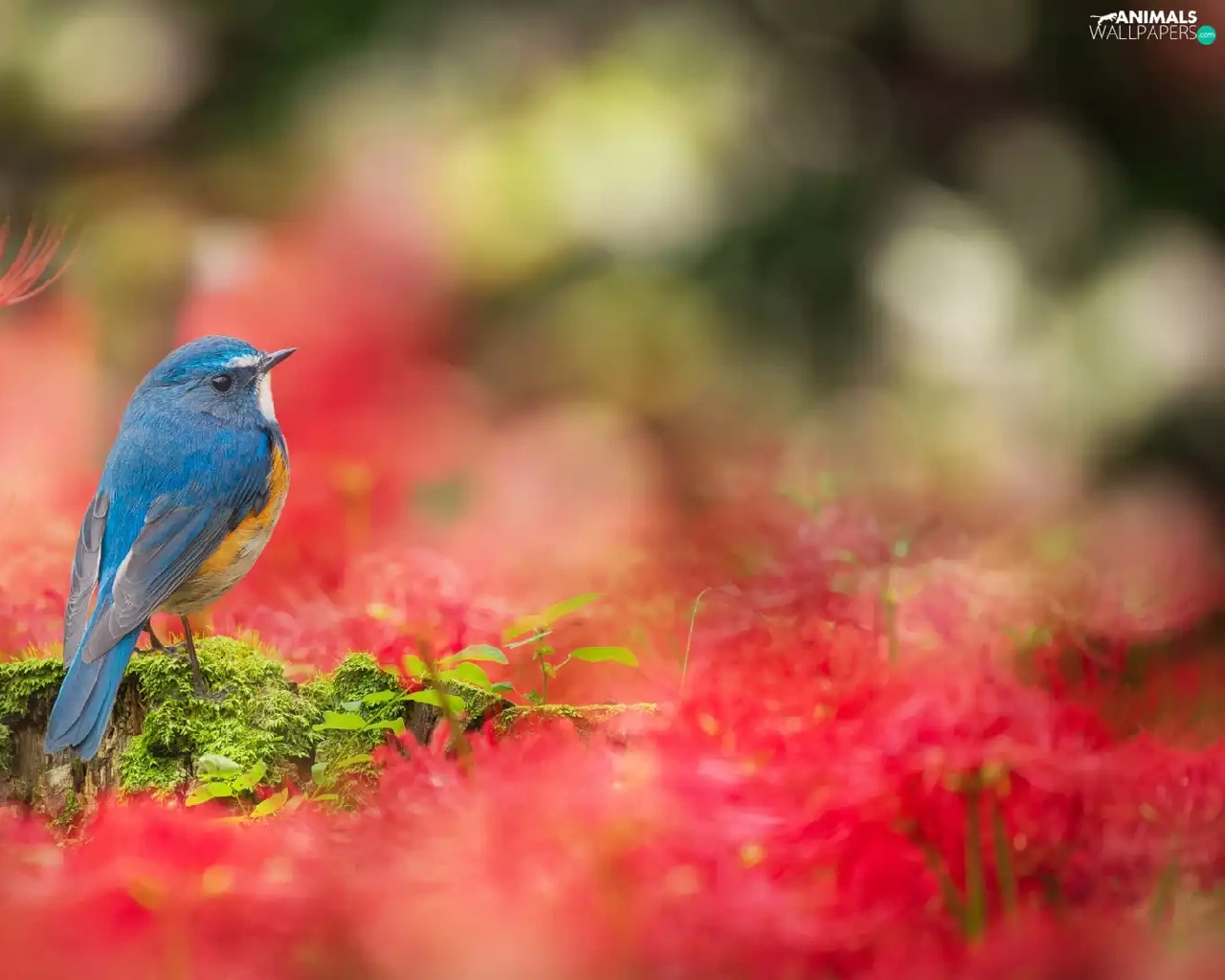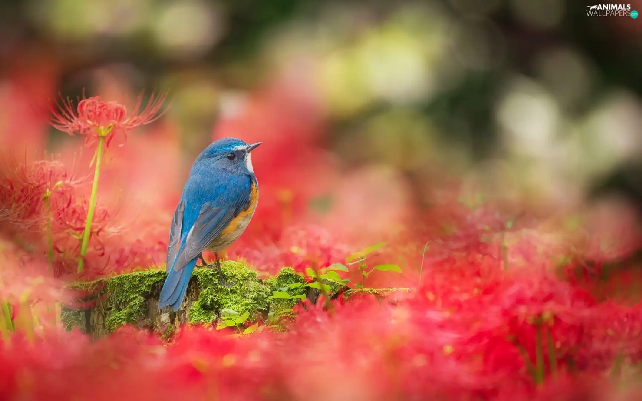Bird, Flowers, Red, Red-flanked Bluetail