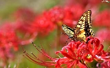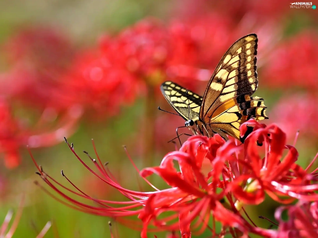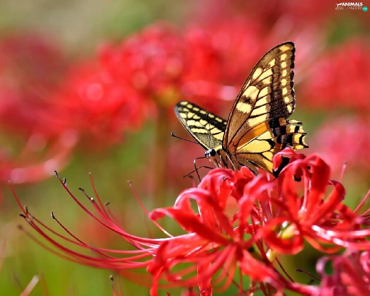 Colourfull Flowers, butterfly, Red
