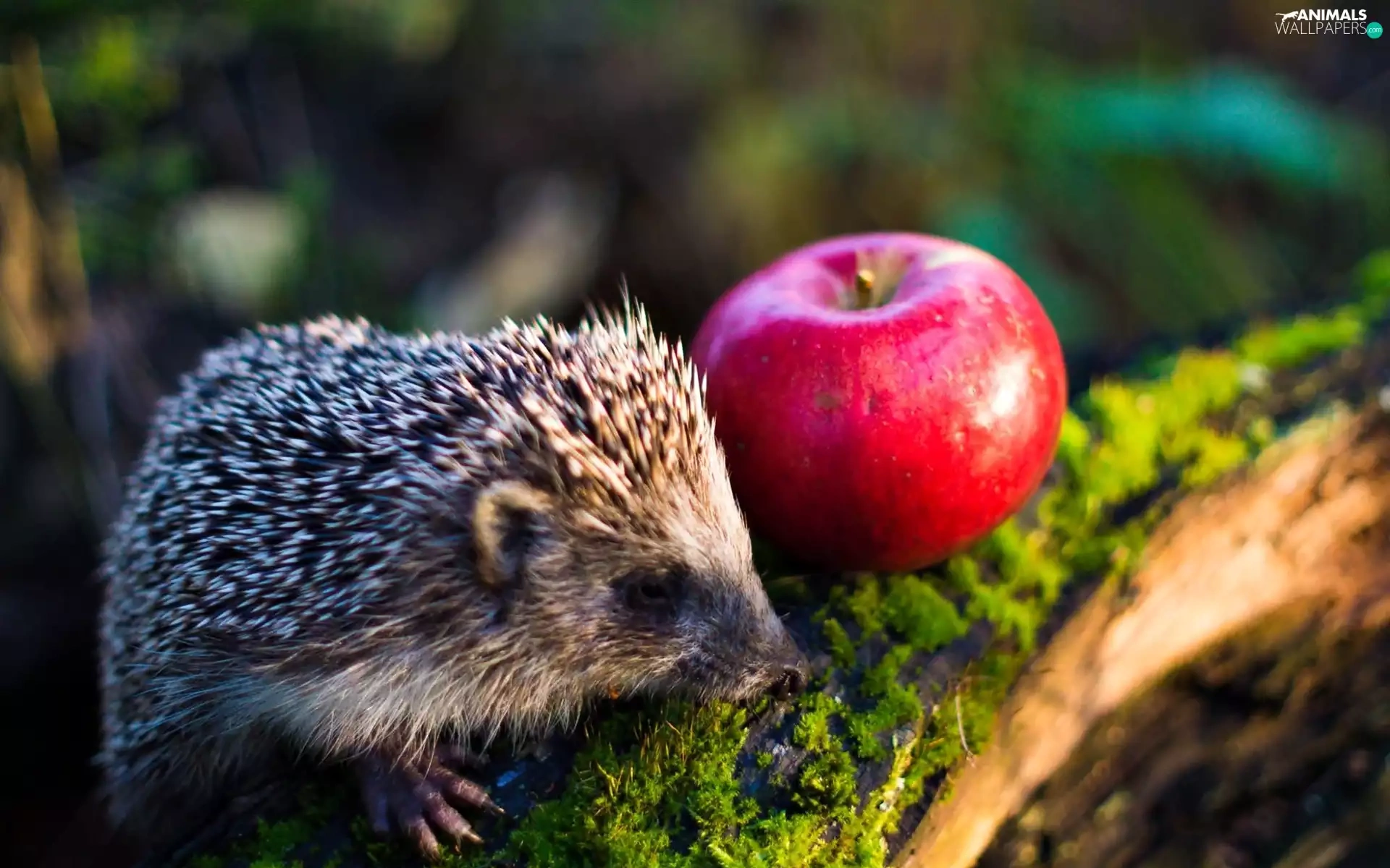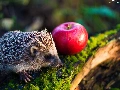 hedgehog, Apple, Moss, Red