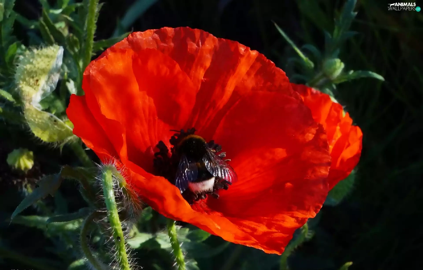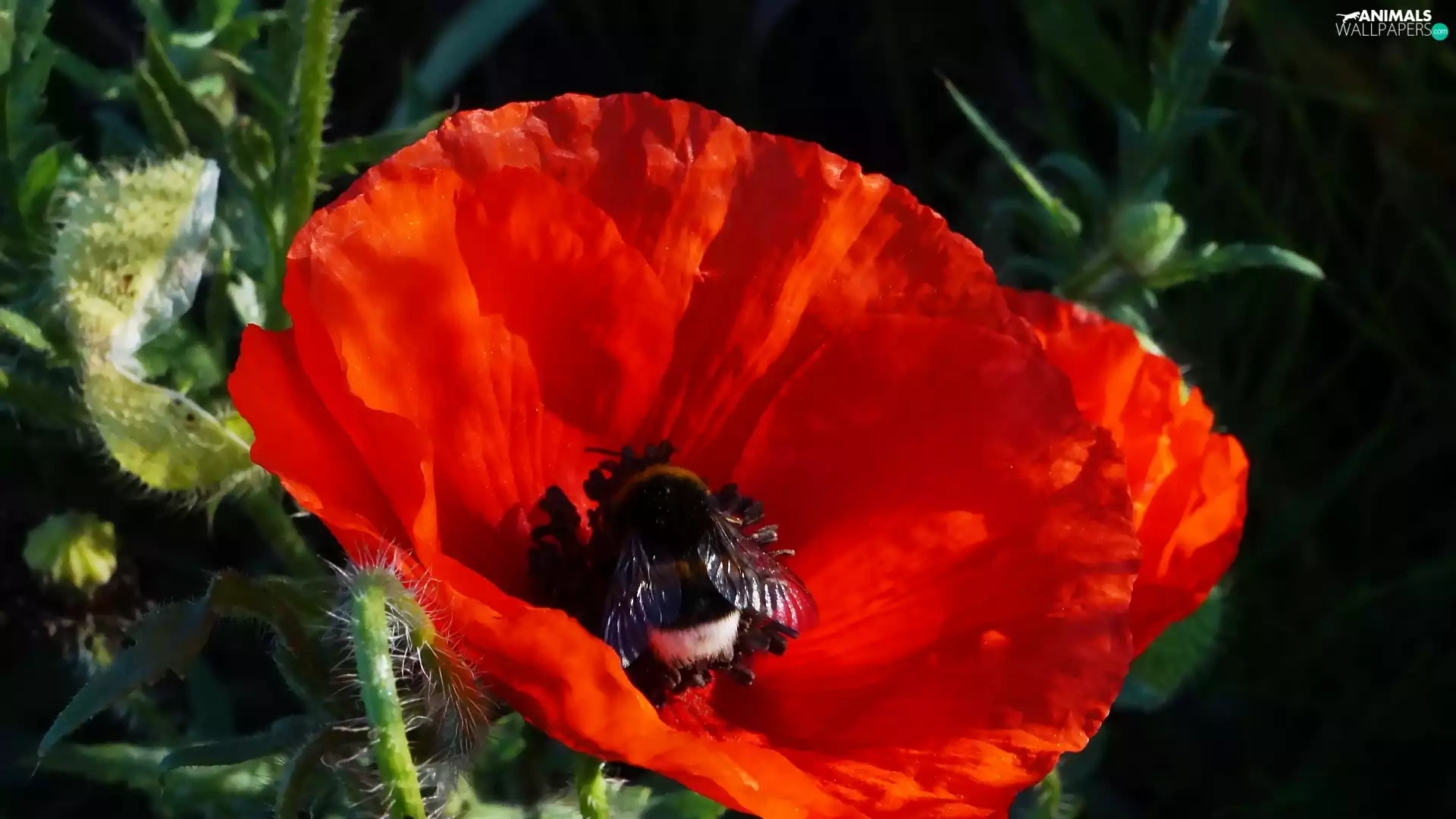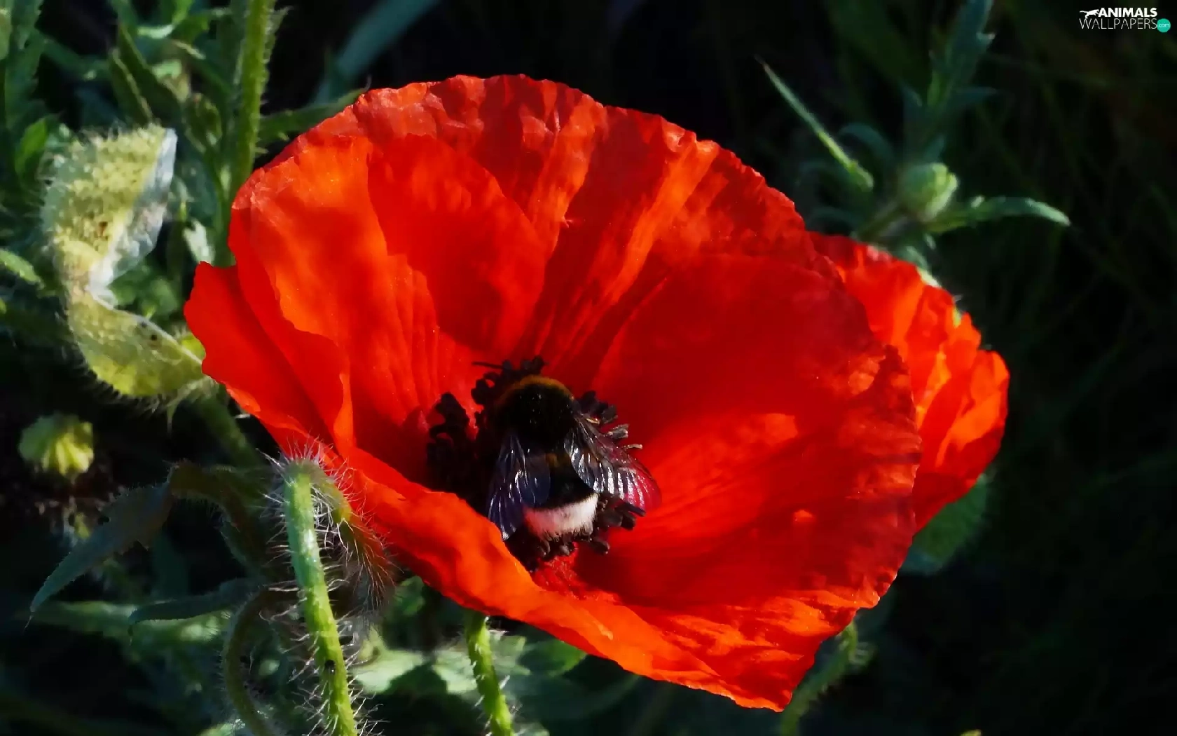 Insect, dumbledor, Red, red weed, Colourfull Flowers