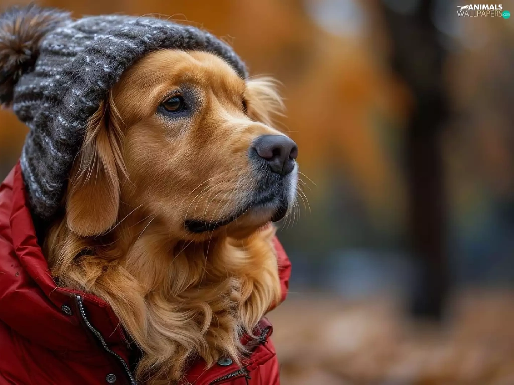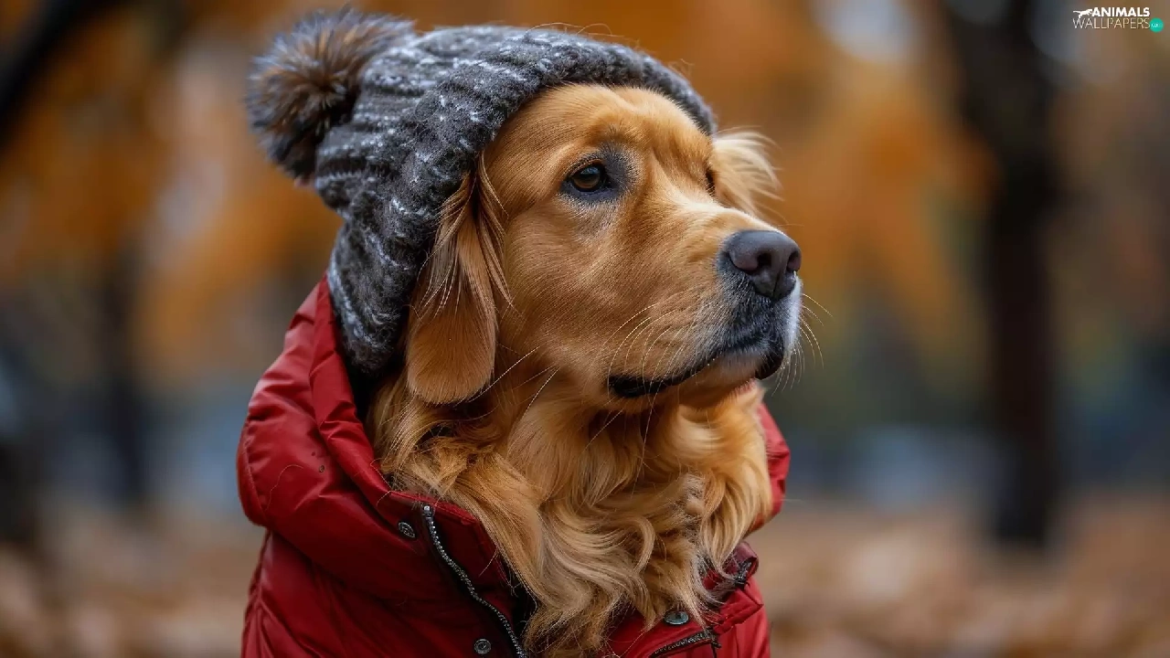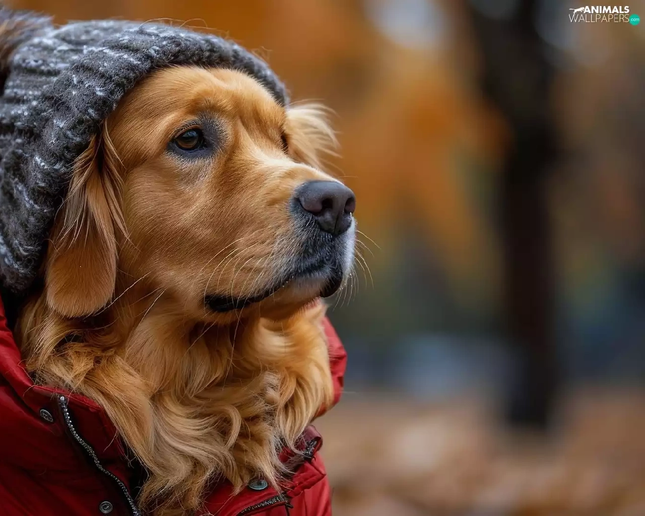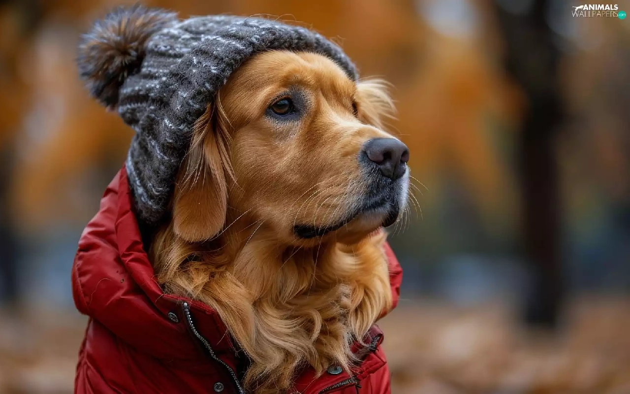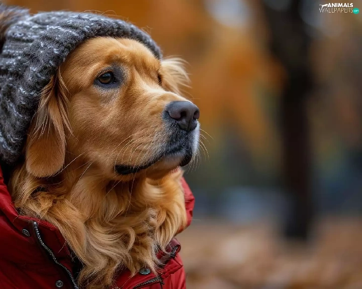 Hat, Golden Retriever, red hot, Jacked, dog