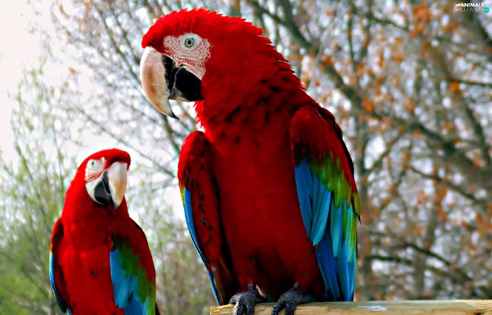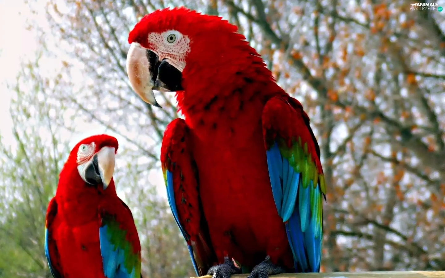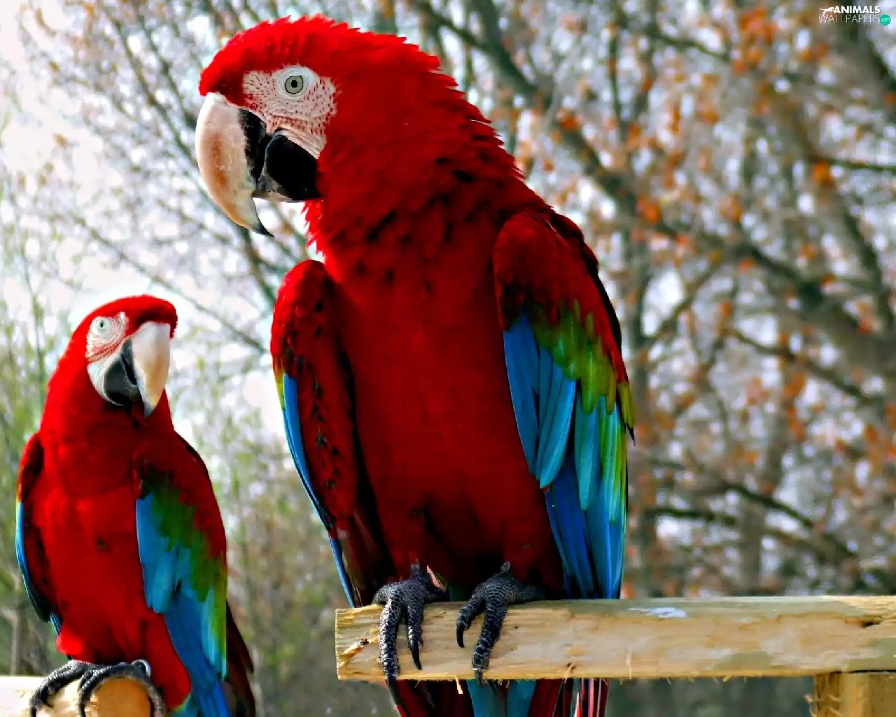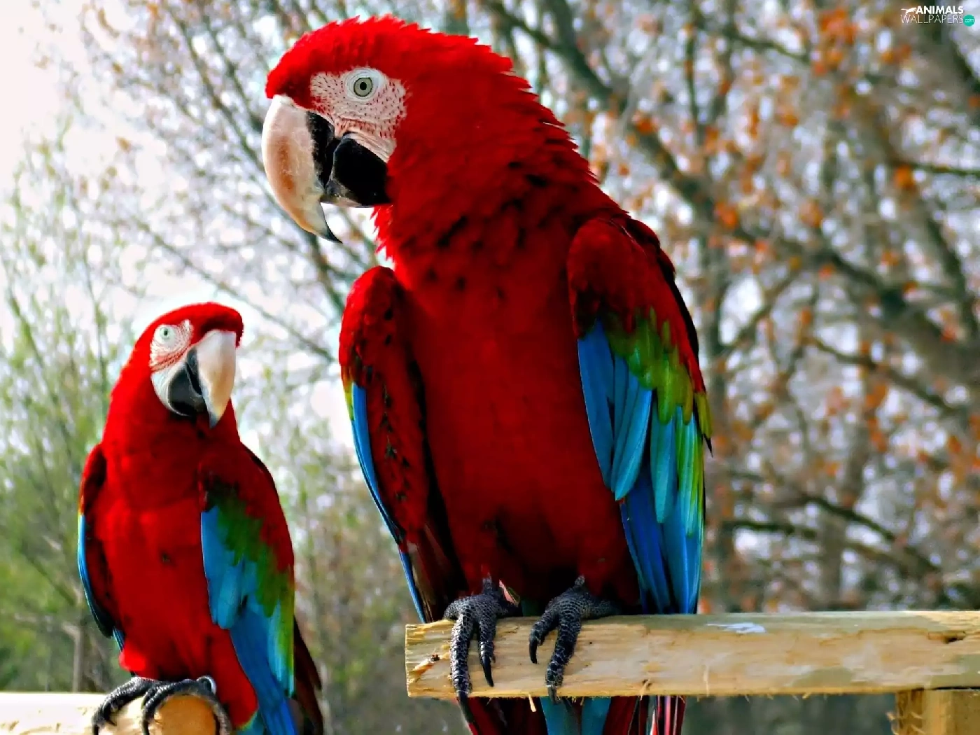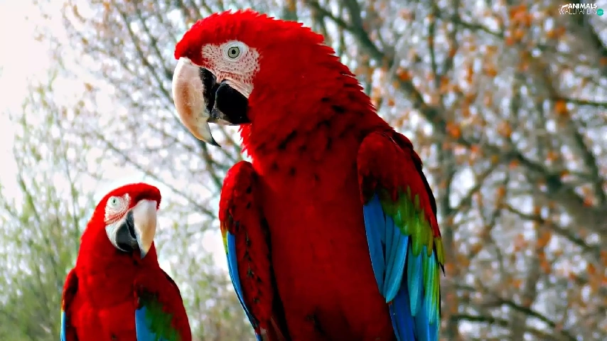 Two, Blue, Parrots, red