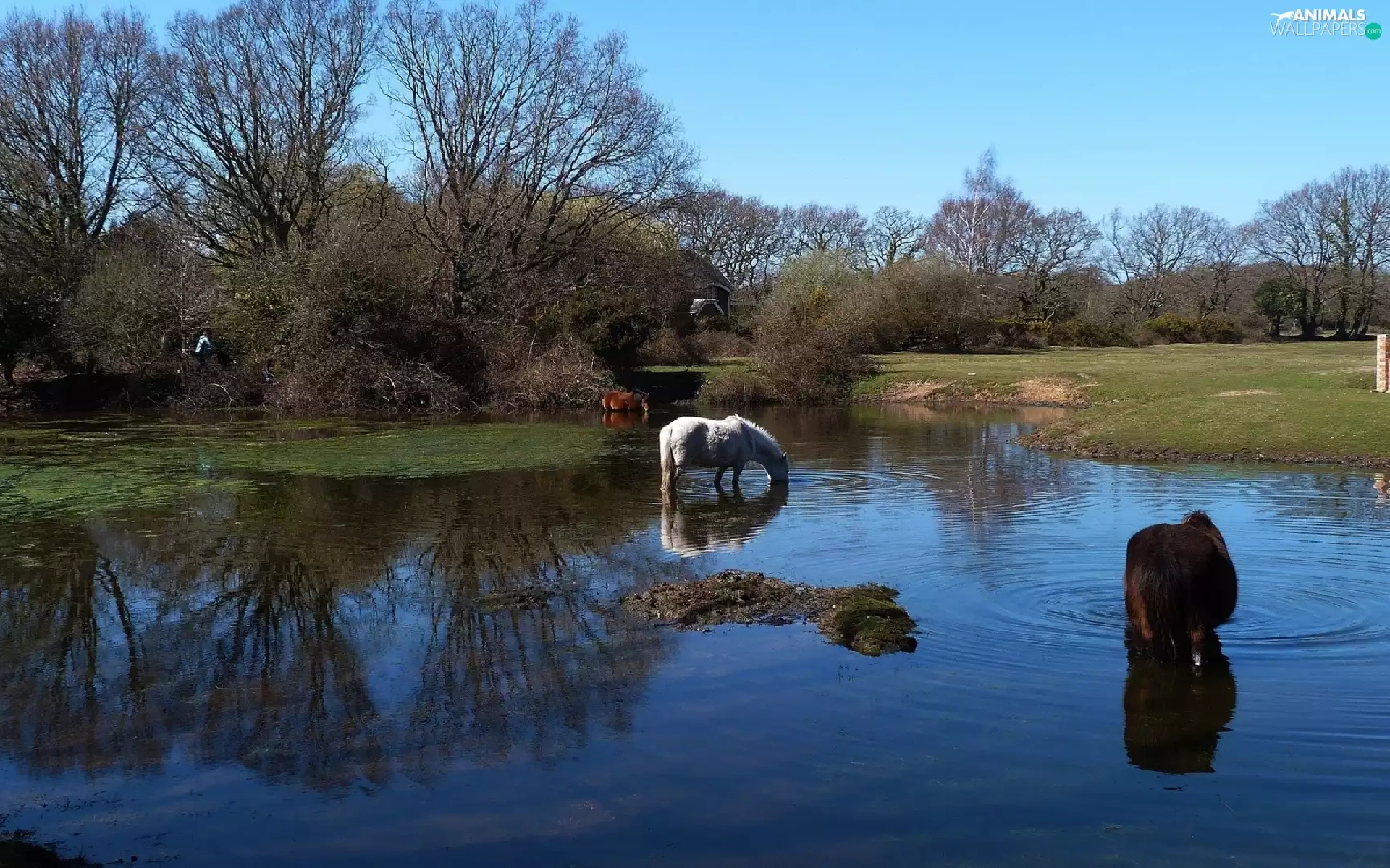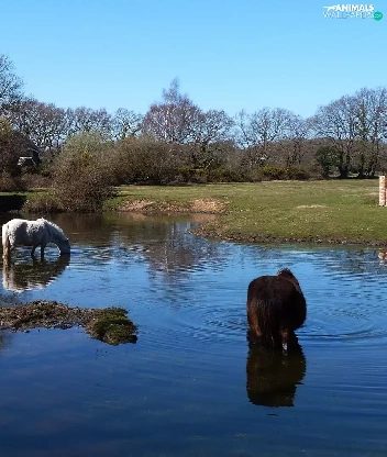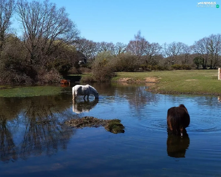 Meadow, brook, viewes, reflection, trees, bloodstock