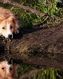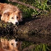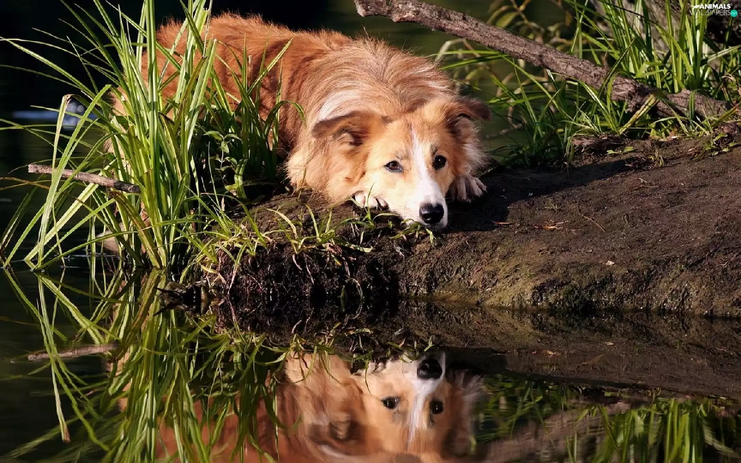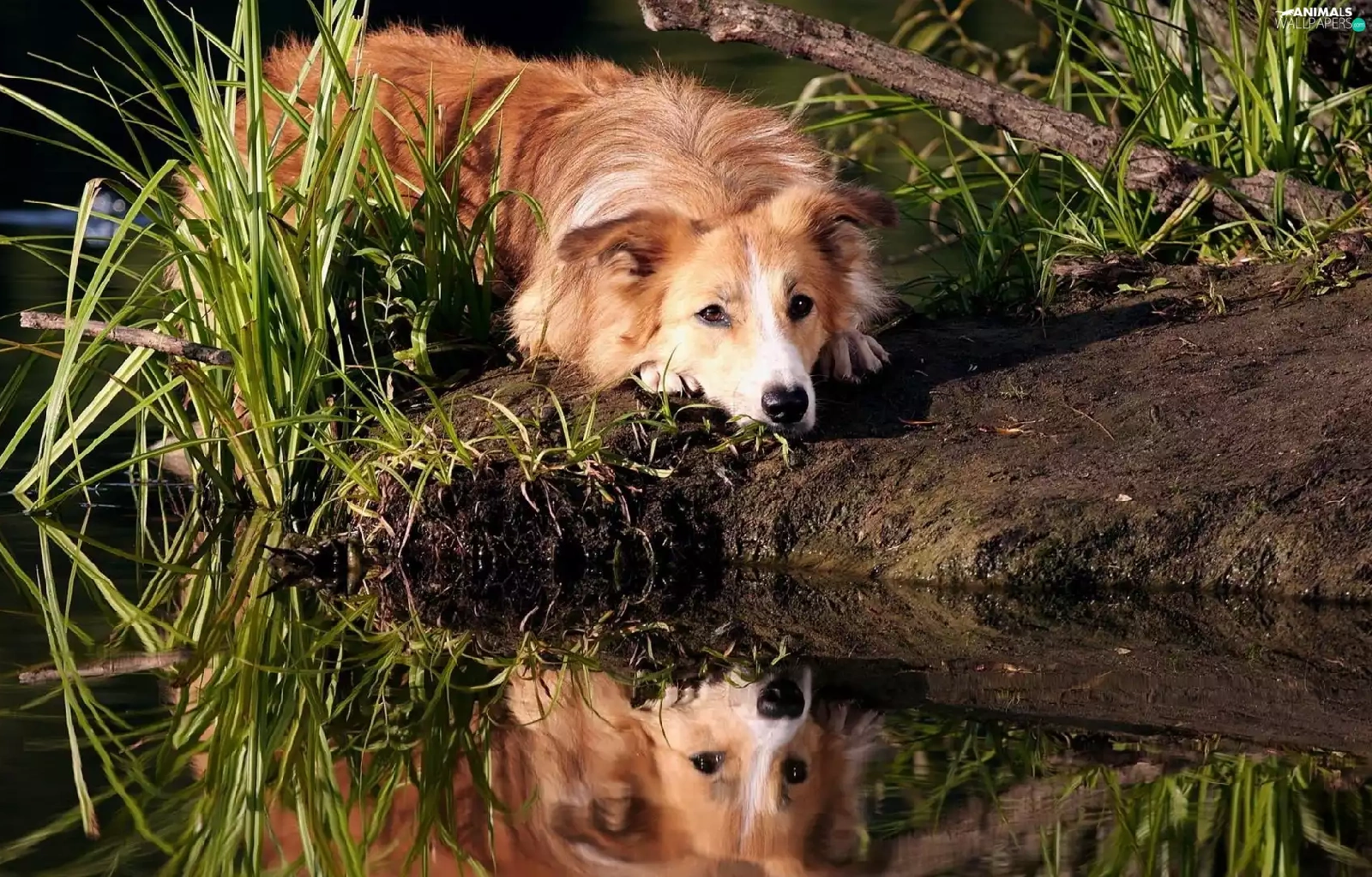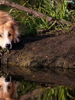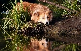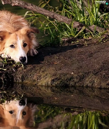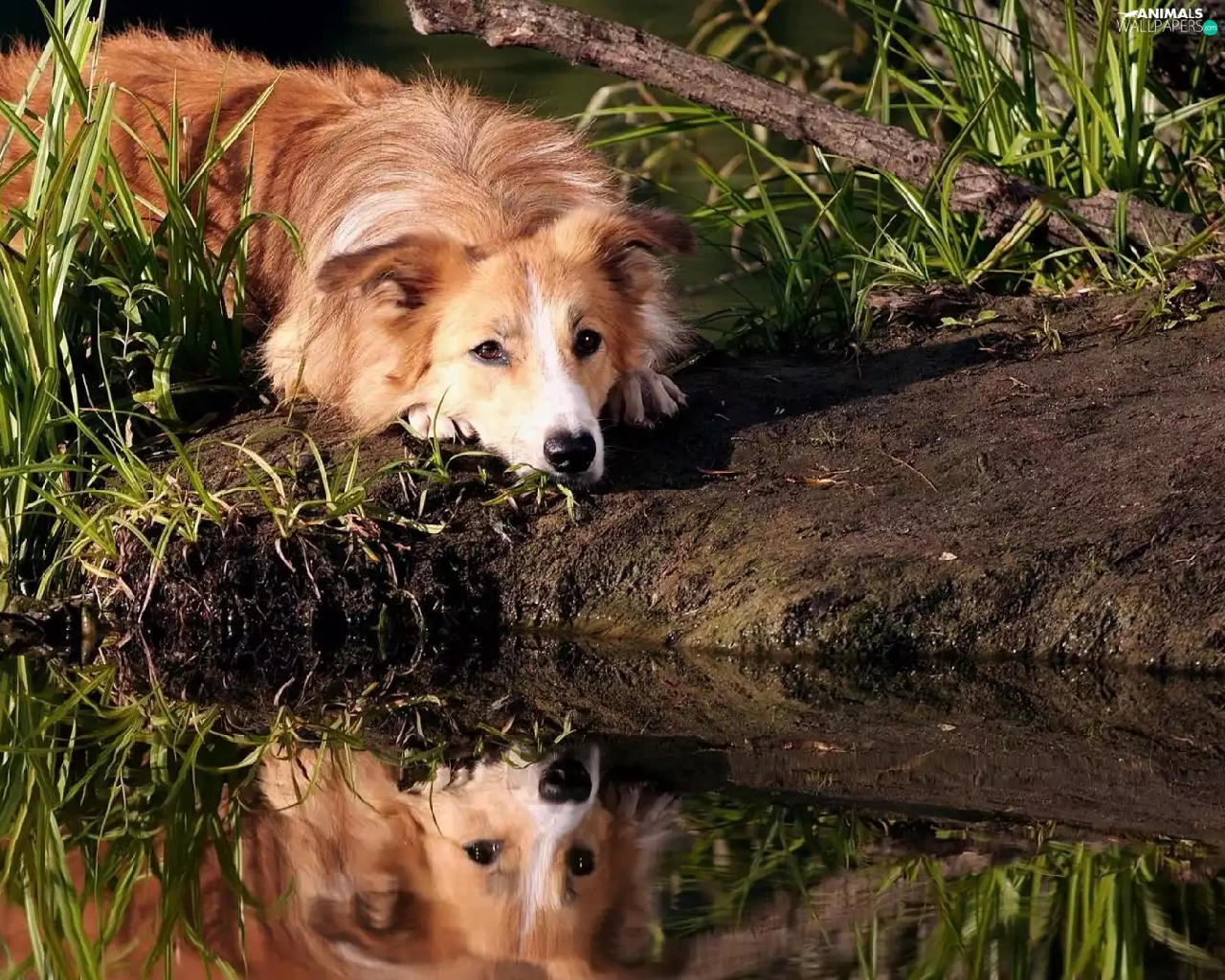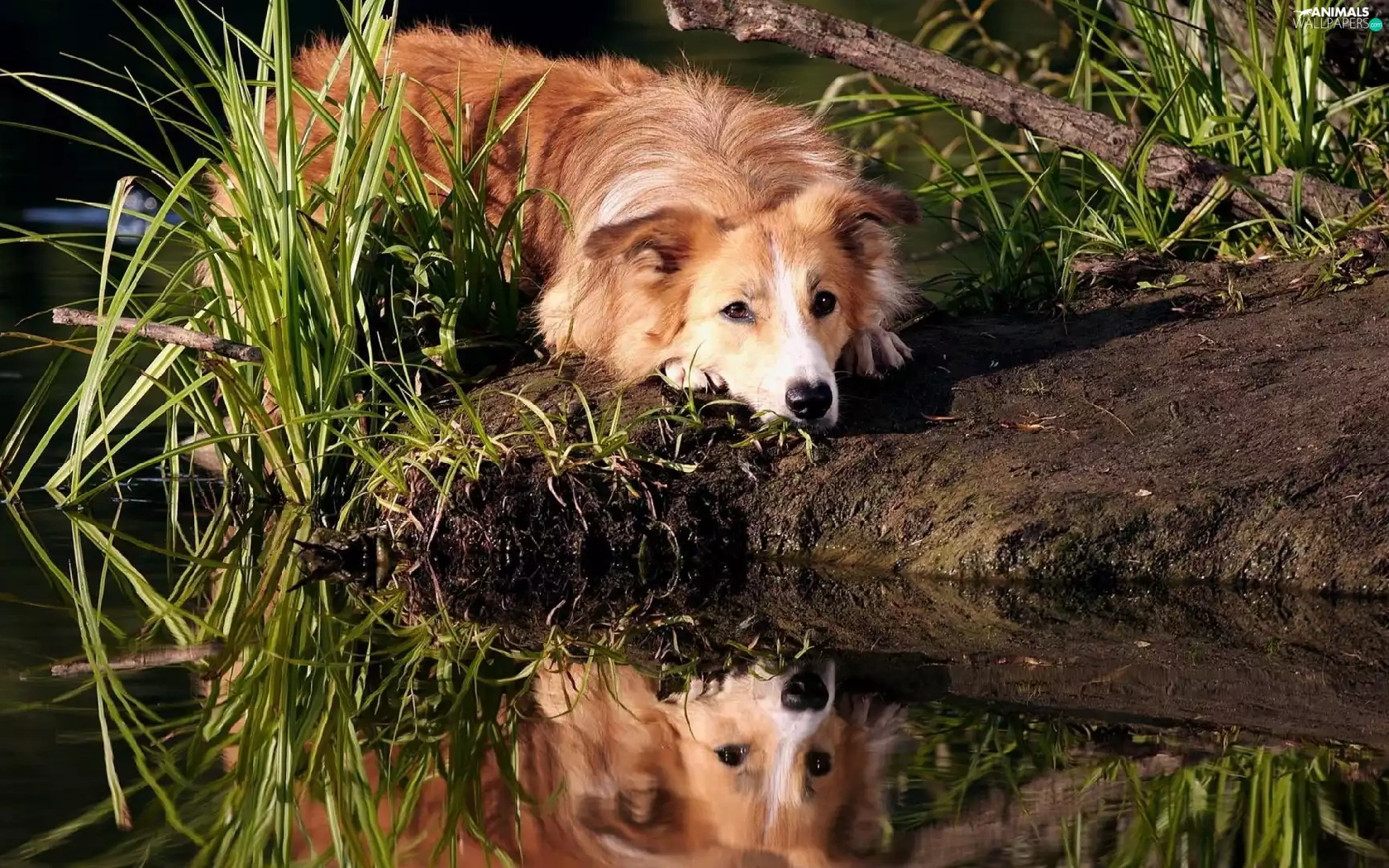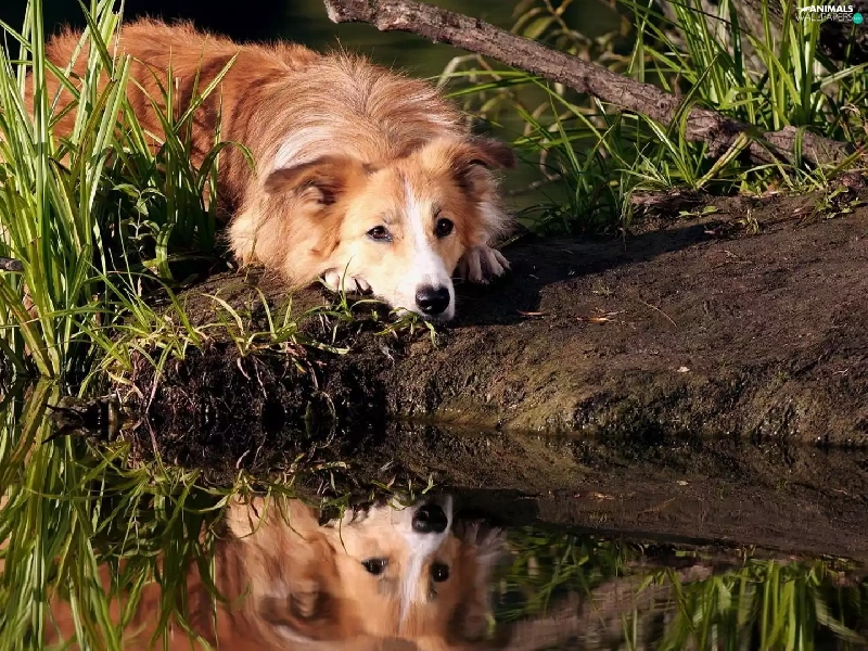 dog, Border, water, reflection, grass, Collie