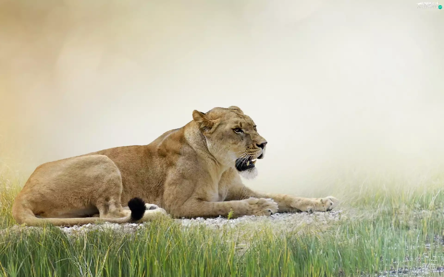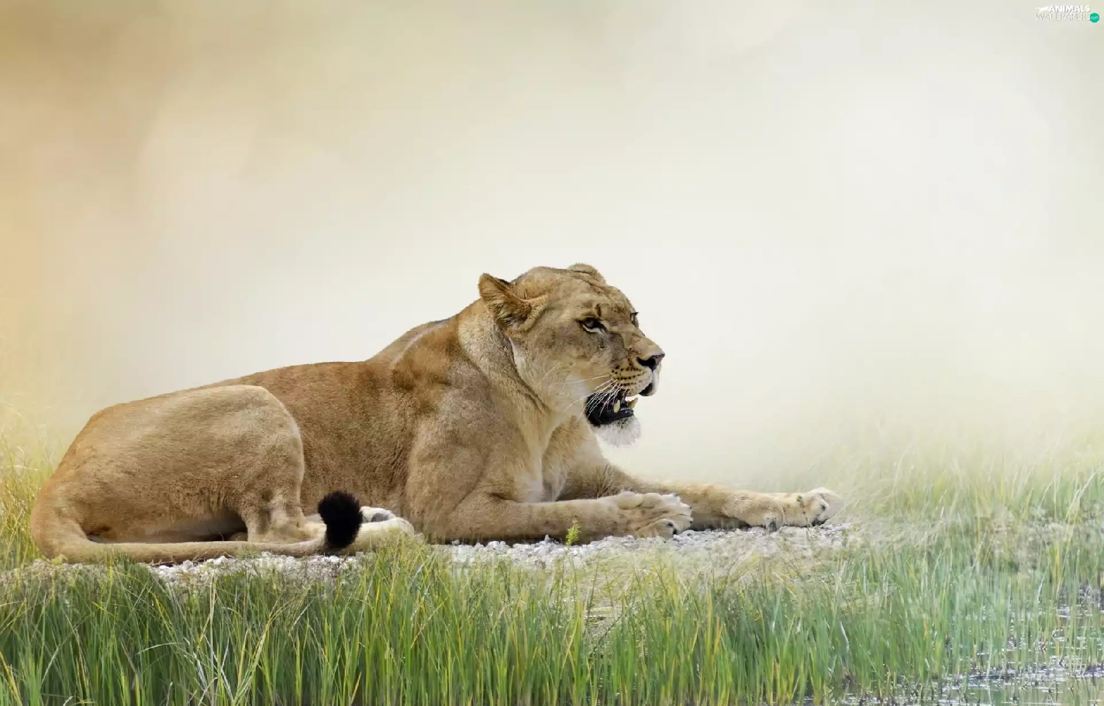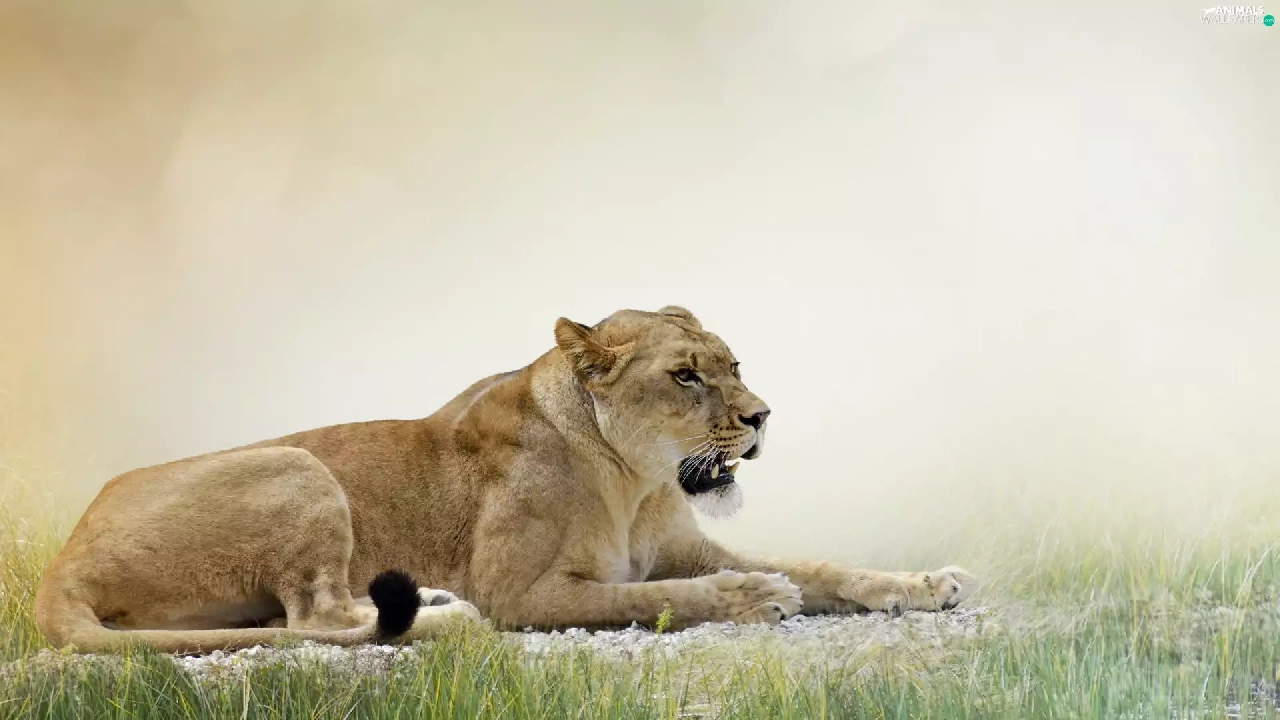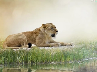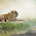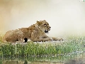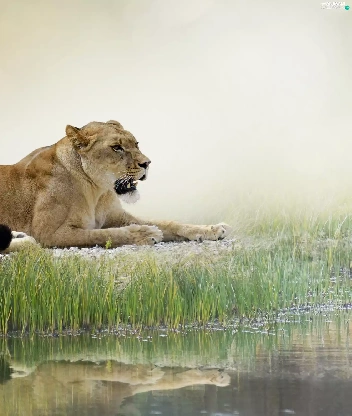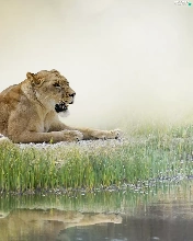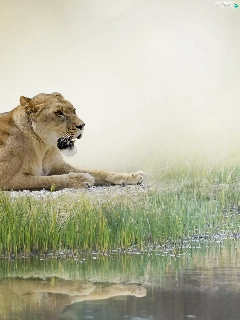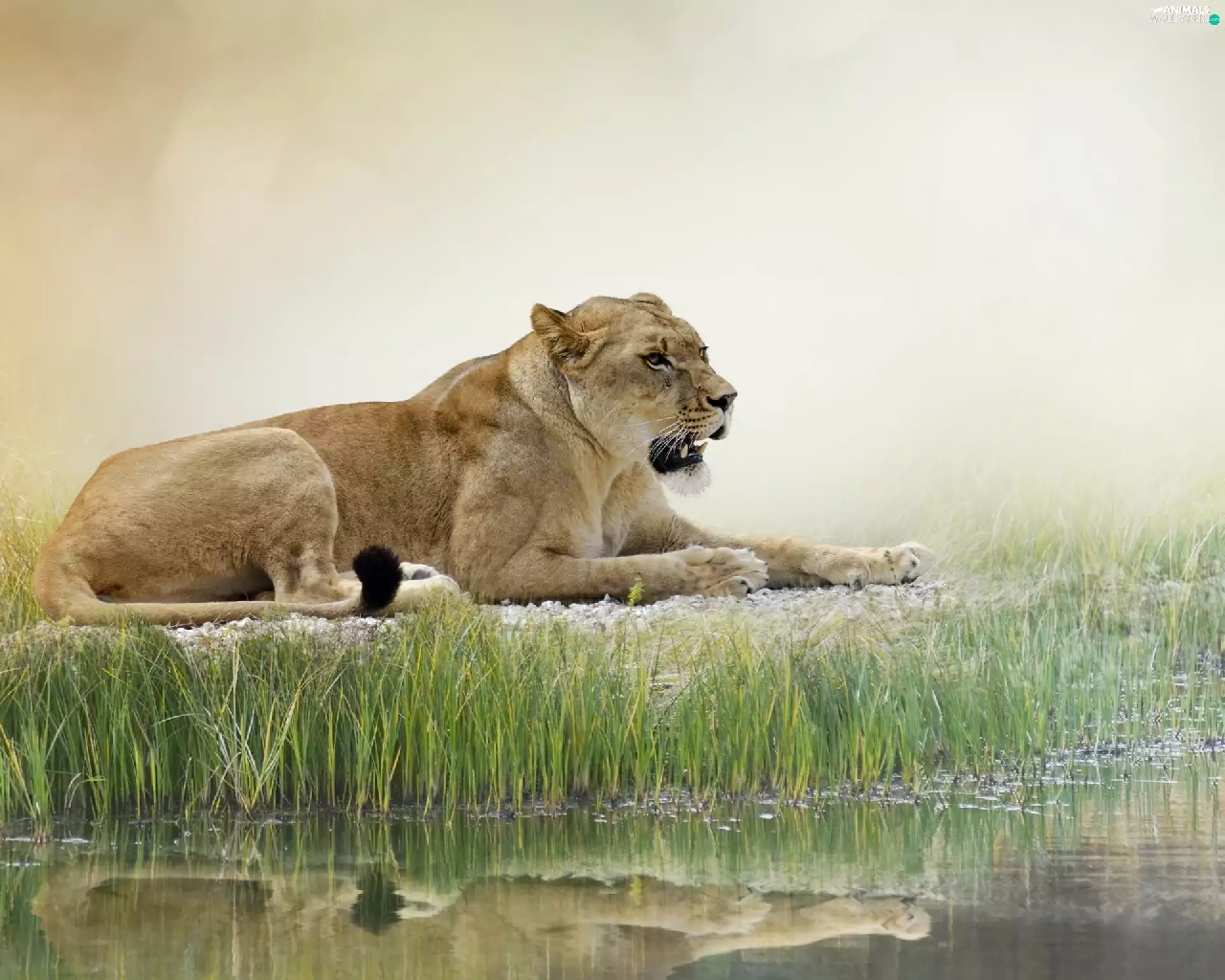 reflection, Lioness, grass