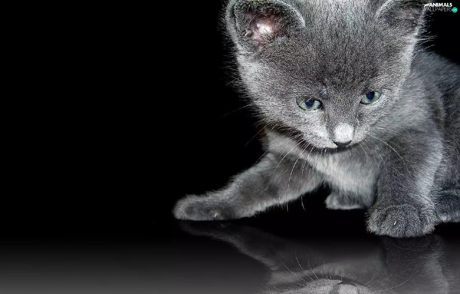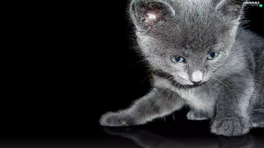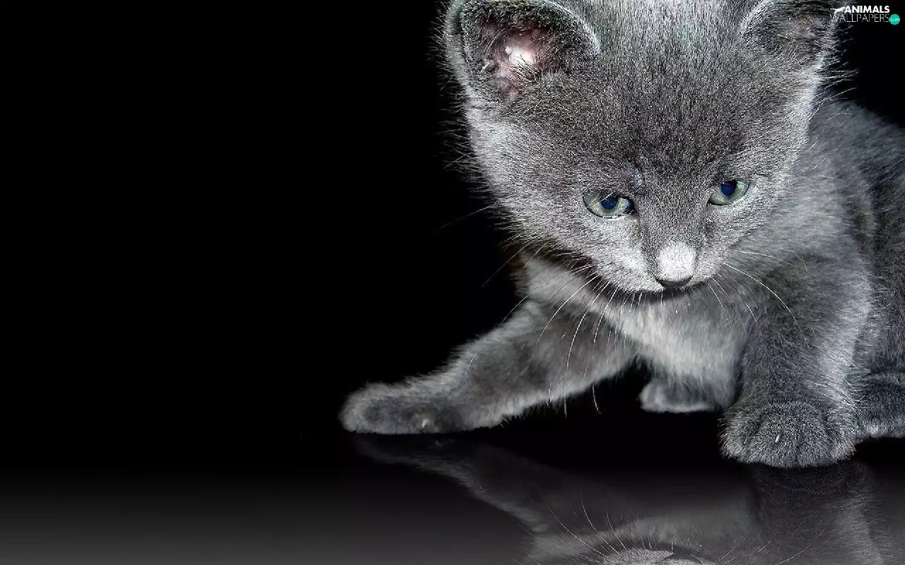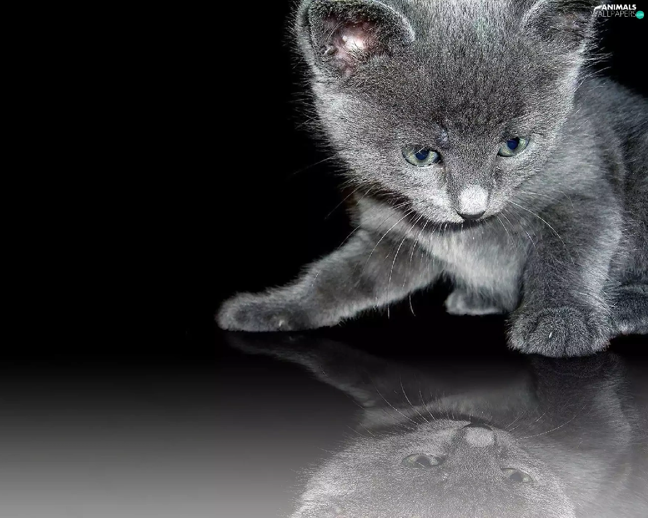 reflection, Black, kitten