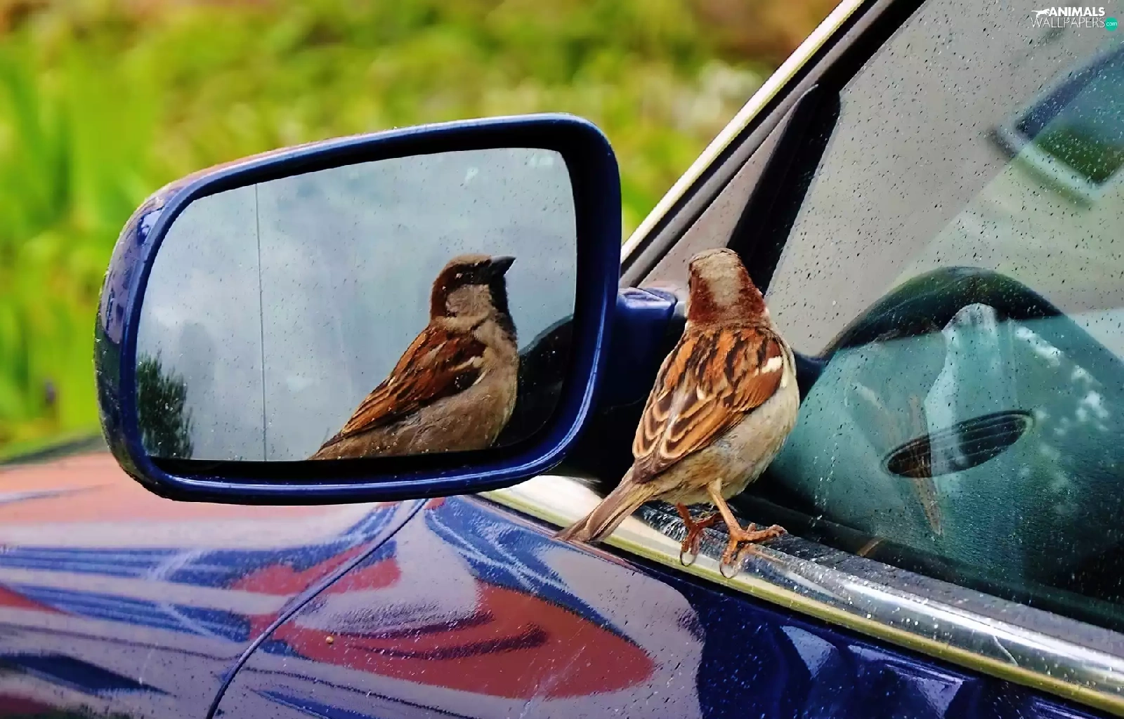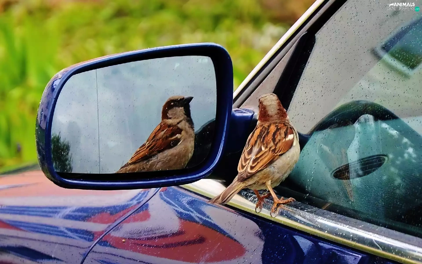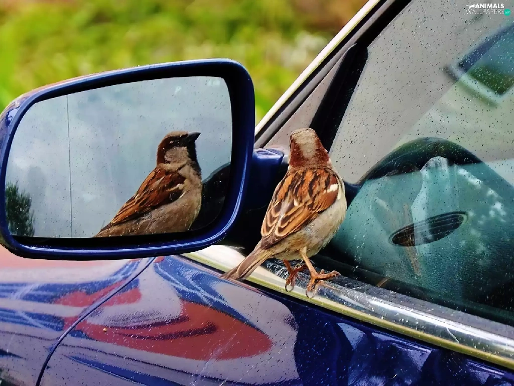 reflection, sparrow, mirror