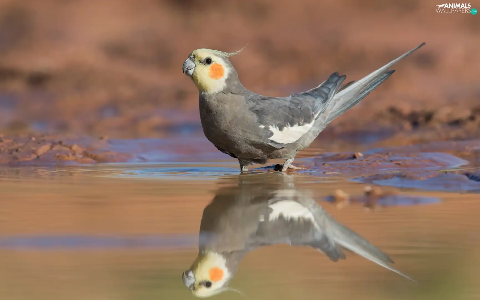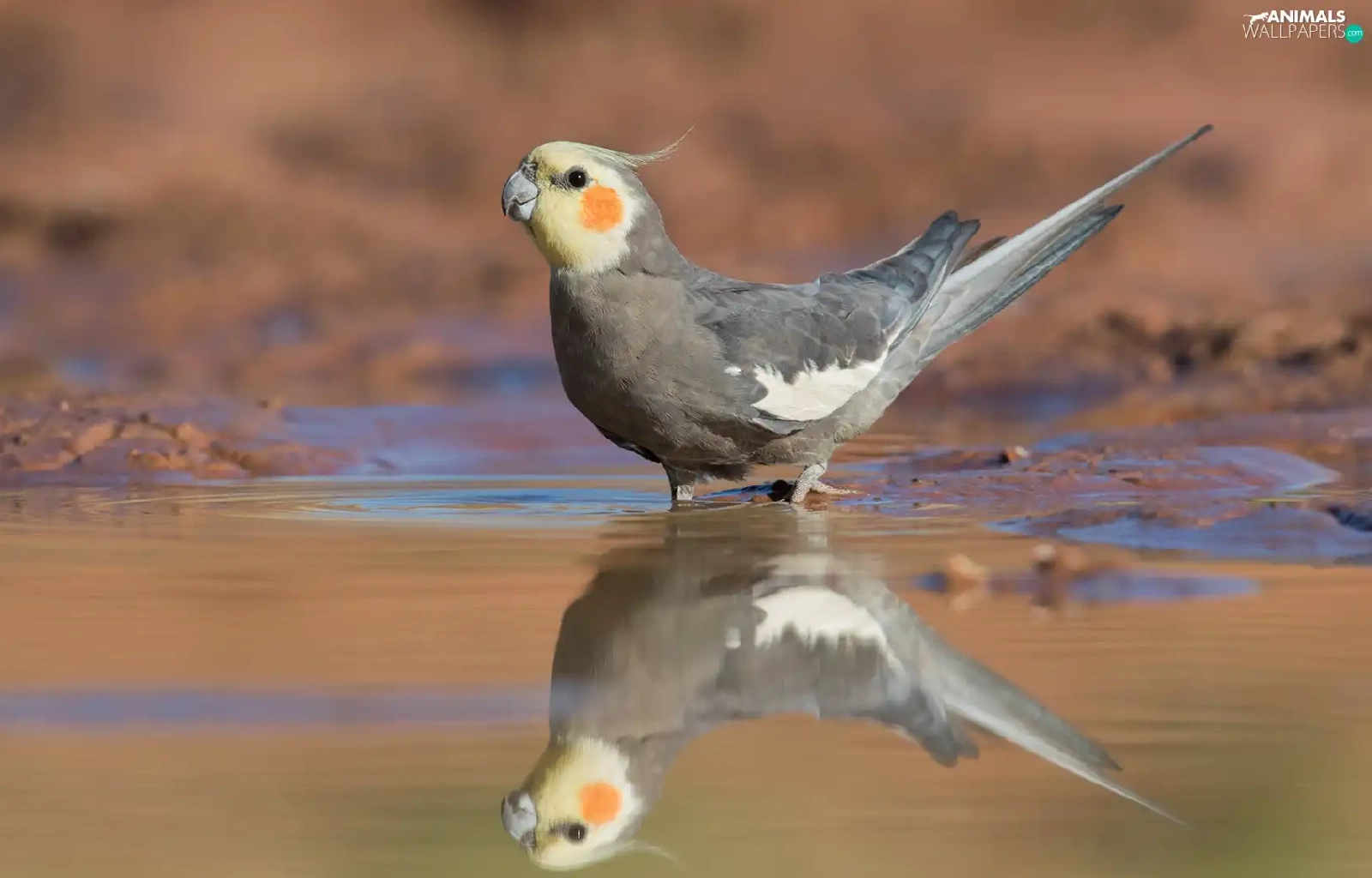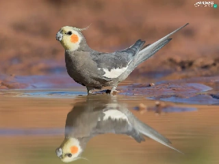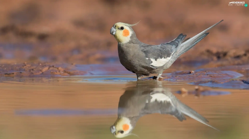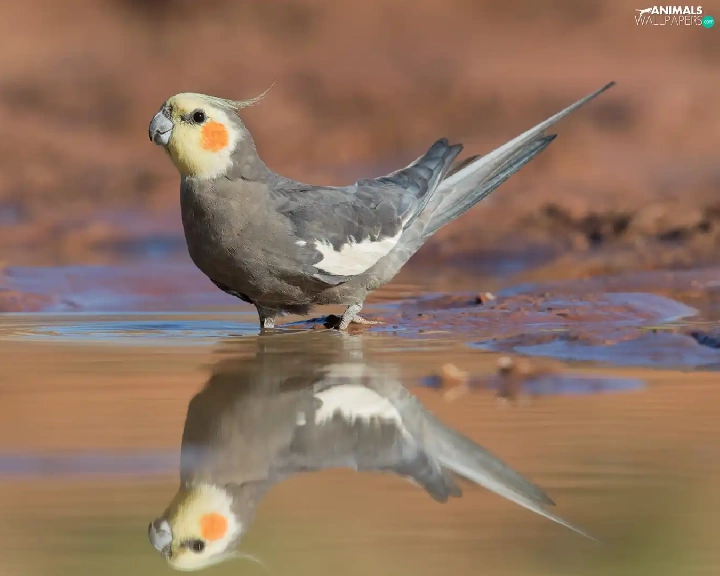 water, reflection, parrot, nymph, Bird