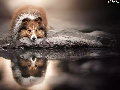 dog, reflection, shetland Sheepdog, water