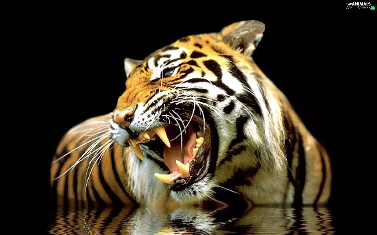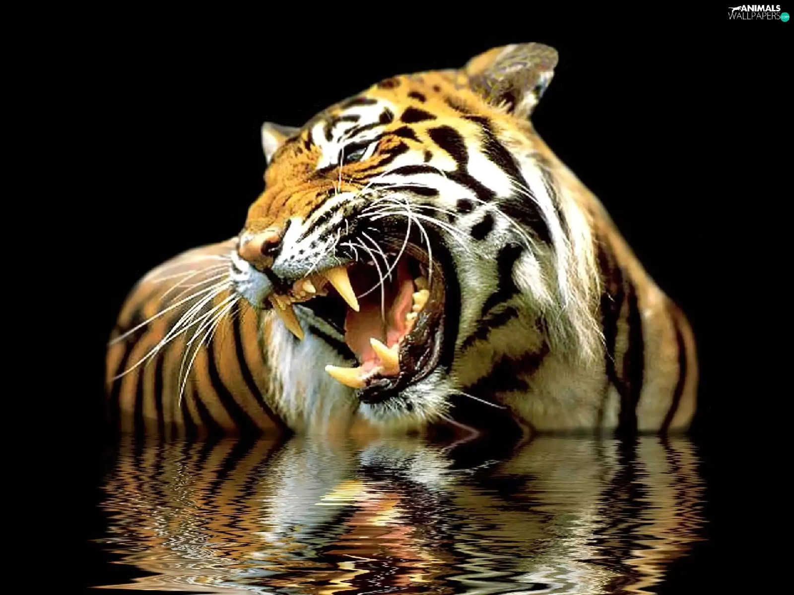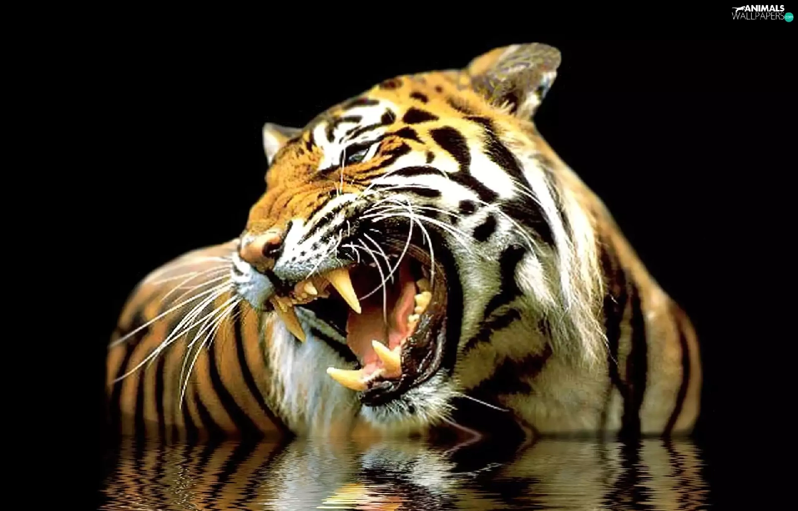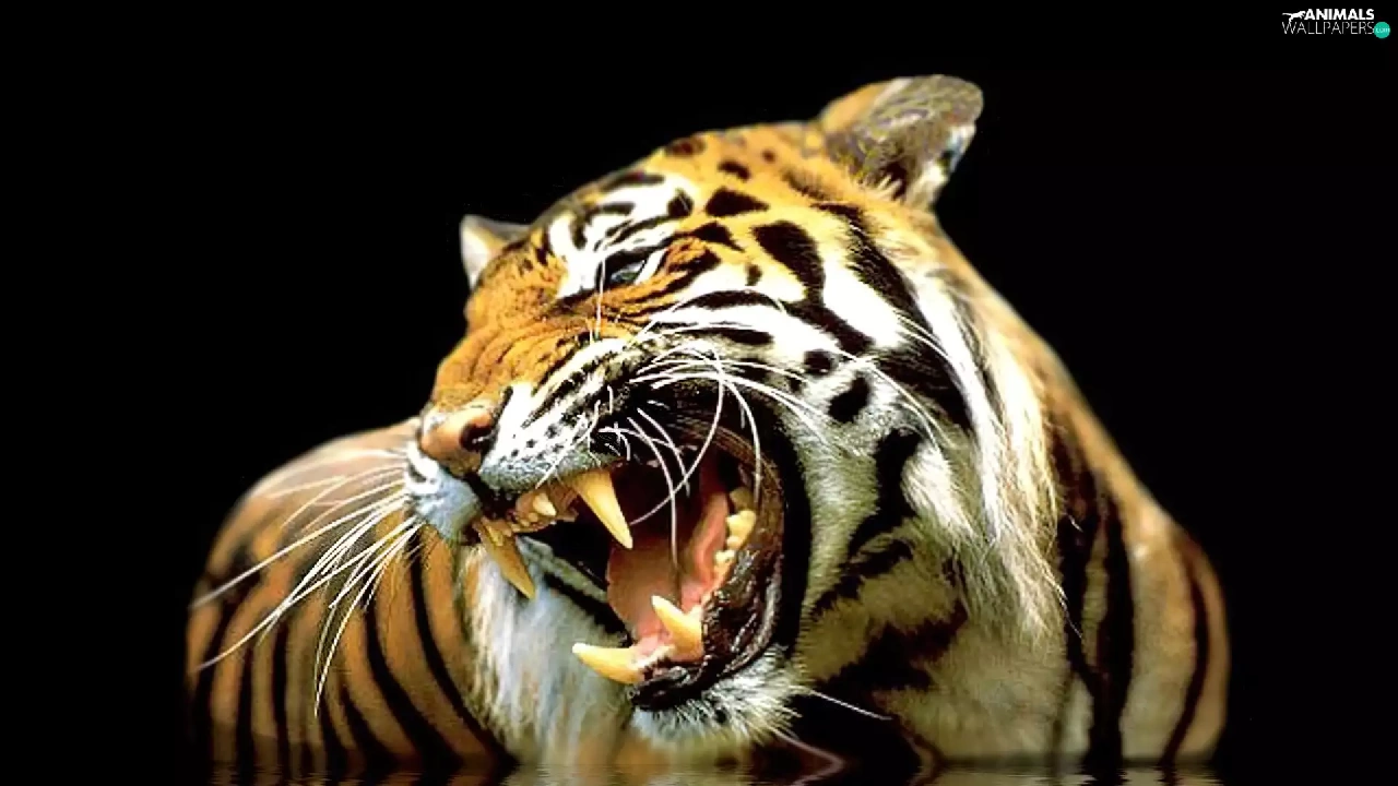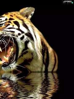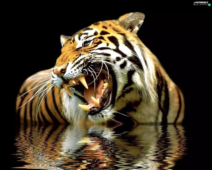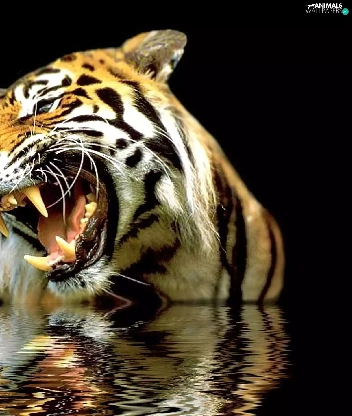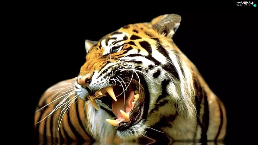 reflection, roaring, tiger