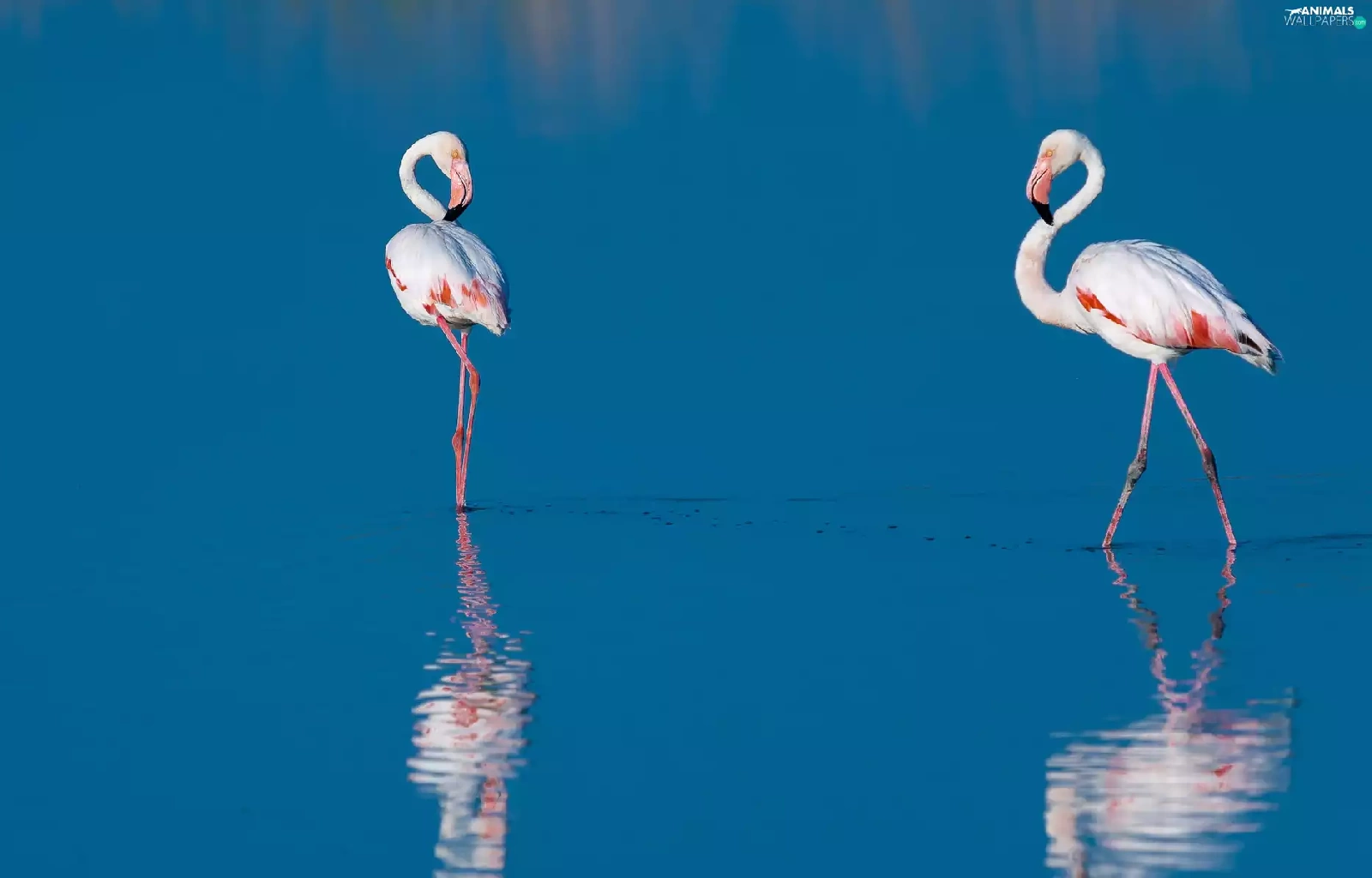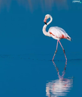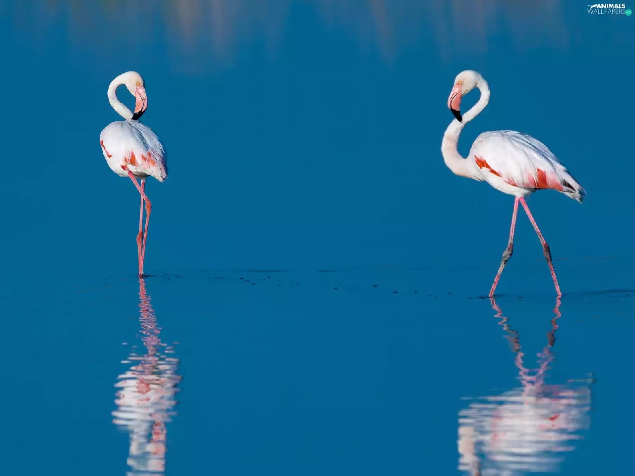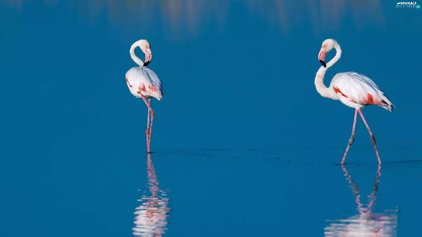 reflection, Flamingos, water