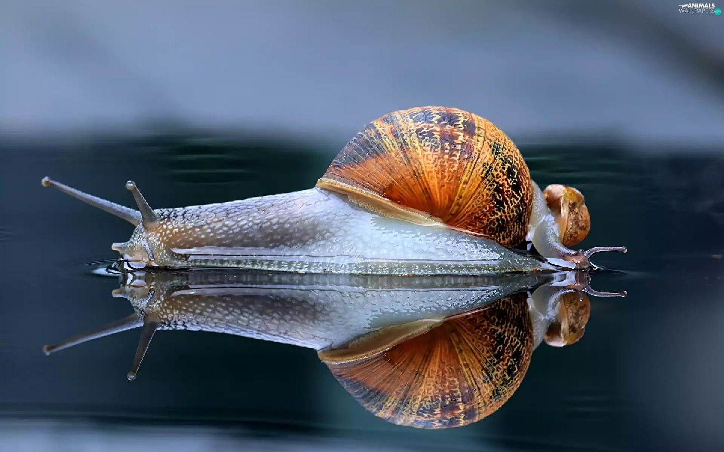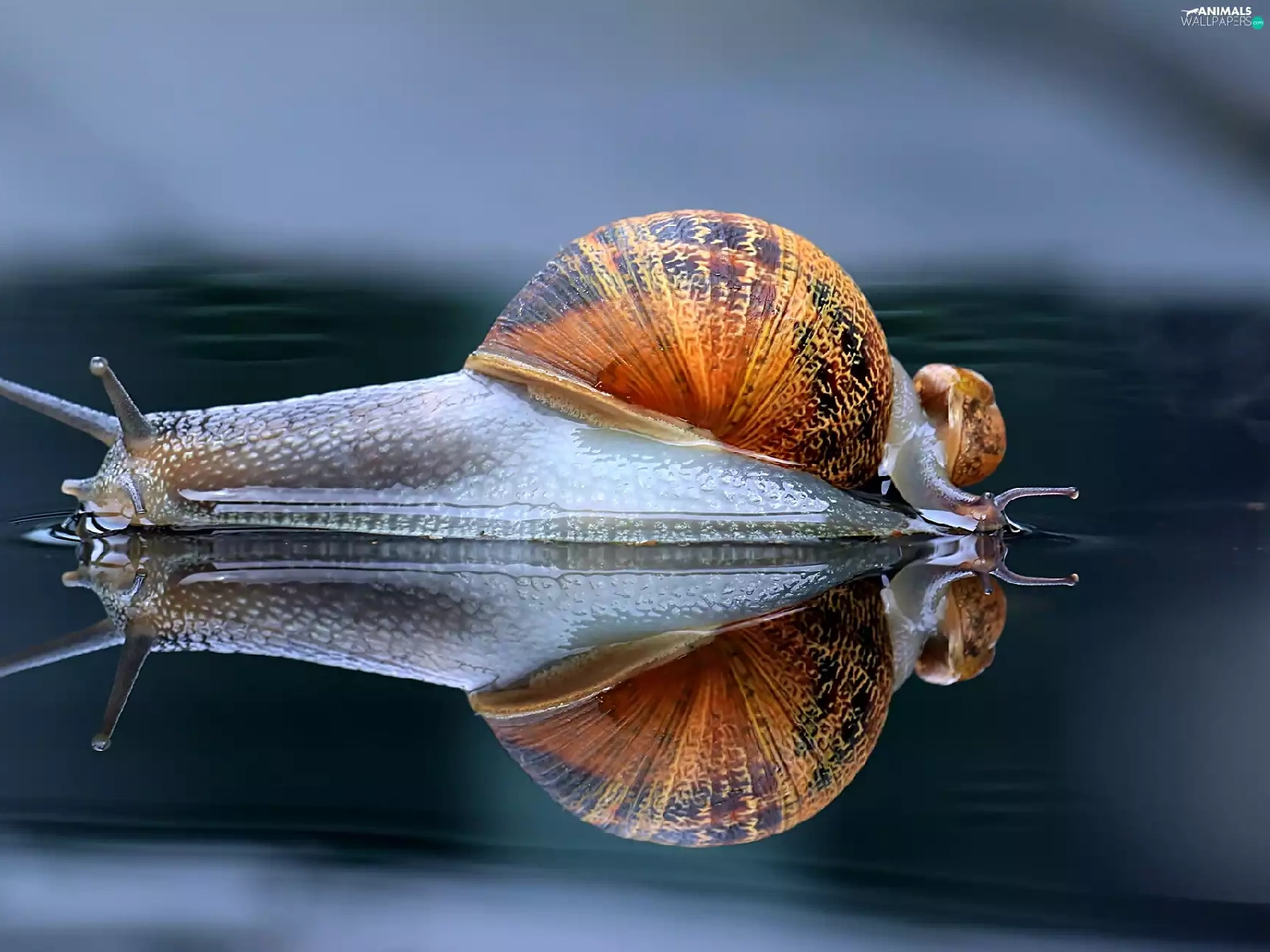 reflection, snail, water