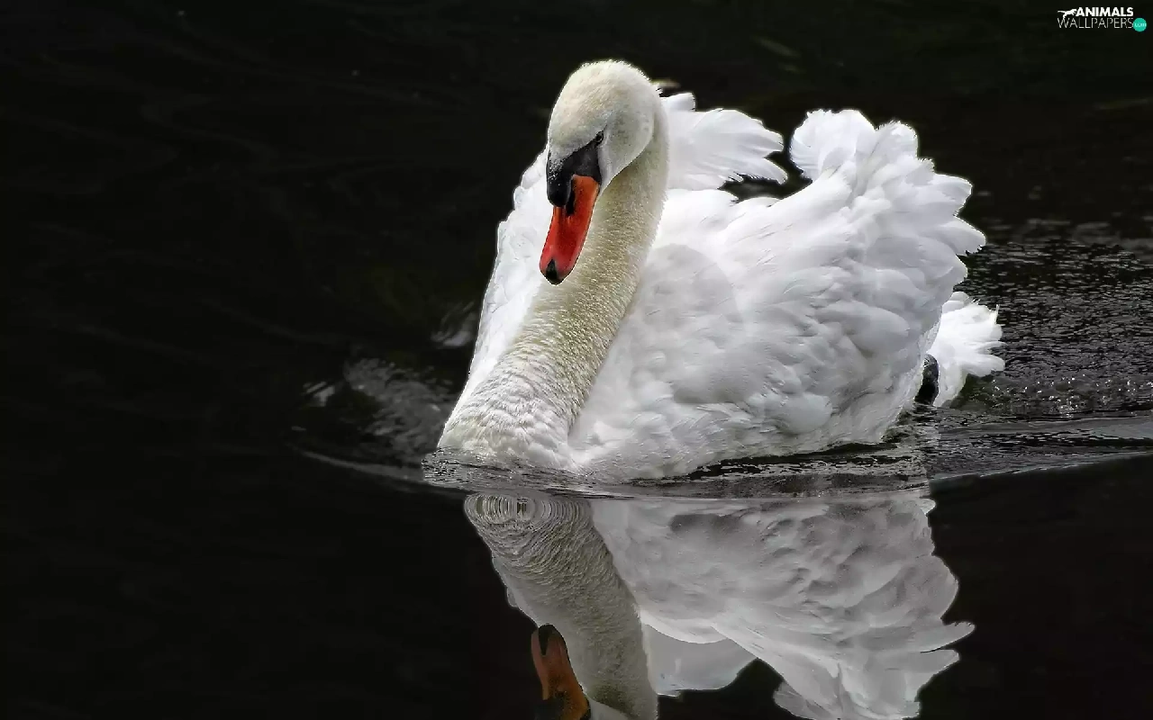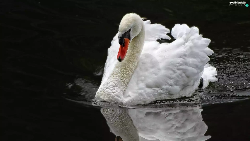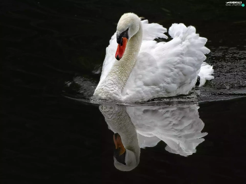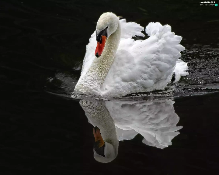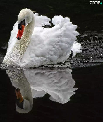 reflection, swan, water