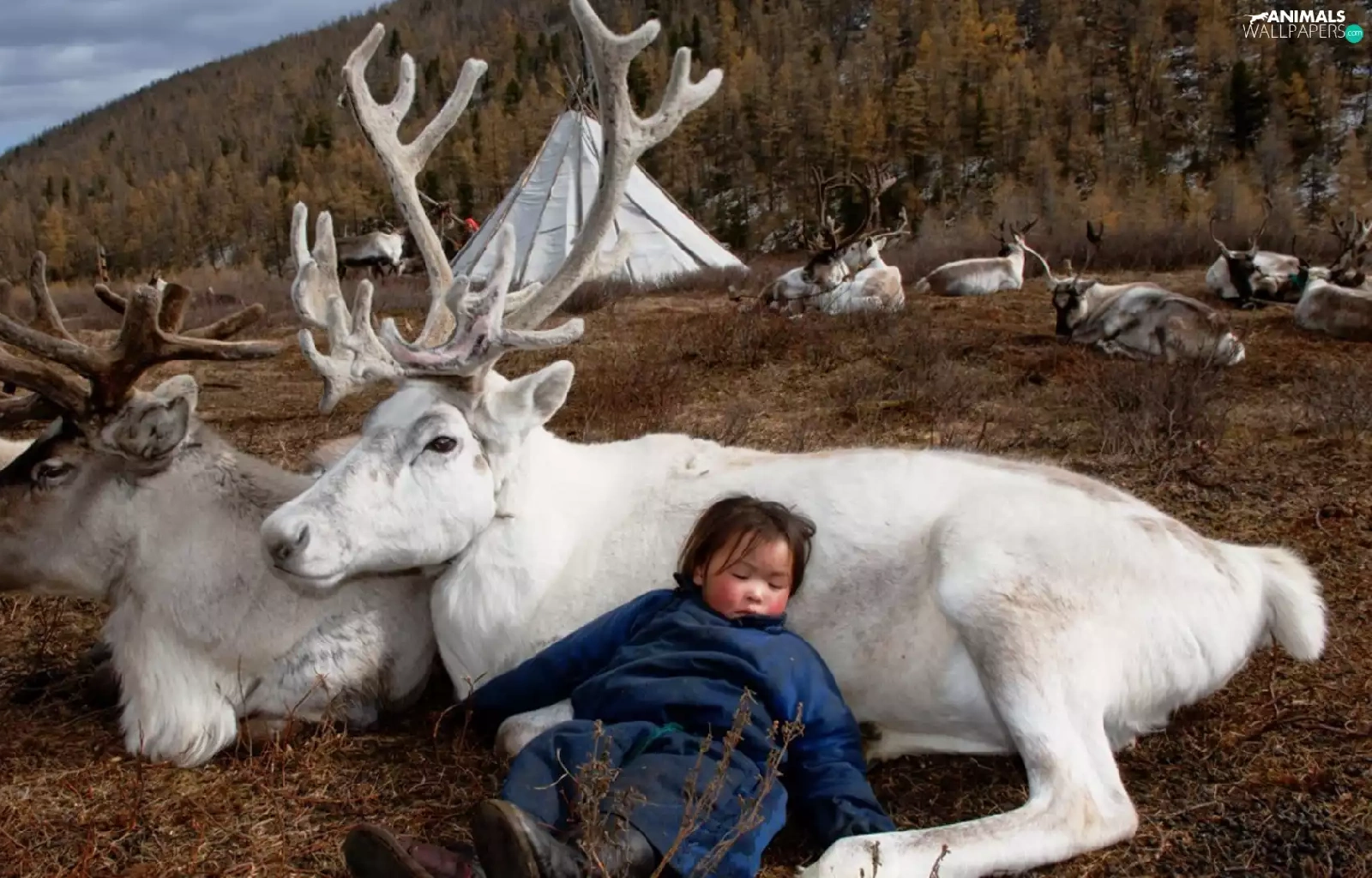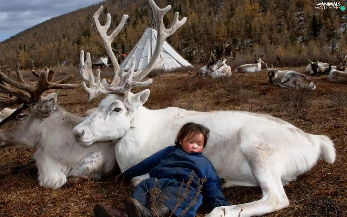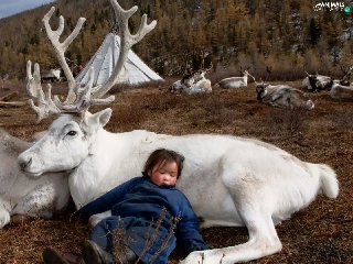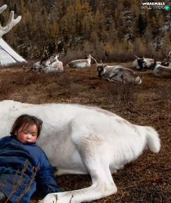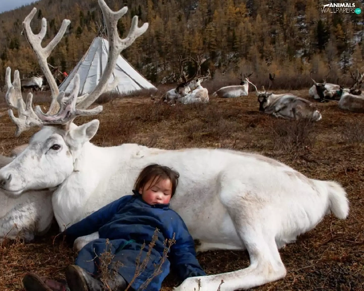 White, Sleeping, Kid, reindeer