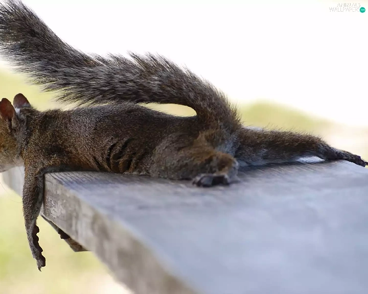 resting, squirrel, board