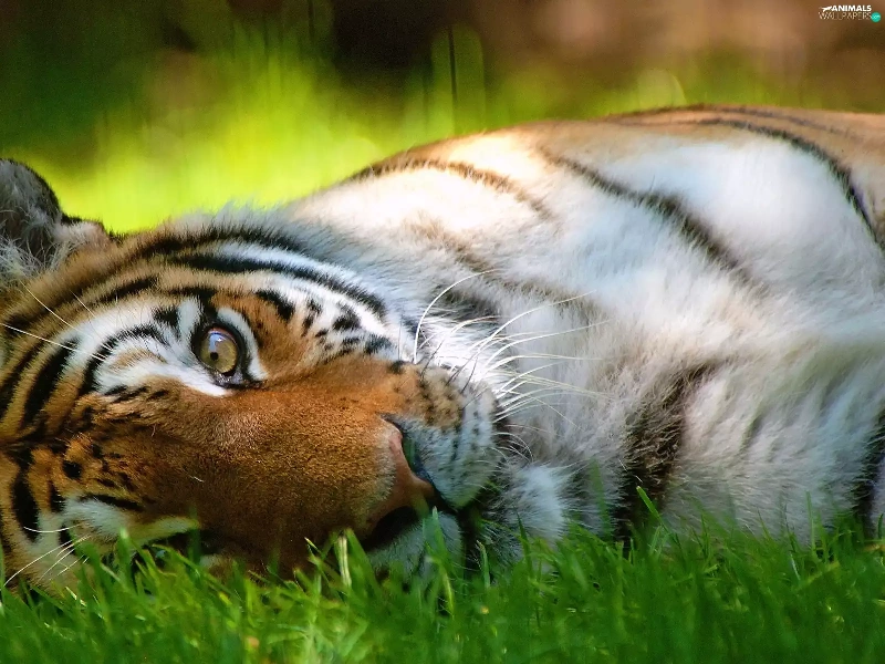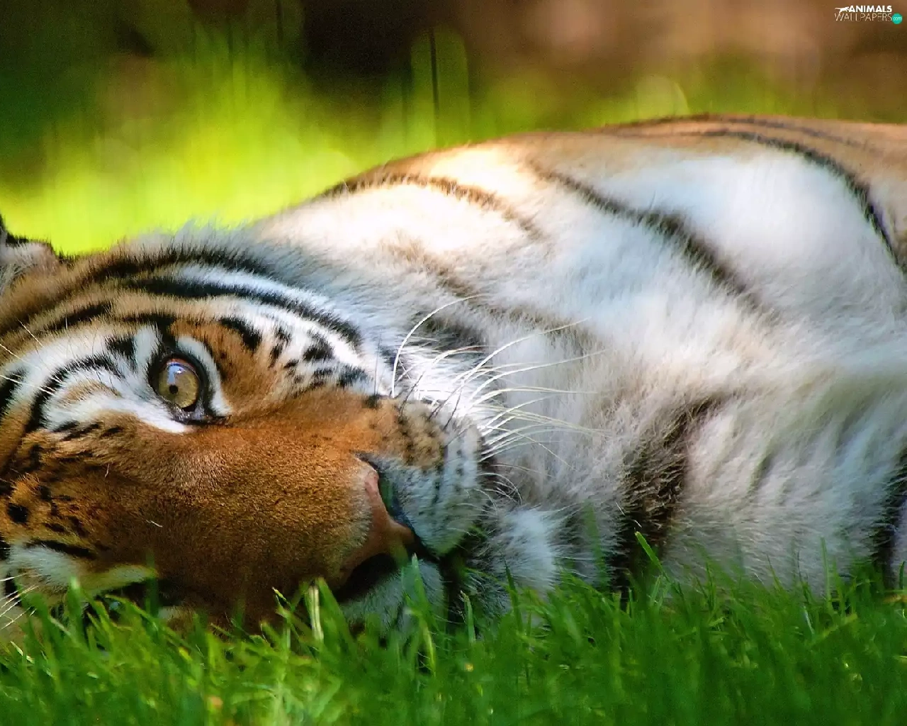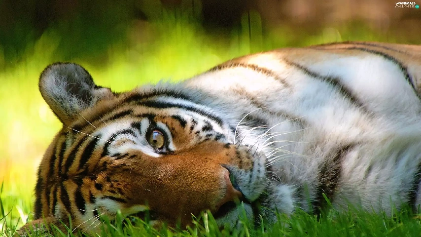 resting, tiger, grass