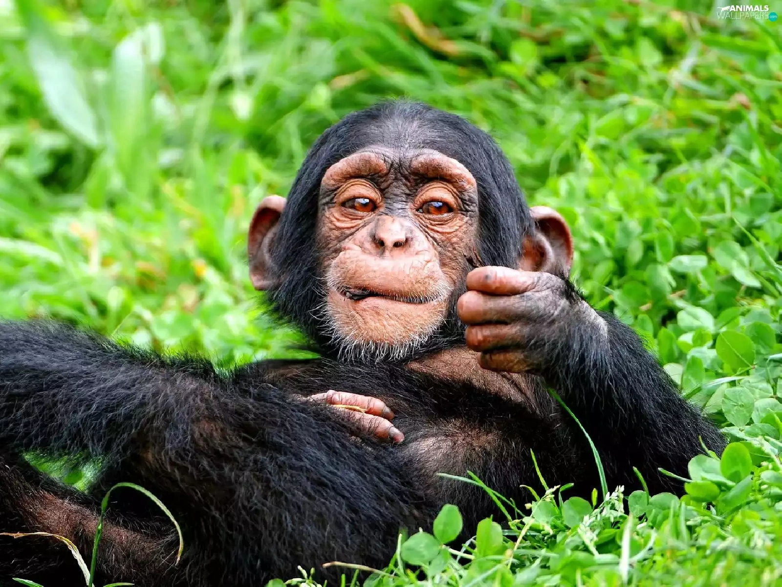 small, chimpanzee, scrub, Resting
